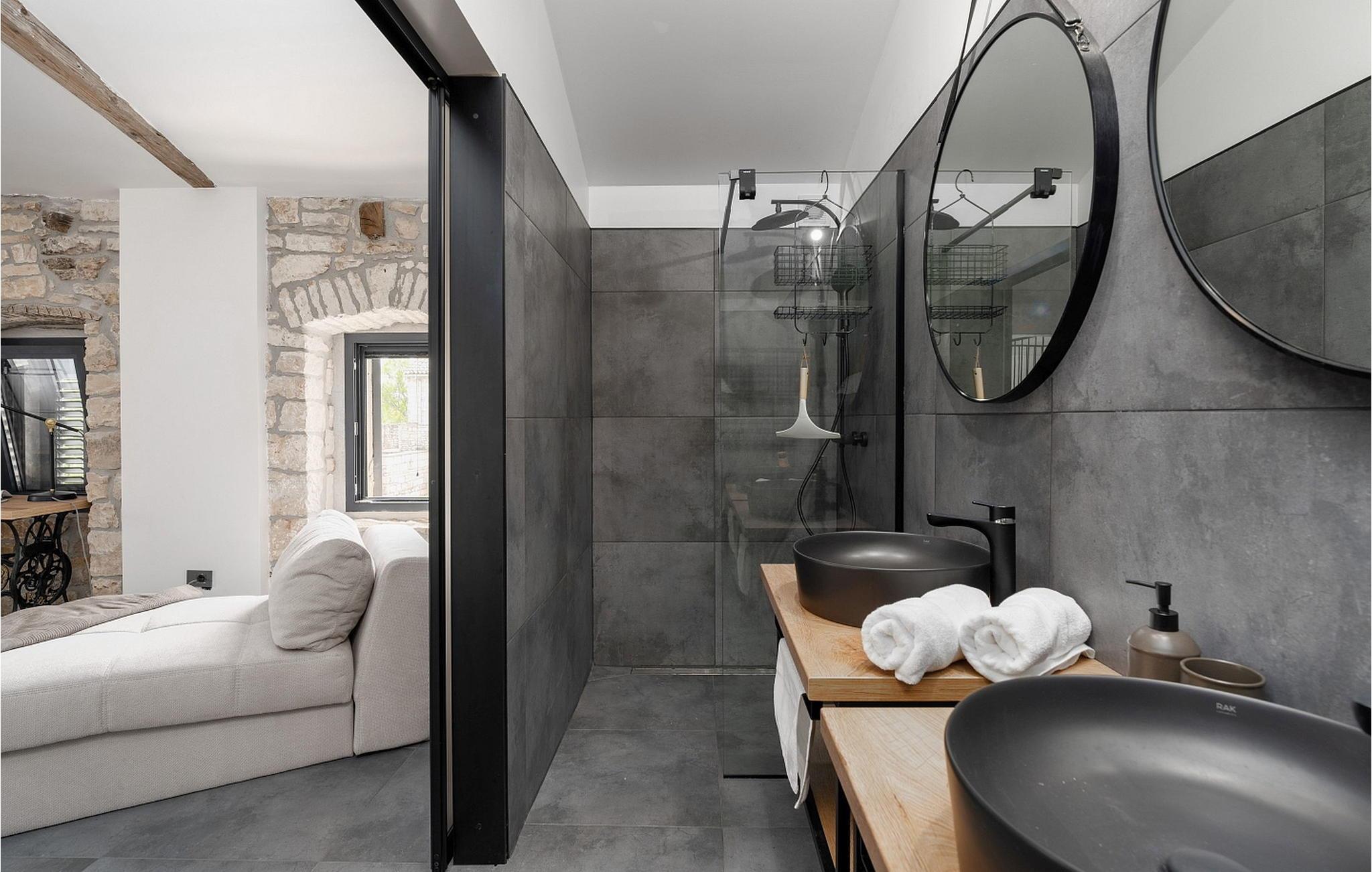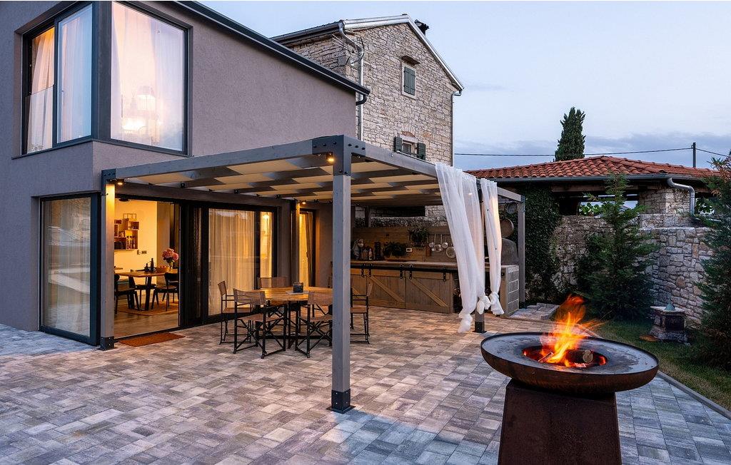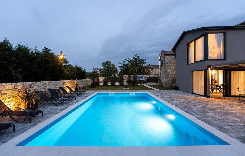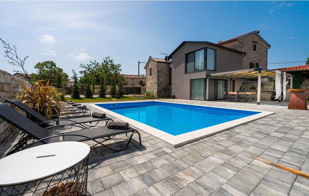 Casa La Tabachina er en moderne villa med pool beliggende i udkanten af landsbyen Šivati, ikke langt fra Kanfanar i det centrale Istrien. En kombination af moderne istrisk stenhus og en nybygget del og moderne møbler med masser af antikke detaljer giver huset en unik atmosfære, hvor hver gæst vil fylde hyggeligt og specielt. På en 699 kvm stor, lukket ejendom tilbyder Casa La Tabachina sine gæster en 42 kvm stor pool, en overdækket terrasse med sommerkøkken med bageovn og spisebord, 2 parkeringspladser og i en separat bygning er der en infrarød og finsk sauna og badeværelse. Villa med pool med en overflade på 153 kvm på to etager med aircondition, velegnet til max 6 personer. I stueetagen er der opholdsstue med to-personers sovesofa, fuldt udstyret køkken med spisebord og adgang til terrassen og poolen, separat toilet. På 1. sal er der to dobbeltværelser, hver med satellit-tv og bad/toilet. Bemærk venligst, at denne ejendom ikke accepterer ungdomsgrupper eller polterabends. En ungdomsgruppe på denne ejendom er en gruppe bestående af personer på 26 år eller derunder. Book ikke denne ejendom, hvis du er en ungdomsgruppe eller et polterabend, da din reservation vil blive afvist efter booking, hvilket kan omfatte ved ankomst til ejendommen eller under dit ophold, og du vil ikke blive refunderet.