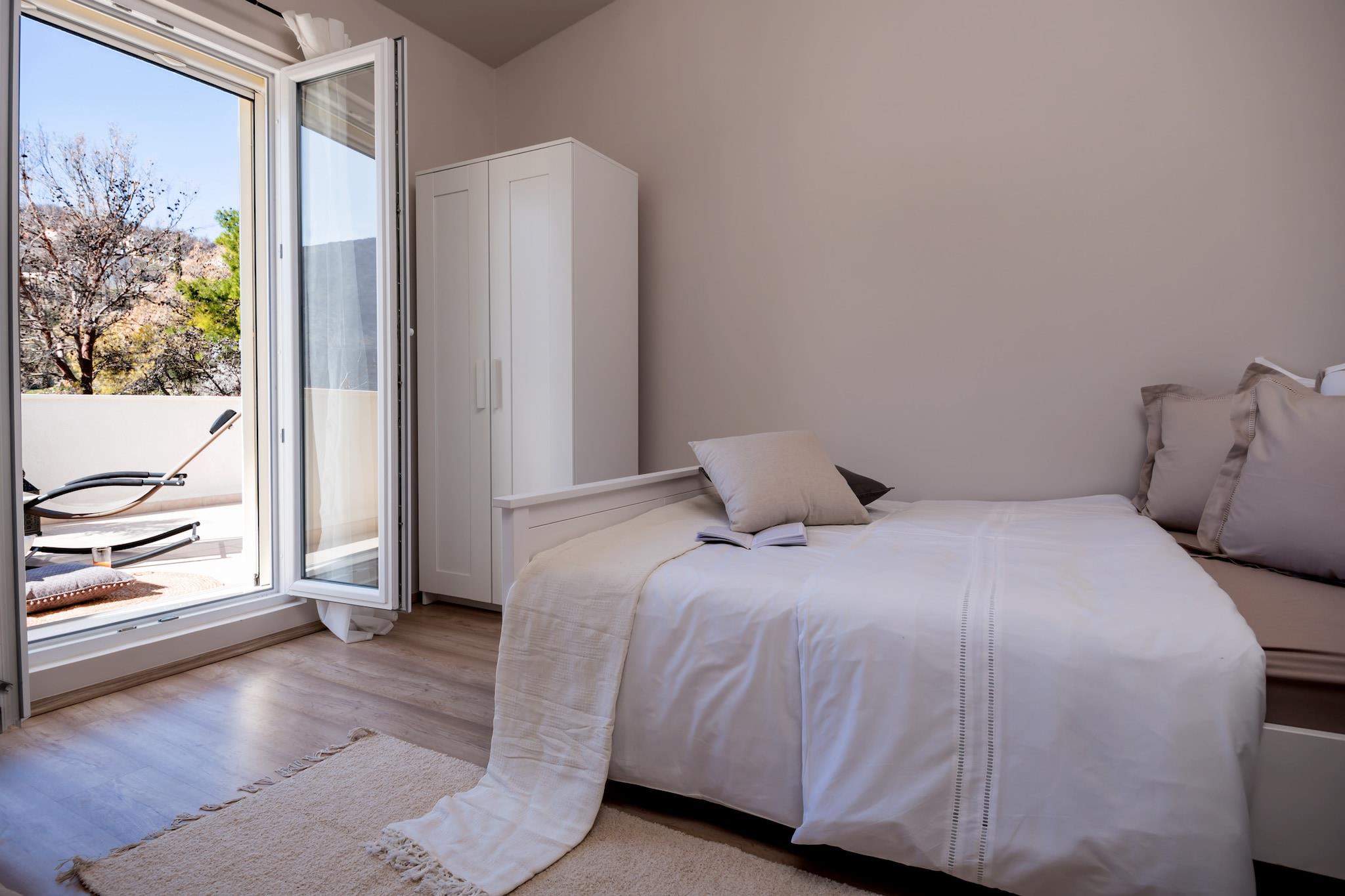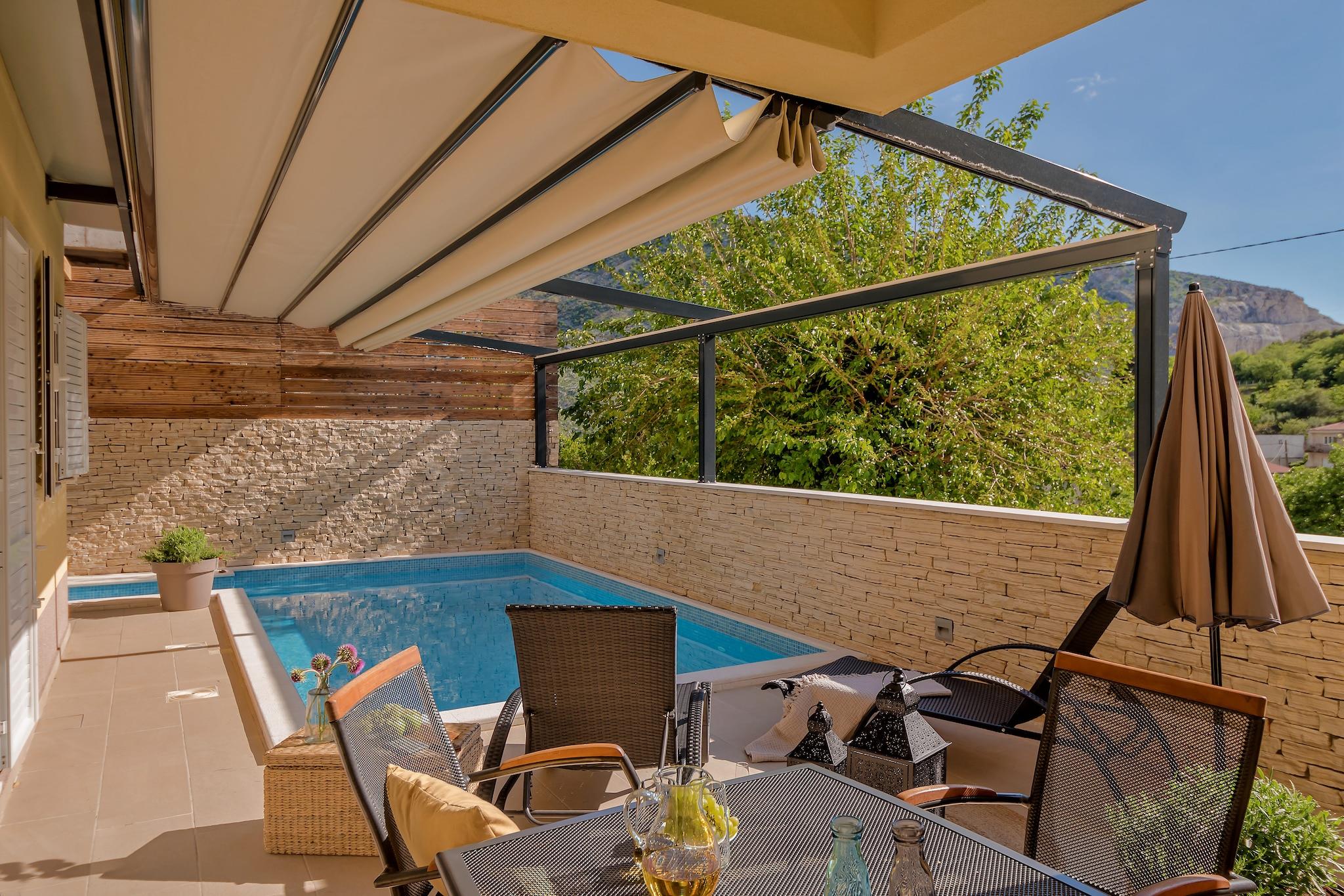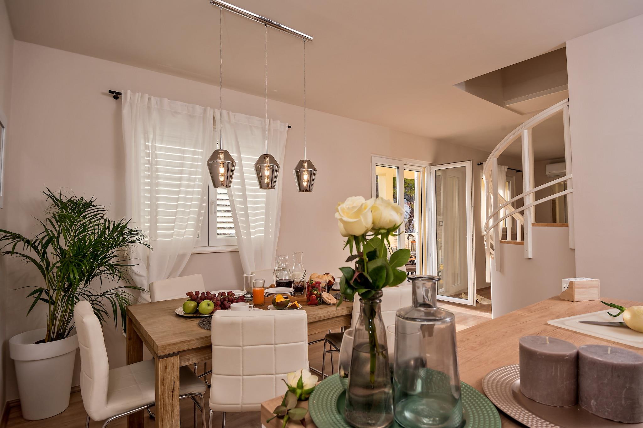 Denne rummelige, elegant designede villa er beliggende i den drømmende landsby Žrnovnica, i en meget smuk og uudforsket del af byen Split. Ejendommen består af solrige terrasser, en privat opvarmet pool og et udendørs køkken med en dalmatisk grill. Stuen og 3 værelser er udstyret med et klimaanlæg. Der er 2 luksusbadeværelser. På 2 km, har du supermarkeder og restauranter, og du kan være på havets strand på 3 km. Den antikke by Split på 10 km, og den fascinerende canyon Cetina-floden på 20 km, er gode til dagsture. Også de smukke øer Brac og Hvar og byen Dubrovnik kan nemt besøges. Ved ankomsten finder du 4 parkeringspladser. Den opvarmede udendørs saltvandspool er udstyret med et elektrolysevandsteriliseringssystem. Der tilbydes højhastighedsinternet, Netflix, mountainbikes, concierge-tjenester. Splits internationale lufthavn ligger 20 km derfra. Der er gratis transport fra lufthavnen til dette hjem for 6+3 personer.