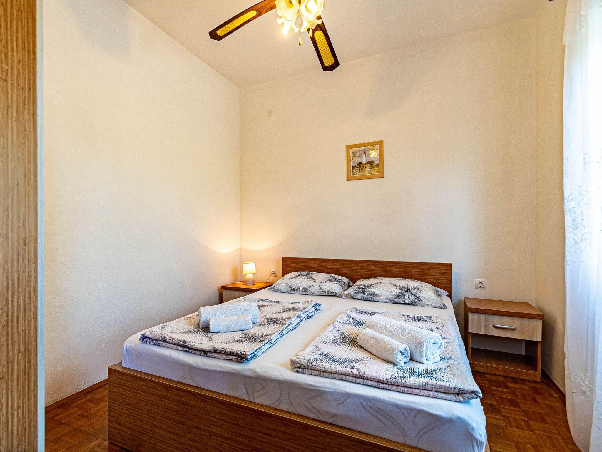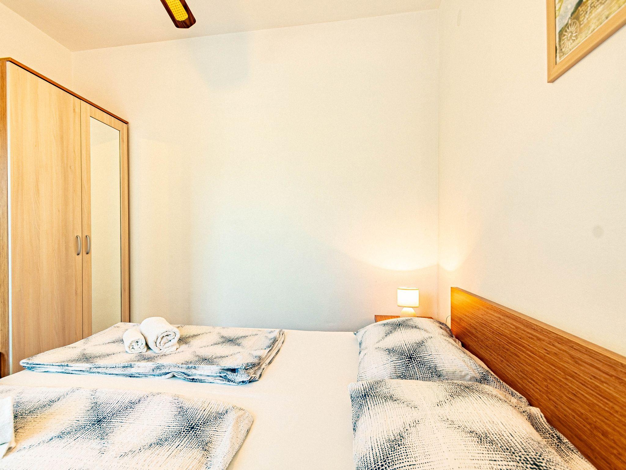 Ferienwohnung bietet Platz für 3 Gäste. Die Betten sind in Schlafzimmern, die es 1 gibt, und in Wohnzimmer, innerhalb einer Gesamtfläche von 29m2, angeordnet. Die Gäste haben eine eigene Terrasse zur Verfügung, auf der sie in warmen Sommernächten genießen können. Das Apartment bietet Meerblick. Es ist erlaubt, Speisen auf dem Gemeinschafts-Grill vorzubereiten. IM PREIS INBEGRIFFEN: Kurtaxe, Endreinigung, Klimatisierung, Parkplatz, Internet, Bügeleisen, Bügelbrett, Föhn, Liegestühle. UNVERBINDLICHE ZUSÄTZLICHE KOSTEN: Wäschewaschen (5,00 € Waschen), Bootsanlegeplatz (3,00 € pro Nacht). Die Verfügbarkeit zusätzlicher Dienstleistungen in Ihrem reservierten Termin und die Preise derselben (falls nicht aufgeführt) müssen im Voraus überprüft werden. Zusätzliche Dienstleistungen die in der Zahlungsaufforderung nicht aufgeführt sind werden direkt beim Vermieter bezahlt, angenommen der Gast nutzt auch diese. Ermäßigung auf den Grundpreis: Gratistag 28=25 (bei einem Aufenthalt von 28 oder mehr Tagen erhalten Sie 3 kostenlose Tage für den Aufenthalt bis 31.12.26).