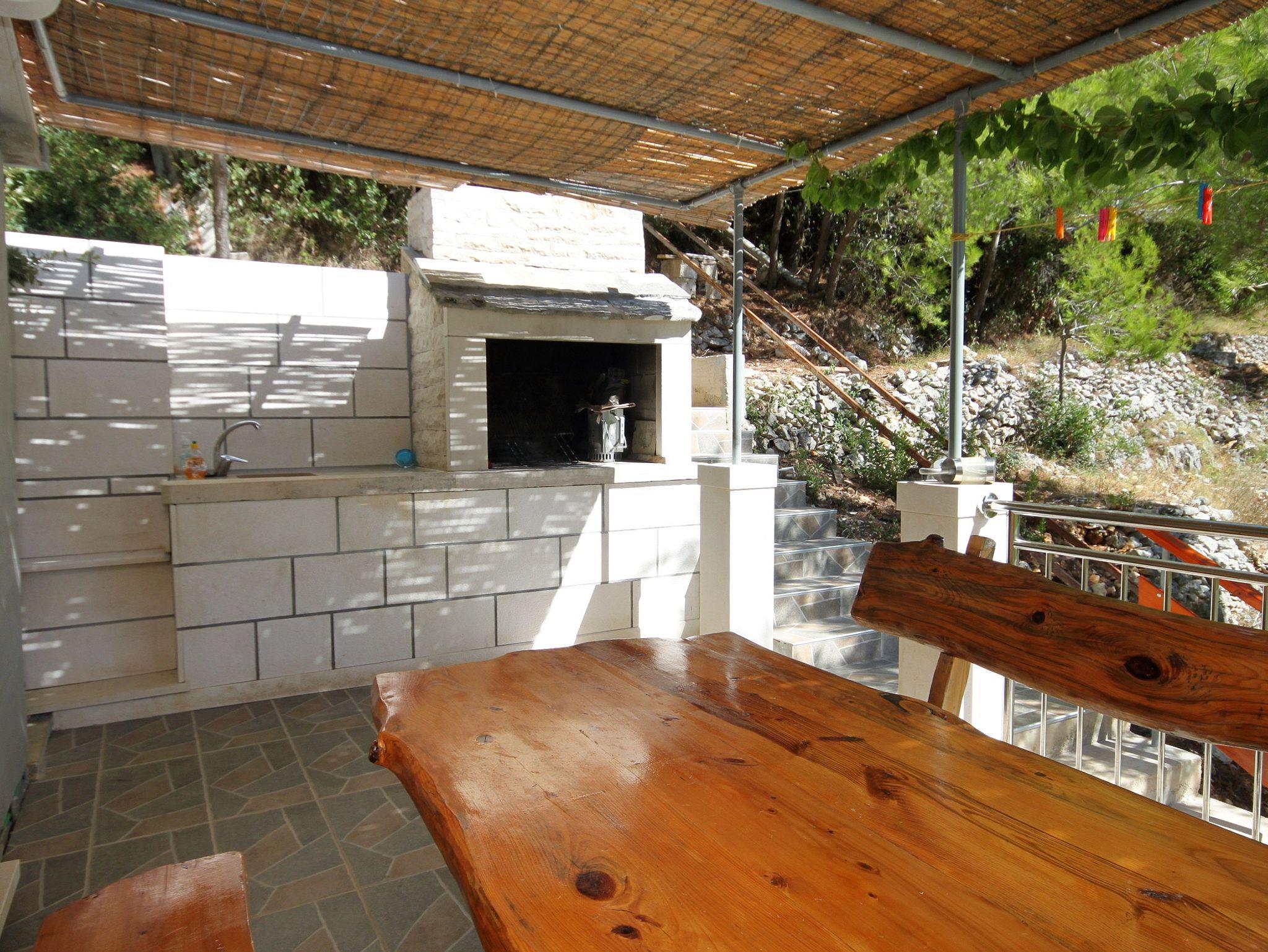 Haus bietet Platz für 4 Gäste. Die Betten sind in Schlafzimmern, die es 1 gibt, und in Esszimmer, innerhalb einer Gesamtfläche von 22m2, angeordnet. Die Gäste haben eine eigene Terrasse zur Verfügung, auf der sie in warmen Sommernächten genießen können. Das Haus bietet Meerblick. Für vollen Genuss und Entspannung gibt es einen privaten Grill für Gäste dieser Unterkunft. In der Unterkunftseinheit besteht die Möglichkeit des Mitbringens von Haustieren gegen Aufpreis. IM PREIS INBEGRIFFEN: Kurtaxe, Endreinigung, Parkplatz, Bootsanlegeplatz, Zusatzbett, Sonnenschirm, Liegestühle. VERBINDLICHE ZUSÄTZLICHE KOSTEN: Aufzahlung für Kurzaufenthalte (prozentualer Zuschlag pro Nächtigungsanzahl: 30% - 1, 20% - 2, 10% - 3). UNVERBINDLICHE ZUSÄTZLICHE KOSTEN: Haustiere (7,00 € pro Nacht). Die Verfügbarkeit zusätzlicher Dienstleistungen in Ihrem reservierten Termin und die Preise derselben (falls nicht aufgeführt) müssen im Voraus überprüft werden. Zusätzliche Dienstleistungen die in der Zahlungsaufforderung nicht aufgeführt sind werden direkt beim Vermieter bezahlt, angenommen der Gast nutzt auch diese.