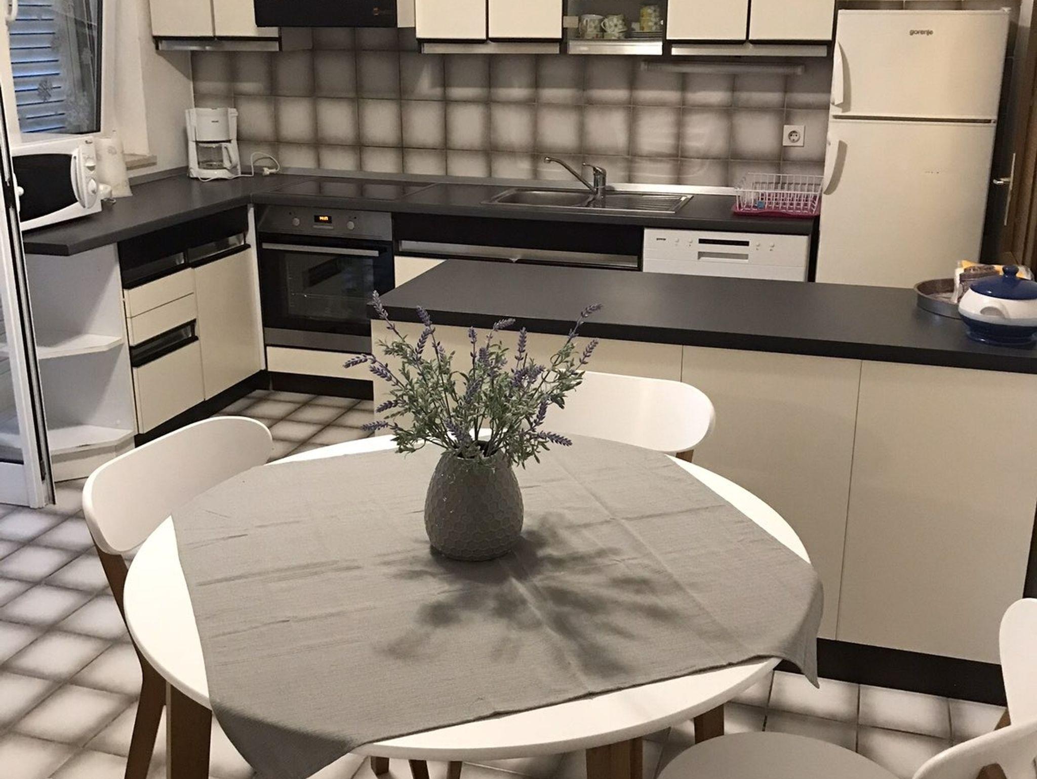 Haus bietet Platz für 6 Gäste. Die Betten sind in Schlafzimmern, die es 3 gibt, innerhalb einer Gesamtfläche von 94m2, angeordnet. Die Gäste haben eine eigene Terrasse zur Verfügung, auf der sie in warmen Sommernächten genießen können. Das Haus bietet Meerblick. Für vollen Genuss und Entspannung gibt es einen privaten Grill für Gäste dieser Unterkunft. In der Unterkunftseinheit besteht die Möglichkeit des Mitbringens von Haustieren gegen Aufpreis. IM PREIS INBEGRIFFEN: Kurtaxe, Endreinigung, Klimatisierung, Parkplatz, Internet, Bootsanlegeplatz, Kinderbett, Bügeleisen, Bügelbrett, Föhn, tragbarer Grill, Liegestühle, 2 Kinderbettchen (im Preis enthalten). VERBINDLICHE ZUSÄTZLICHE KOSTEN: Aufzahlung für Kurzaufenthalte (prozentualer Zuschlag pro Nächtigungsanzahl: 30% - 1, 20% - 2, 10% - 3). UNVERBINDLICHE ZUSÄTZLICHE KOSTEN: Haustiere (10,00 € pro Nacht). Die Verfügbarkeit zusätzlicher Dienstleistungen in Ihrem reservierten Termin und die Preise derselben (falls nicht aufgeführt) müssen im Voraus überprüft werden. Zusätzliche Dienstleistungen die in der Zahlungsaufforderung nicht aufgeführt sind werden direkt beim Vermieter bezahlt, angenommen der Gast nutzt auch diese.