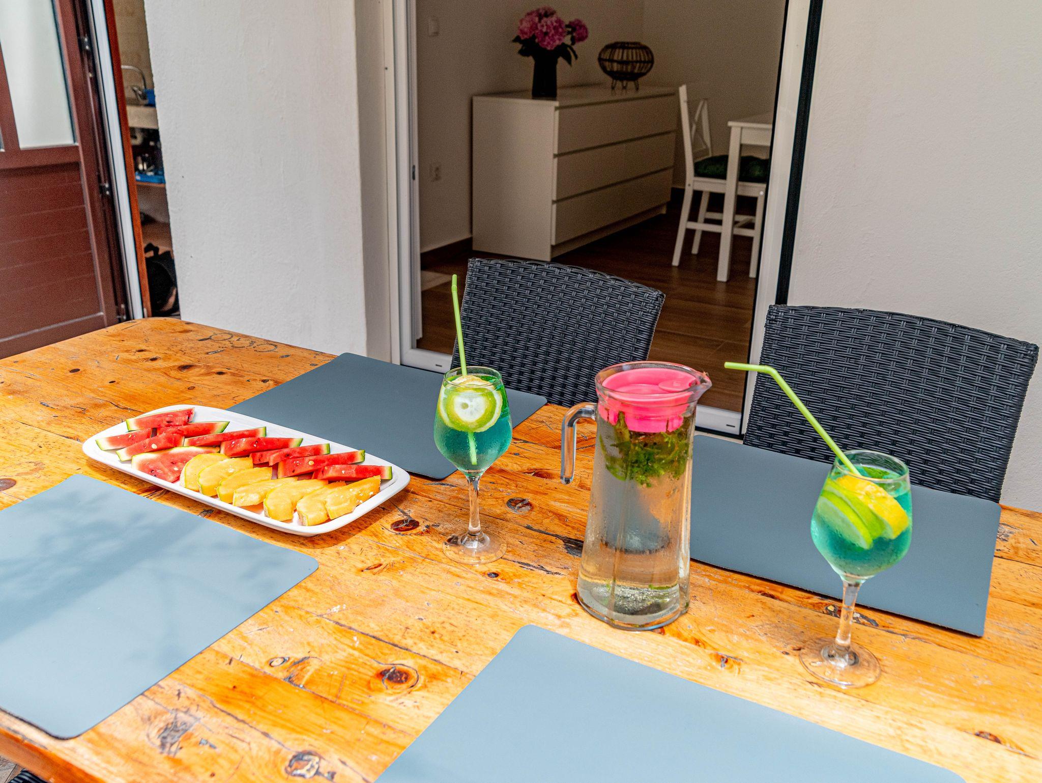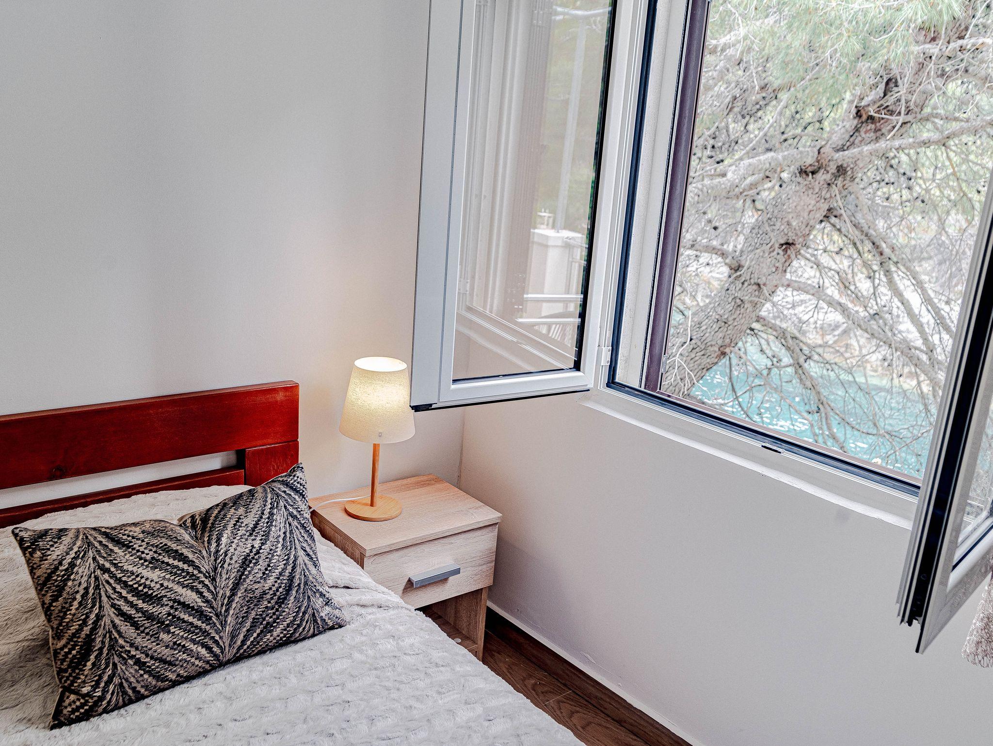 Ferienwohnung bietet Platz für 4 Gäste. Die Betten sind in Schlafzimmern, die es 2 gibt, innerhalb einer Gesamtfläche von 37m2, angeordnet. Die Gäste haben eine eigene Terrasse zur Verfügung, auf der sie in warmen Sommernächten genießen können. Das Apartment bietet Meerblick. Es ist erlaubt, Speisen auf dem Gemeinschafts-Grill vorzubereiten. IM PREIS INBEGRIFFEN: Kurtaxe, Endreinigung, Parkplatz, Bootsanlegeplatz, Zusatzbett, tragbarer Grill, Sonnenschirm, Liegestühle. VERBINDLICHE ZUSÄTZLICHE KOSTEN: Aufzahlung für Kurzaufenthalte (prozentualer Zuschlag pro Nächtigungsanzahl: 30% - 1, 20% - 2, 10% - 3). Die Verfügbarkeit zusätzlicher Dienstleistungen in Ihrem reservierten Termin und die Preise derselben (falls nicht aufgeführt) müssen im Voraus überprüft werden. Zusätzliche Dienstleistungen die in der Zahlungsaufforderung nicht aufgeführt sind werden direkt beim Vermieter bezahlt, angenommen der Gast nutzt auch diese.