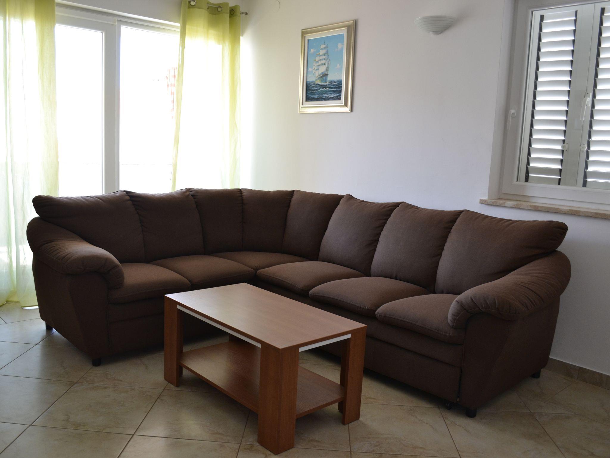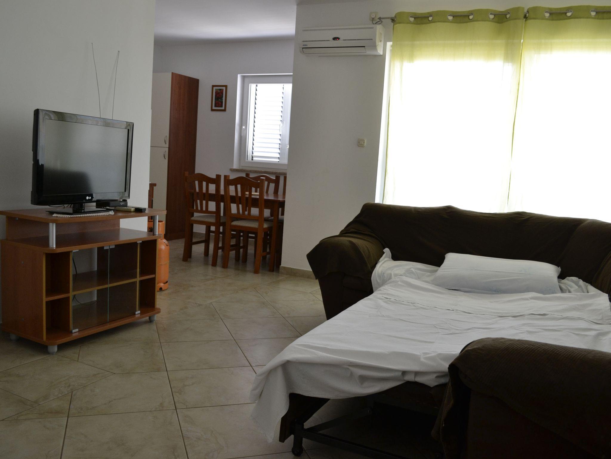 Ferienwohnung bietet Platz für 6 Gäste. Die Betten sind in Schlafzimmern, die es 2 gibt, und in Wohnzimmer, innerhalb einer Gesamtfläche von 49m2, angeordnet. Die Gäste haben eine eigene Terrasse zur Verfügung, auf der sie in warmen Sommernächten genießen können. Das Apartment bietet Meerblick. In der Unterkunftseinheit besteht die Möglichkeit des Mitbringens von Haustieren gegen Aufpreis. IM PREIS INBEGRIFFEN: Kurtaxe, Endreinigung, Parkplatz, Bootsanlegeplatz. VERBINDLICHE ZUSÄTZLICHE KOSTEN: Aufzahlung für Kurzaufenthalte (prozentualer Zuschlag pro Nächtigungsanzahl: 30% - 1, 20% - 2, 10% - 3). UNVERBINDLICHE ZUSÄTZLICHE KOSTEN: Klimatisierung (8,00 € pro Nacht), Haustiere (10,00 € pro Nacht). Die Verfügbarkeit zusätzlicher Dienstleistungen in Ihrem reservierten Termin und die Preise derselben (falls nicht aufgeführt) müssen im Voraus überprüft werden. Zusätzliche Dienstleistungen die in der Zahlungsaufforderung nicht aufgeführt sind werden direkt beim Vermieter bezahlt, angenommen der Gast nutzt auch diese.