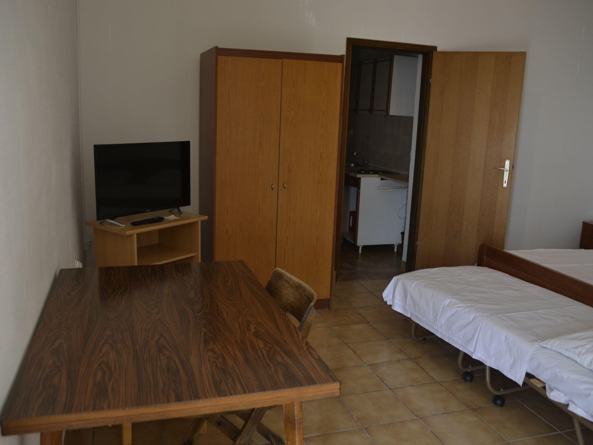 Studio bietet Platz für 3 Gäste. Die Betten sind in Schlafzimmern, die es 1 gibt, innerhalb einer Gesamtfläche von 28m2, angeordnet. Die Gäste haben eine eigene Terrasse zur Verfügung, auf der sie in warmen Sommernächten genießen können. Das Studio-Apartment bietet Meerblick. Es ist erlaubt, Speisen auf dem Gemeinschafts-Grill vorzubereiten. In der Unterkunftseinheit besteht die Möglichkeit des Mitbringens von Haustieren gegen Aufpreis. IM PREIS INBEGRIFFEN: Kurtaxe, Endreinigung, Parkplatz, Internet, Bootsanlegeplatz. VERBINDLICHE ZUSÄTZLICHE KOSTEN: Aufzahlung für Kurzaufenthalte (prozentualer Zuschlag pro Nächtigungsanzahl: 30% - 1, 20% - 2, 10% - 3). UNVERBINDLICHE ZUSÄTZLICHE KOSTEN: Klimatisierung (8,00 € pro Nacht), Haustiere (10,00 € pro Nacht). Die Verfügbarkeit zusätzlicher Dienstleistungen in Ihrem reservierten Termin und die Preise derselben (falls nicht aufgeführt) müssen im Voraus überprüft werden. Zusätzliche Dienstleistungen die in der Zahlungsaufforderung nicht aufgeführt sind werden direkt beim Vermieter bezahlt, angenommen der Gast nutzt auch diese.
