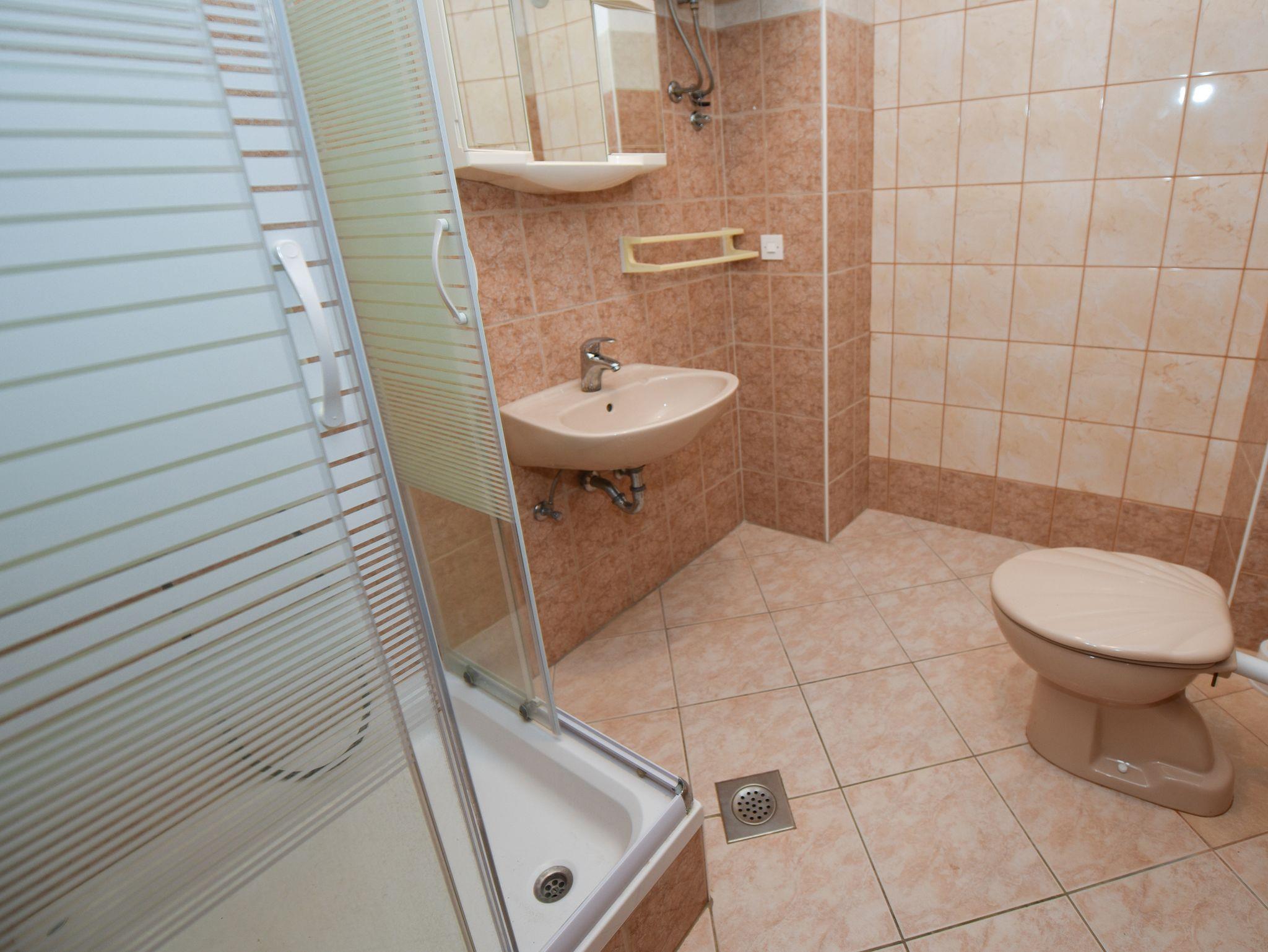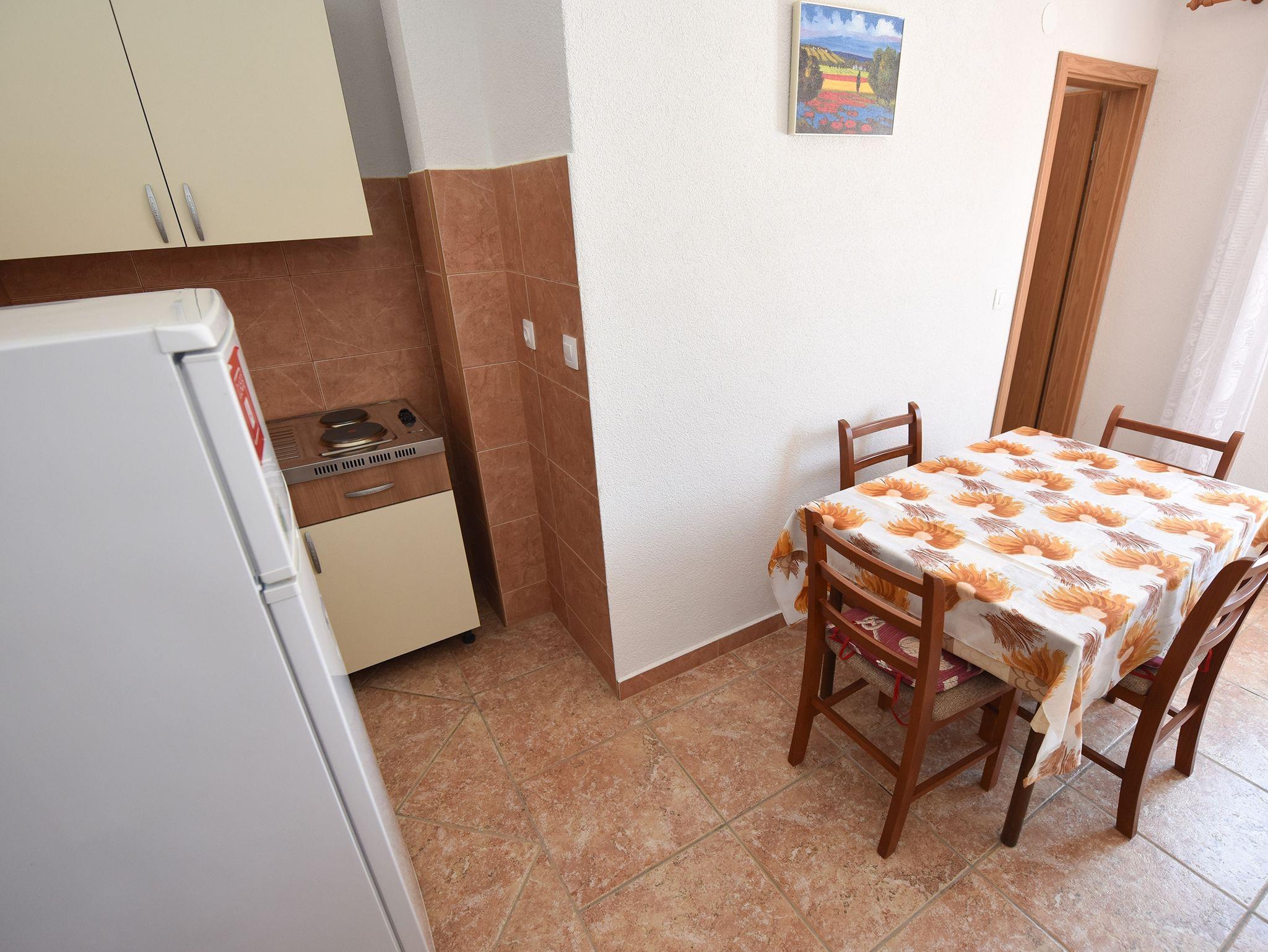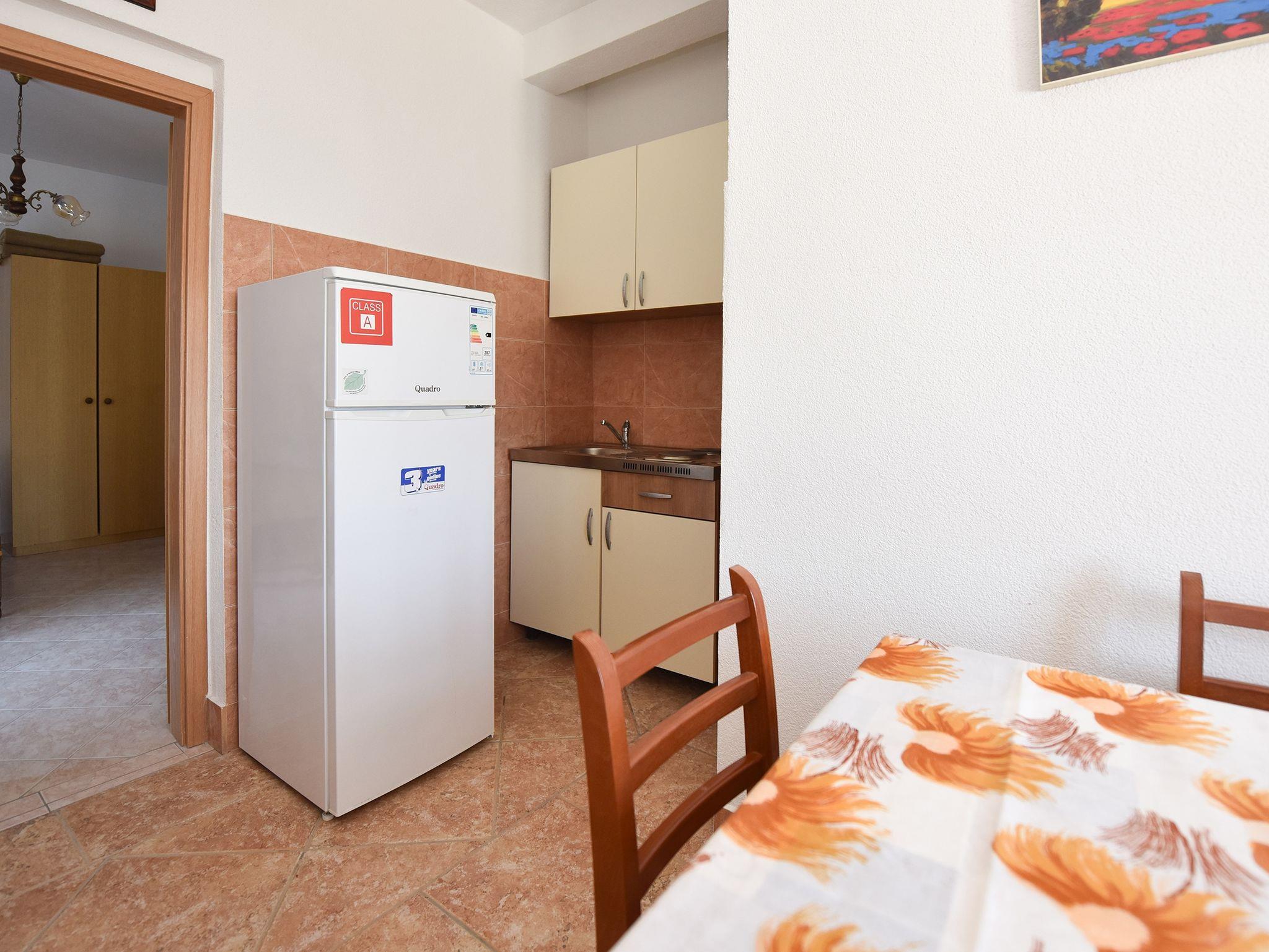 Ferienwohnung bietet Platz für 6 Gäste. Die Betten sind in Schlafzimmern, die es 2 gibt, innerhalb einer Gesamtfläche von 40m2, angeordnet. Das Apartment bietet Meerblick. Es ist erlaubt, Speisen auf dem Gemeinschafts-Grill vorzubereiten. Die reservierte Unterkunftseinheit verfügt über einen gemeinsame Terrasse. IM PREIS INBEGRIFFEN: Kurtaxe, Endreinigung, Parkplatz, Internet, Bootsanlegeplatz. VERBINDLICHE ZUSÄTZLICHE KOSTEN: Aufzahlung für Kurzaufenthalte (prozentualer Zuschlag pro Nächtigungsanzahl: 30% - 1, 20% - 2, 10% - 3). UNVERBINDLICHE ZUSÄTZLICHE KOSTEN: Klimatisierung (5,00 € pro Nacht). Die Verfügbarkeit zusätzlicher Dienstleistungen in Ihrem reservierten Termin und die Preise derselben (falls nicht aufgeführt) müssen im Voraus überprüft werden. Zusätzliche Dienstleistungen die in der Zahlungsaufforderung nicht aufgeführt sind werden direkt beim Vermieter bezahlt, angenommen der Gast nutzt auch diese. Ermäßigung auf den Grundpreis: Gratistag 14=13 (bei einem Aufenthalt von 14 Tagen oder mehr erhalten Sie einen Gratistag für den Aufenthalt bis 31.12.26).