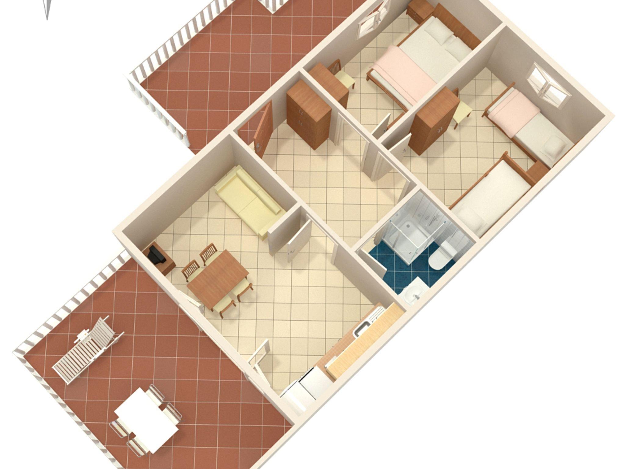 Ferienwohnung bietet Platz für 6 Gäste. Die Betten sind in Schlafzimmern, die es 2 gibt, und in Esszimmer, innerhalb einer Gesamtfläche von 42m2, angeordnet. Die Gäste haben eine eigene Terrasse zur Verfügung, auf der sie in warmen Sommernächten genießen können. Das Apartment bietet Meerblick. Es ist erlaubt, Speisen auf dem Gemeinschafts-Grill vorzubereiten. IM PREIS INBEGRIFFEN: Kurtaxe, Endreinigung, Klimatisierung, Parkplatz, Internet. Die Verfügbarkeit zusätzlicher Dienstleistungen in Ihrem reservierten Termin und die Preise derselben (falls nicht aufgeführt) müssen im Voraus überprüft werden. Zusätzliche Dienstleistungen die in der Zahlungsaufforderung nicht aufgeführt sind werden direkt beim Vermieter bezahlt, angenommen der Gast nutzt auch diese.