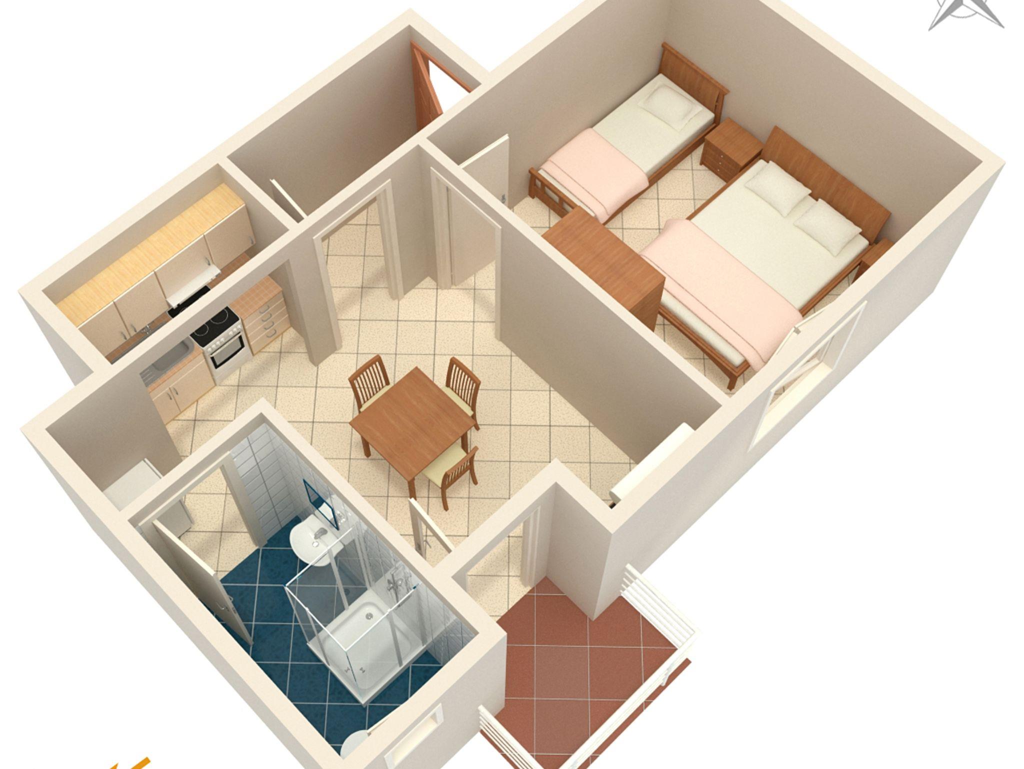 Ferienwohnung bietet Platz für 2 Gäste. Die Betten sind in Schlafzimmern, die es 1 gibt, innerhalb einer Gesamtfläche von 30m2, angeordnet. Die Gäste haben einen eigenen Balkon zur Verfügung, auf der sie in warmen Sommernächten genießen können. Das Apartment bietet Meerblick. Es ist erlaubt, Speisen auf dem Gemeinschafts-Grill vorzubereiten. IM PREIS INBEGRIFFEN: Kurtaxe, Endreinigung, Parkplatz, Internet, Bootsanlegeplatz. VERBINDLICHE ZUSÄTZLICHE KOSTEN: Aufzahlung für Kurzaufenthalte (prozentualer Zuschlag pro Nächtigungsanzahl: 30% - 1, 20% - 2, 10% - 3). UNVERBINDLICHE ZUSÄTZLICHE KOSTEN: Klimatisierung (5,00 € pro Nacht), Zusatzbett (10,00 € pro Nacht). Die Verfügbarkeit zusätzlicher Dienstleistungen in Ihrem reservierten Termin und die Preise derselben (falls nicht aufgeführt) müssen im Voraus überprüft werden. Zusätzliche Dienstleistungen die in der Zahlungsaufforderung nicht aufgeführt sind werden direkt beim Vermieter bezahlt, angenommen der Gast nutzt auch diese.