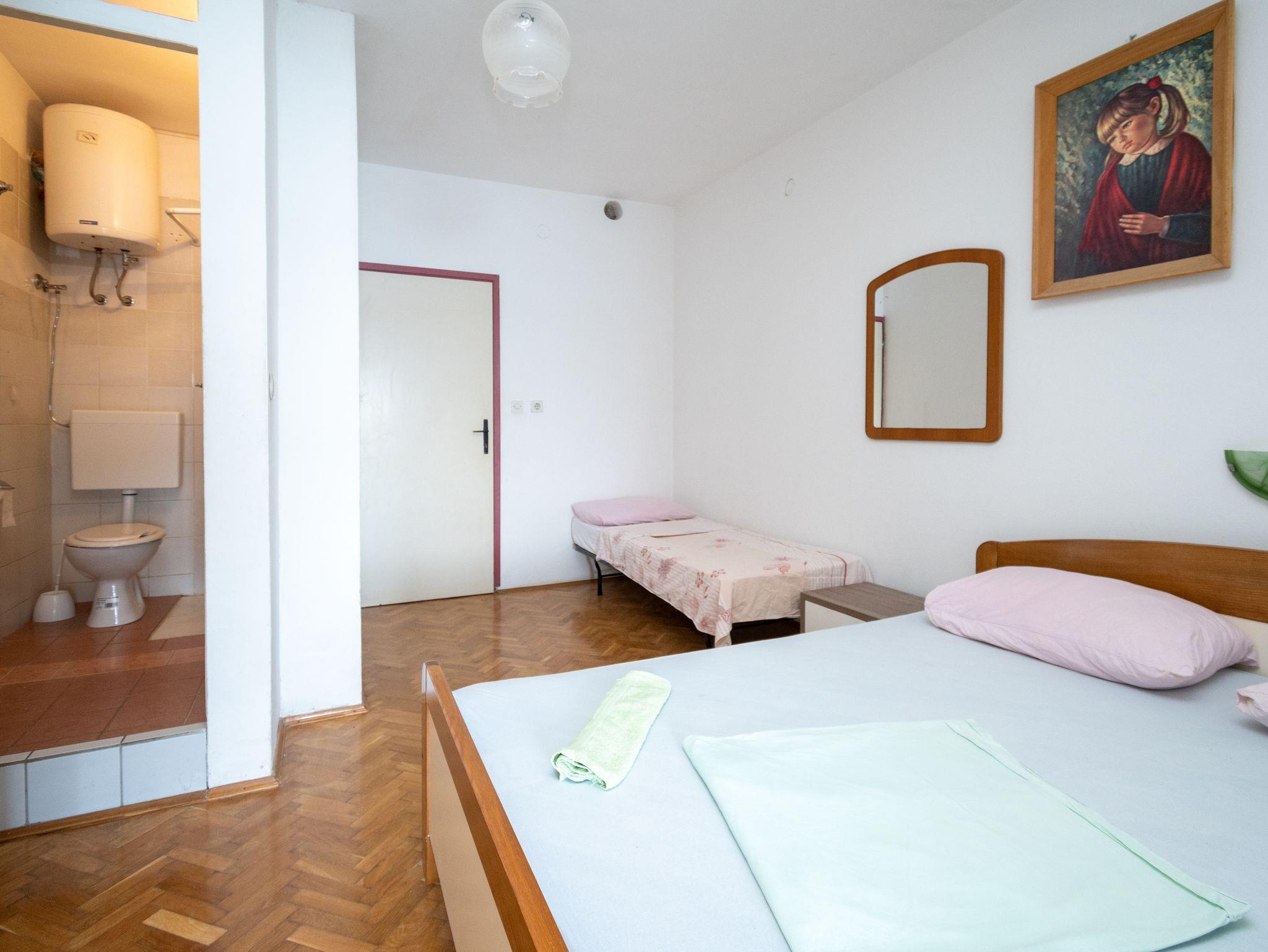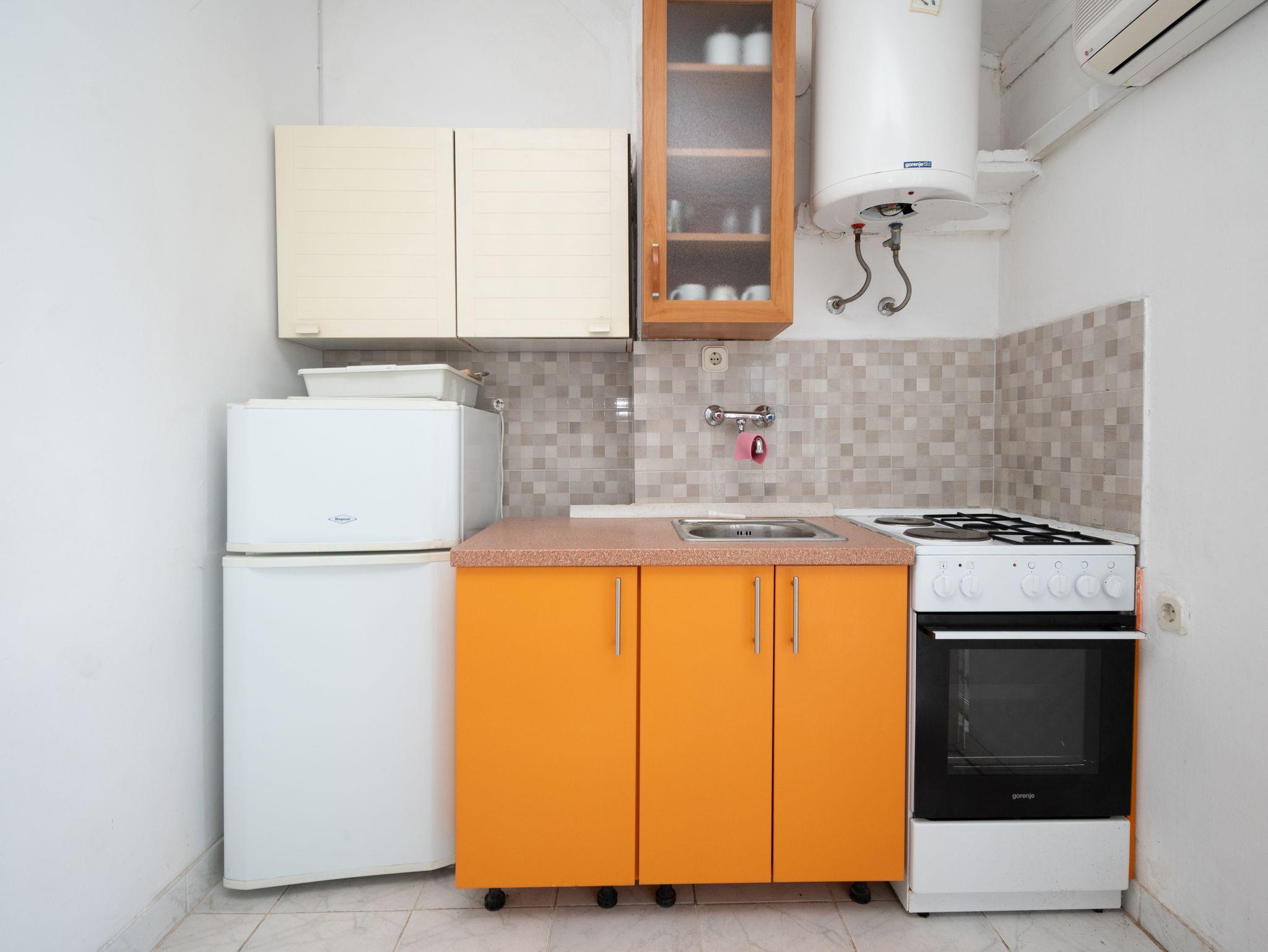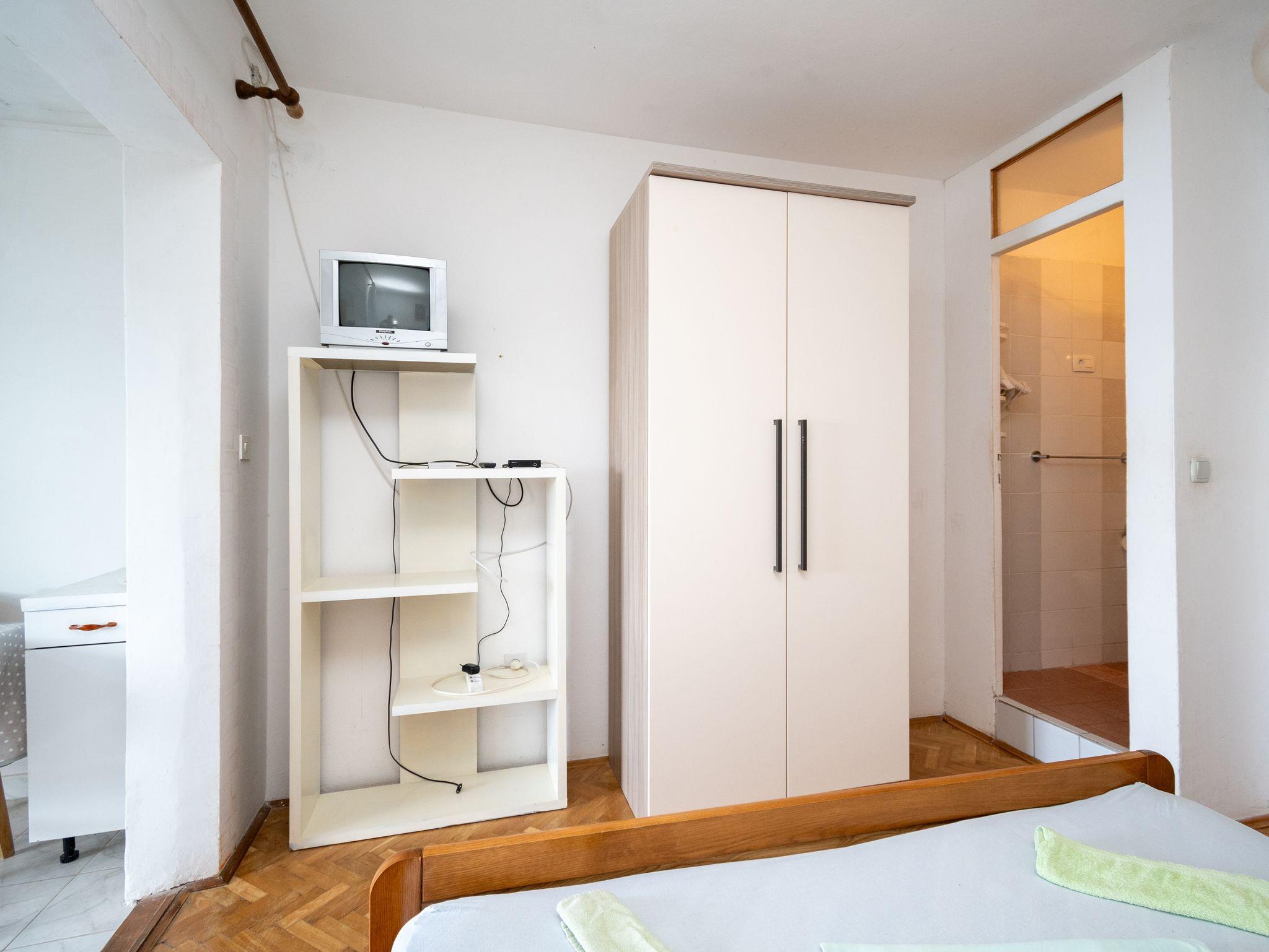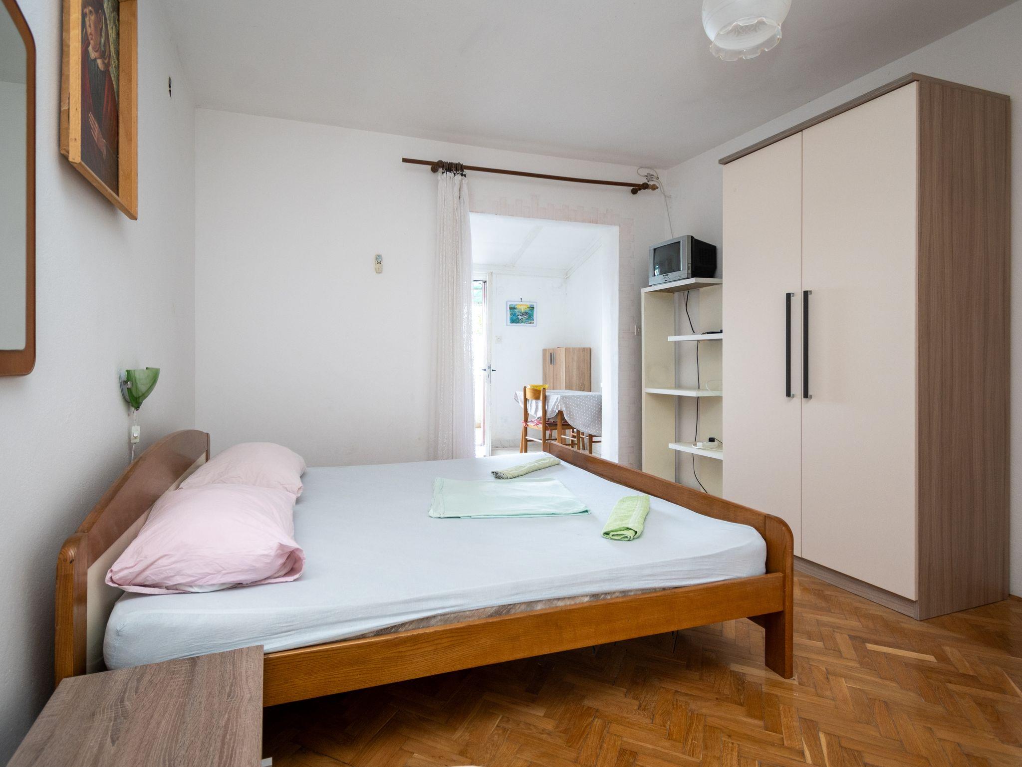 Studio bietet Platz für 3 Gäste. Die Betten sind in Schlafzimmern, die es 1 gibt, innerhalb einer Gesamtfläche von 28m2, angeordnet. Die Gäste haben eine eigene Terrasse zur Verfügung, auf der sie in warmen Sommernächten genießen können. Das Studio-Apartment bietet Meerblick. Es ist erlaubt, Speisen auf dem Gemeinschafts-Grill vorzubereiten. In der Unterkunftseinheit besteht die Möglichkeit des Mitbringens von Haustieren gegen Aufpreis. IM PREIS INBEGRIFFEN: Kurtaxe, Endreinigung, Klimatisierung, Parkplatz, Internet, Bootsanlegeplatz, Bügeleisen, Bügelbrett, Föhn. UNVERBINDLICHE ZUSÄTZLICHE KOSTEN: Wäschewaschen (5,00 € Waschen), Haustiere (5,00 € pro Nacht). Die Verfügbarkeit zusätzlicher Dienstleistungen in Ihrem reservierten Termin und die Preise derselben (falls nicht aufgeführt) müssen im Voraus überprüft werden. Zusätzliche Dienstleistungen die in der Zahlungsaufforderung nicht aufgeführt sind werden direkt beim Vermieter bezahlt, angenommen der Gast nutzt auch diese. Ermäßigung auf den Grundpreis: Gratistag 14=13 (bei einem Aufenthalt von 14 Tagen oder mehr erhalten Sie einen Gratistag für den Aufenthalt bis 31.12.26).
