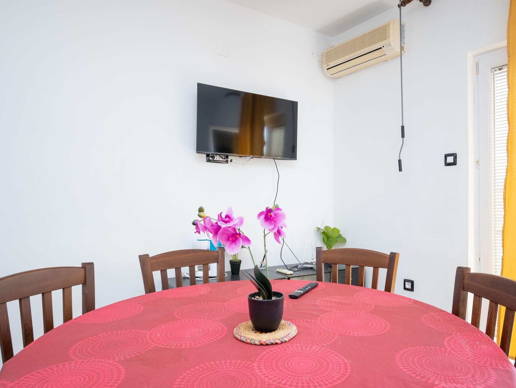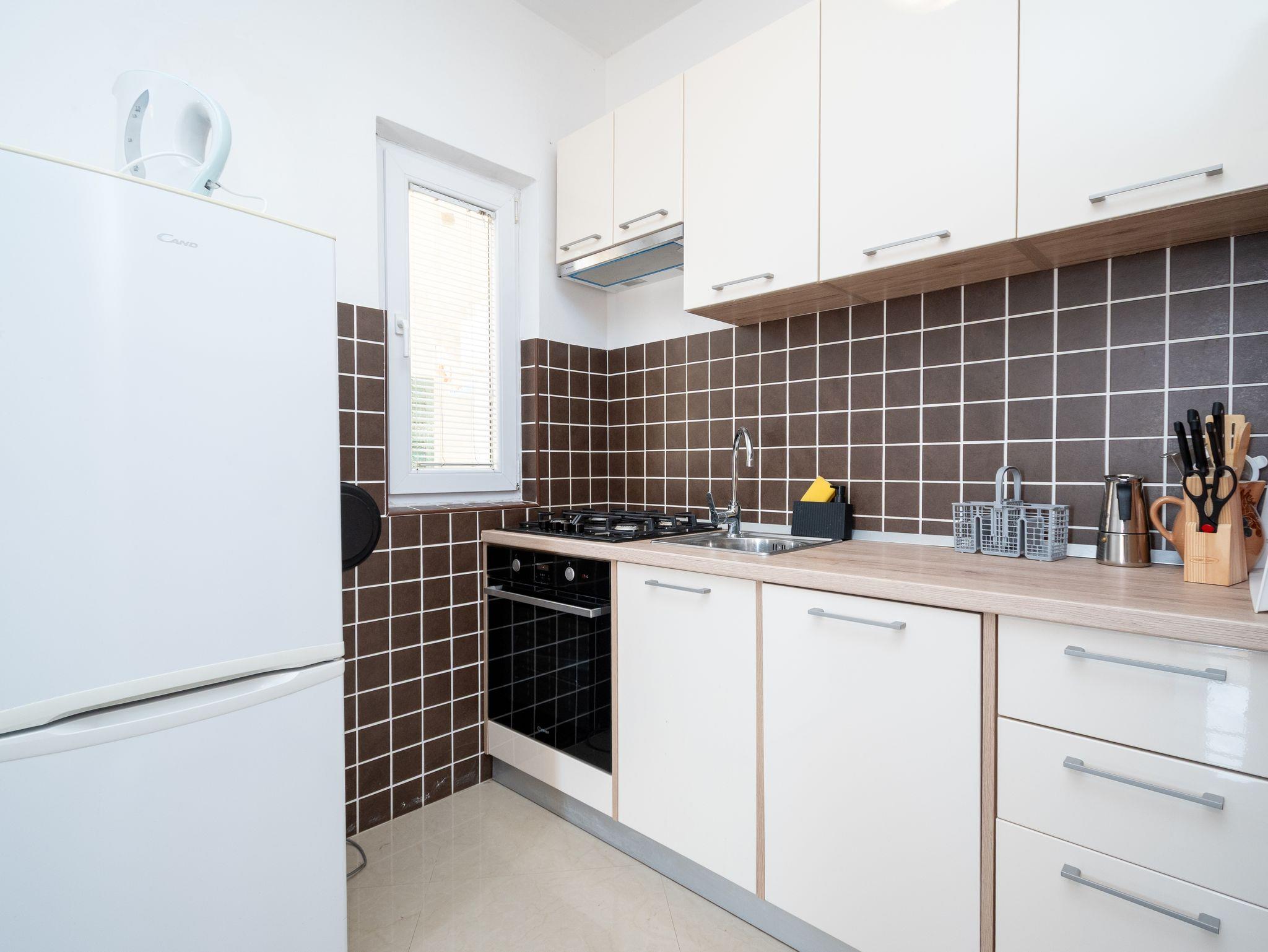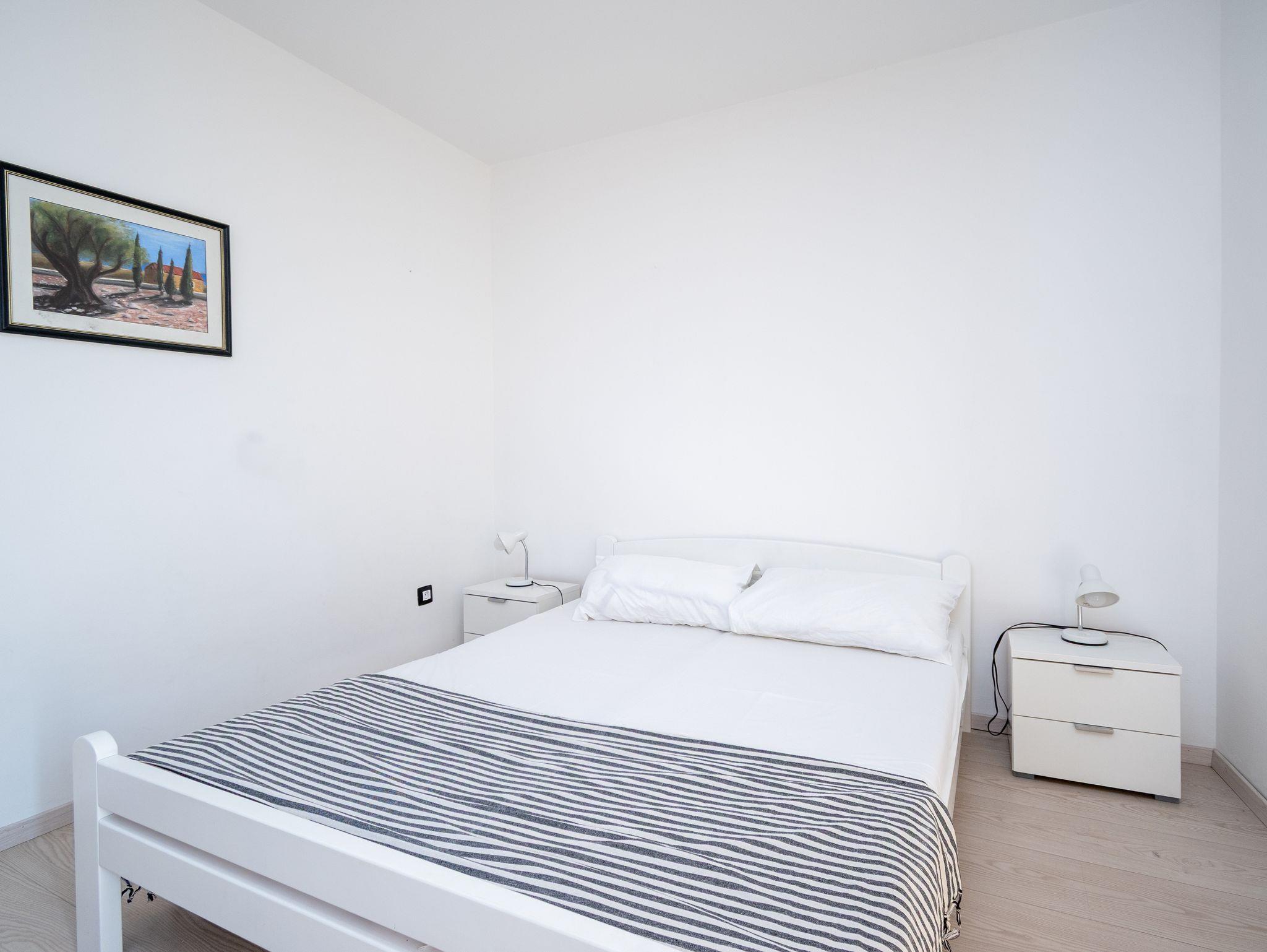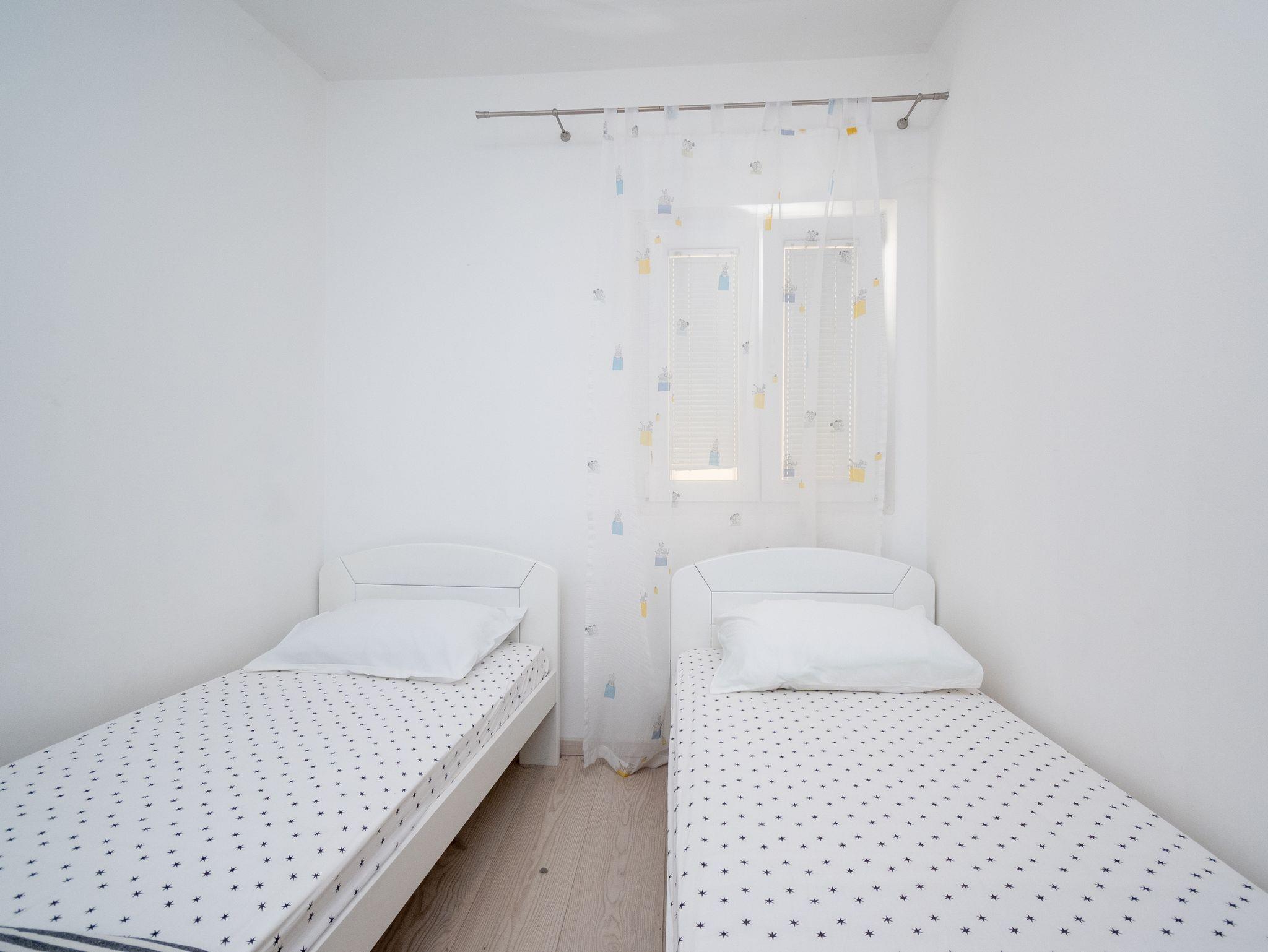 Ferienwohnung bietet Platz für 4 Gäste. Die Betten sind in Schlafzimmern, die es 2 gibt, innerhalb einer Gesamtfläche von 50m2, angeordnet. Die Gäste haben einen eigenen Balkon zur Verfügung, auf der sie in warmen Sommernächten genießen können. Das Apartment bietet Meerblick. Es ist erlaubt, Speisen auf dem Gemeinschafts-Grill vorzubereiten. Während ihres Aufenthalts können Gäste das gemeinsam zur Nutzung stehende Schwimmbad benutzen. In der Unterkunftseinheit besteht die Möglichkeit des Mitbringens von Haustieren, und die Dienstleistung ist im Preis der Unterkunft enthalten. In der gebuchten Unterkunftseinheit zahlt man am Ort ein Depositum ( der Preis ist an der Internetseite angeführt ). IM PREIS INBEGRIFFEN: Kurtaxe, Endreinigung, Klimatisierung, Pool, Parkplatz, Internet, Wäschewaschen, Haustiere, Fahrrad, Kinderbett, Bügeleisen, Bügelbrett, Föhn. VERBINDLICHE ZUSÄTZLICHE KOSTEN: Kaution (200,00 € Einmalzahlung), Aufzahlung für Kurzaufenthalte (prozentualer Zuschlag pro Nächtigungsanzahl: 30% - 1, 20% - 2, 10% - 3). Die Verfügbarkeit zusätzlicher Dienstleistungen in Ihrem reservierten Termin und die Preise derselben (falls nicht aufgeführt) müssen im Voraus überprüft werden. Zusätzliche Dienstleistungen die in der Zahlungsaufforderung nicht aufgeführt sind werden direkt beim Vermieter bezahlt, angenommen der Gast nutzt auch diese. Ermäßigung auf den Grundpreis: Gratistag 21=19 (bei einem Aufenthalt von 21 Tagen oder mehr erhalten Sie 2 Gratistage für den Aufenthalt bis 31.12.26).
