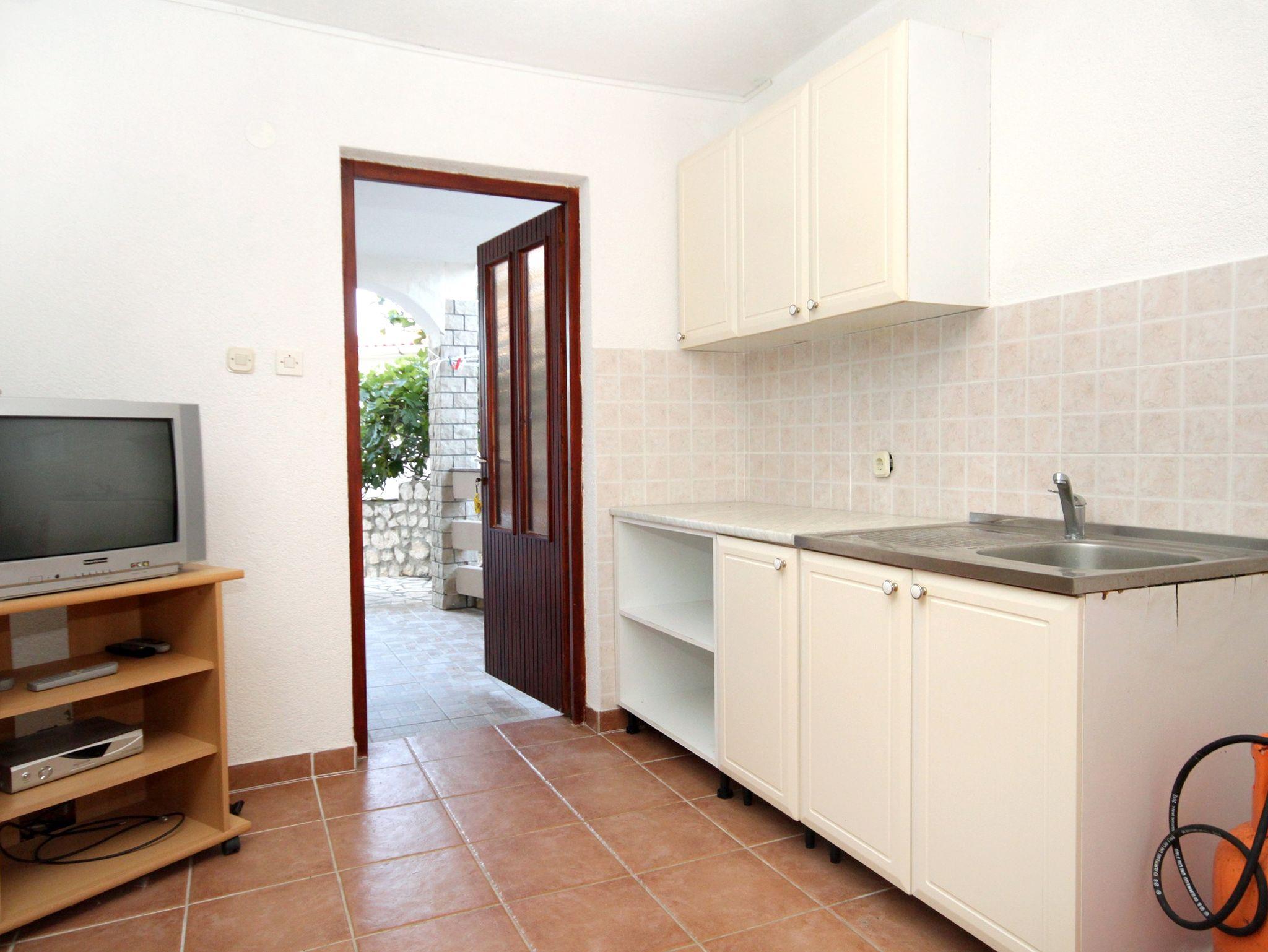 Ferienwohnung bietet Platz für 3 Gäste. Die Betten sind in Schlafzimmern, die es 1 gibt, und in Wohnzimmer, innerhalb einer Gesamtfläche von 25m2, angeordnet. Die Gäste haben eine eigene Terrasse zur Verfügung, auf der sie in warmen Sommernächten genießen können. Das Apartment bietet Meerblick. Es ist erlaubt, Speisen auf dem Gemeinschafts-Grill vorzubereiten. Durch die Terrasse der gebuchten Unterkunftseinheit gehen auch andere Gäste oder Vermieter. IM PREIS INBEGRIFFEN: Kurtaxe, Endreinigung, Klimatisierung, Parkplatz, Internet, Bootsanlegeplatz, Bügeleisen, Bügelbrett, Föhn. VERBINDLICHE ZUSÄTZLICHE KOSTEN: Aufzahlung für Kurzaufenthalte (prozentualer Zuschlag pro Nächtigungsanzahl: 30% - 1, 20% - 2, 10% - 3). Die Verfügbarkeit zusätzlicher Dienstleistungen in Ihrem reservierten Termin und die Preise derselben (falls nicht aufgeführt) müssen im Voraus überprüft werden. Zusätzliche Dienstleistungen die in der Zahlungsaufforderung nicht aufgeführt sind werden direkt beim Vermieter bezahlt, angenommen der Gast nutzt auch diese.