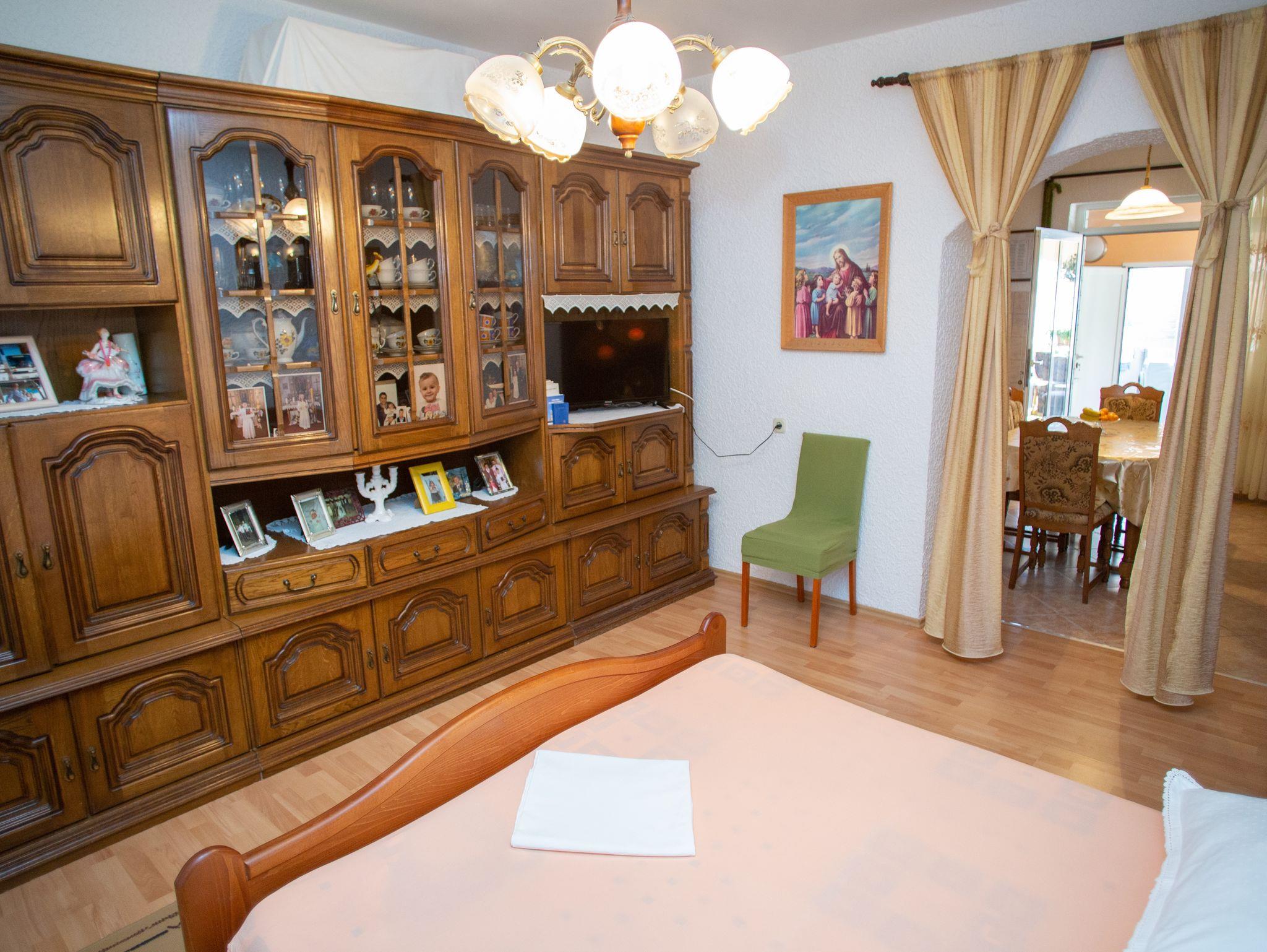 Ferienwohnung bietet Platz für 3 Gäste. Die Betten sind in Schlafzimmern, die es 1 gibt, und in Esszimmer, innerhalb einer Gesamtfläche von 34m2, angeordnet. Die Gäste haben eine eigene Terrasse zur Verfügung, auf der sie in warmen Sommernächten genießen können. Das Apartment bietet Meerblick. Es ist erlaubt, Speisen auf dem Gemeinschafts-Grill vorzubereiten. IM PREIS INBEGRIFFEN: Kurtaxe, Endreinigung, Parkplatz, Internet, Bootsanlegeplatz. VERBINDLICHE ZUSÄTZLICHE KOSTEN: Aufzahlung für Kurzaufenthalte (prozentualer Zuschlag pro Nächtigungsanzahl: 30% - 1, 20% - 2, 10% - 3). UNVERBINDLICHE ZUSÄTZLICHE KOSTEN: Klimatisierung (5,00 € pro Nacht). Die Verfügbarkeit zusätzlicher Dienstleistungen in Ihrem reservierten Termin und die Preise derselben (falls nicht aufgeführt) müssen im Voraus überprüft werden. Zusätzliche Dienstleistungen die in der Zahlungsaufforderung nicht aufgeführt sind werden direkt beim Vermieter bezahlt, angenommen der Gast nutzt auch diese. Ermäßigung auf den Grundpreis: Gratistag 14=13 (bei einem Aufenthalt von 14 Tagen oder mehr erhalten Sie einen Gratistag für den Aufenthalt bis 31.12.26).