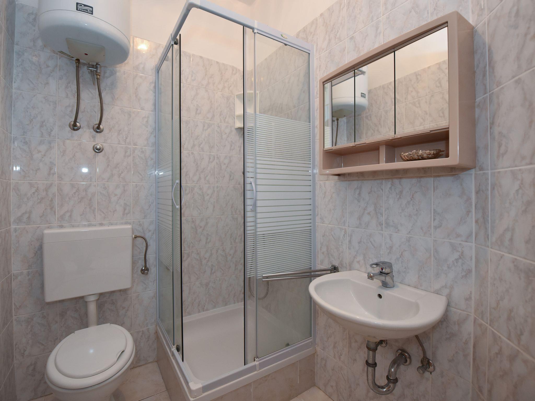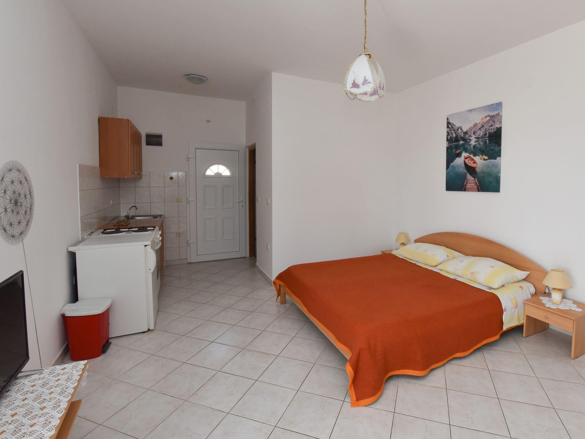 Studio bietet Platz für 2 Gäste. Die Betten sind in Schlafzimmern, die es 1 gibt, innerhalb einer Gesamtfläche von 26m2, angeordnet. Die Gäste haben eine eigene Terrasse zur Verfügung, auf der sie in warmen Sommernächten genießen können. Das Studio-Apartment bietet Meerblick. Es ist erlaubt, Speisen auf dem Gemeinschafts-Grill vorzubereiten. In der Unterkunftseinheit besteht die Möglichkeit des Mitbringens von Haustieren gegen Aufpreis. IM PREIS INBEGRIFFEN: Endreinigung, Klimatisierung, Parkplatz, Internet, Bootsanlegeplatz, Bügeleisen, Bügelbrett, Föhn. VERBINDLICHE ZUSÄTZLICHE KOSTEN: Kurtaxe (Erwachsene 0,93 € - 1,60 € Nacht/Person, Kinderermäßigung 12 - 17 Jahre), Aufzahlung für Kurzaufenthalte (prozentualer Zuschlag pro Nächtigungsanzahl: 30% - 1, 20% - 2, 10% - 3). UNVERBINDLICHE ZUSÄTZLICHE KOSTEN: Wäschewaschen (5,00 € Waschen), Haustiere (5,00 € pro Nacht), Zusatzbett (5,00 € pro Nacht). Die Verfügbarkeit zusätzlicher Dienstleistungen in Ihrem reservierten Termin und die Preise derselben (falls nicht aufgeführt) müssen im Voraus überprüft werden. Zusätzliche Dienstleistungen die in der Zahlungsaufforderung nicht aufgeführt sind werden direkt beim Vermieter bezahlt, angenommen der Gast nutzt auch diese.