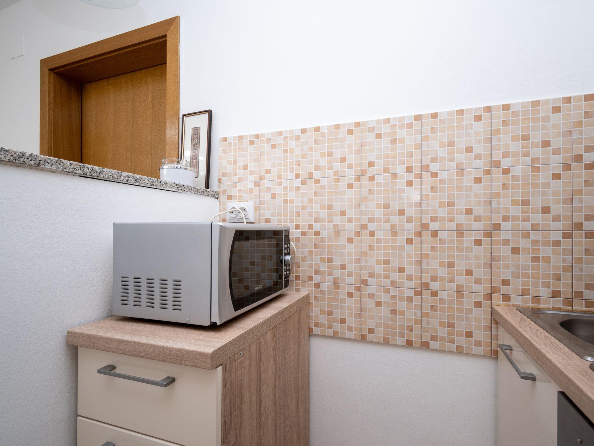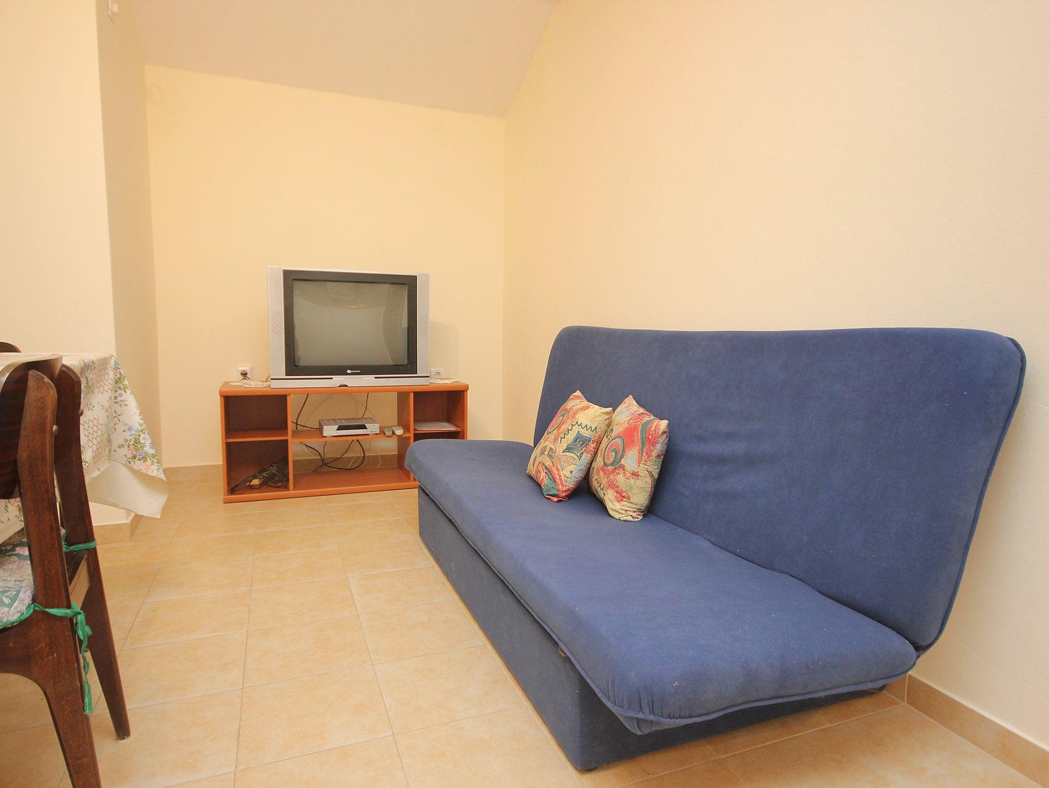 Ferienwohnung bietet Platz für 5 Gäste. Die Betten sind in Schlafzimmern, die es 2 gibt, und in Esszimmer, innerhalb einer Gesamtfläche von 52m2, angeordnet. Die Gäste haben eine eigene Terrasse zur Verfügung, auf der sie in warmen Sommernächten genießen können. Das Apartment bietet Meerblick. Es ist erlaubt, Speisen auf dem Gemeinschafts-Grill vorzubereiten. Während ihres Aufenthalts können Gäste das gemeinsam zur Nutzung stehende Schwimmbad benutzen. In der Unterkunftseinheit besteht die Möglichkeit des Mitbringens von Haustieren, und die Dienstleistung ist im Preis der Unterkunft enthalten. In der gebuchten Unterkunftseinheit zahlt man am Ort ein Depositum ( der Preis ist an der Internetseite angeführt ). IM PREIS INBEGRIFFEN: Kurtaxe, Endreinigung, Klimatisierung, Pool, Parkplatz, Internet, Wäschewaschen, Haustiere, Fahrrad, Kinderbett, Bügeleisen, Bügelbrett, Föhn. VERBINDLICHE ZUSÄTZLICHE KOSTEN: Kaution (200,00 € Einmalzahlung), Aufzahlung für Kurzaufenthalte (prozentualer Zuschlag pro Nächtigungsanzahl: 30% - 1, 20% - 2, 10% - 3). Die Verfügbarkeit zusätzlicher Dienstleistungen in Ihrem reservierten Termin und die Preise derselben (falls nicht aufgeführt) müssen im Voraus überprüft werden. Zusätzliche Dienstleistungen die in der Zahlungsaufforderung nicht aufgeführt sind werden direkt beim Vermieter bezahlt, angenommen der Gast nutzt auch diese. Ermäßigung auf den Grundpreis: Gratistag 21=19 (bei einem Aufenthalt von 21 Tagen oder mehr erhalten Sie 2 Gratistage für den Aufenthalt bis 31.12.26).