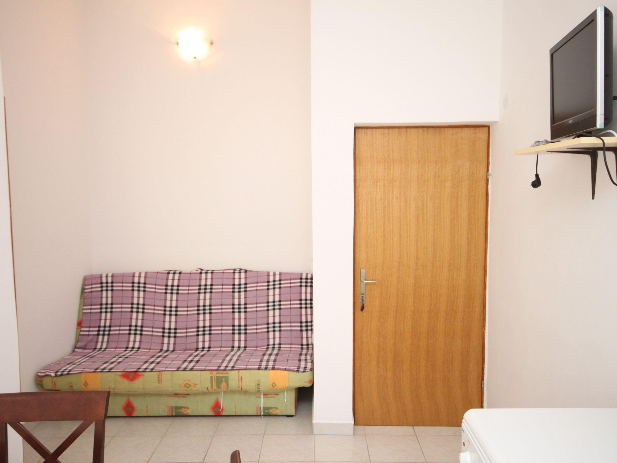 Ferienwohnung bietet Platz für 3 Gäste. Die Betten sind in Schlafzimmern, die es 1 gibt, und in Wohnzimmer, innerhalb einer Gesamtfläche von 27m2, angeordnet. Die Gäste haben eine eigene Terrasse zur Verfügung, auf der sie in warmen Sommernächten genießen können. Es ist erlaubt, Speisen auf dem Gemeinschafts-Grill vorzubereiten. IM PREIS INBEGRIFFEN: Kurtaxe, Endreinigung, Klimatisierung, Parkplatz, Internet, Wäschewaschen, Bootsanlegeplatz, Bügelbrett, Föhn. VERBINDLICHE ZUSÄTZLICHE KOSTEN: Aufzahlung für Kurzaufenthalte (prozentualer Zuschlag pro Nächtigungsanzahl: 30% - 1, 20% - 2, 10% - 3). Die Verfügbarkeit zusätzlicher Dienstleistungen in Ihrem reservierten Termin und die Preise derselben (falls nicht aufgeführt) müssen im Voraus überprüft werden. Zusätzliche Dienstleistungen die in der Zahlungsaufforderung nicht aufgeführt sind werden direkt beim Vermieter bezahlt, angenommen der Gast nutzt auch diese.