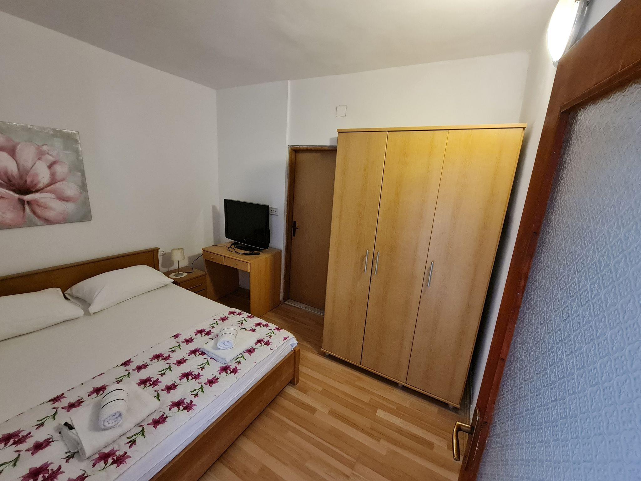 Ferienwohnung bietet Platz für 3 Gäste. Die Betten sind in Schlafzimmern, die es 1 gibt, innerhalb einer Gesamtfläche von 27m2, angeordnet. Die Gäste haben eine eigene Terrasse zur Verfügung, auf der sie in warmen Sommernächten genießen können. Es ist erlaubt, Speisen auf dem Gemeinschafts-Grill vorzubereiten. In der Unterkunftseinheit besteht die Möglichkeit des Mitbringens von Haustieren gegen Aufpreis. IM PREIS INBEGRIFFEN: Kurtaxe, Endreinigung, Klimatisierung, Parkplatz, Internet, Bootsanlegeplatz. VERBINDLICHE ZUSÄTZLICHE KOSTEN: Aufzahlung für Kurzaufenthalte (prozentualer Zuschlag pro Nächtigungsanzahl: 30% - 1, 20% - 2, 10% - 3). UNVERBINDLICHE ZUSÄTZLICHE KOSTEN: Wäschewaschen (5,00 € Waschen), Haustiere (5,00 € pro Nacht). Die Verfügbarkeit zusätzlicher Dienstleistungen in Ihrem reservierten Termin und die Preise derselben (falls nicht aufgeführt) müssen im Voraus überprüft werden. Zusätzliche Dienstleistungen die in der Zahlungsaufforderung nicht aufgeführt sind werden direkt beim Vermieter bezahlt, angenommen der Gast nutzt auch diese. Ermäßigung auf den Grundpreis: Gratistag 28=25 (bei einem Aufenthalt von 28 oder mehr Tagen erhalten Sie 3 kostenlose Tage für den Aufenthalt bis 31.12.26).