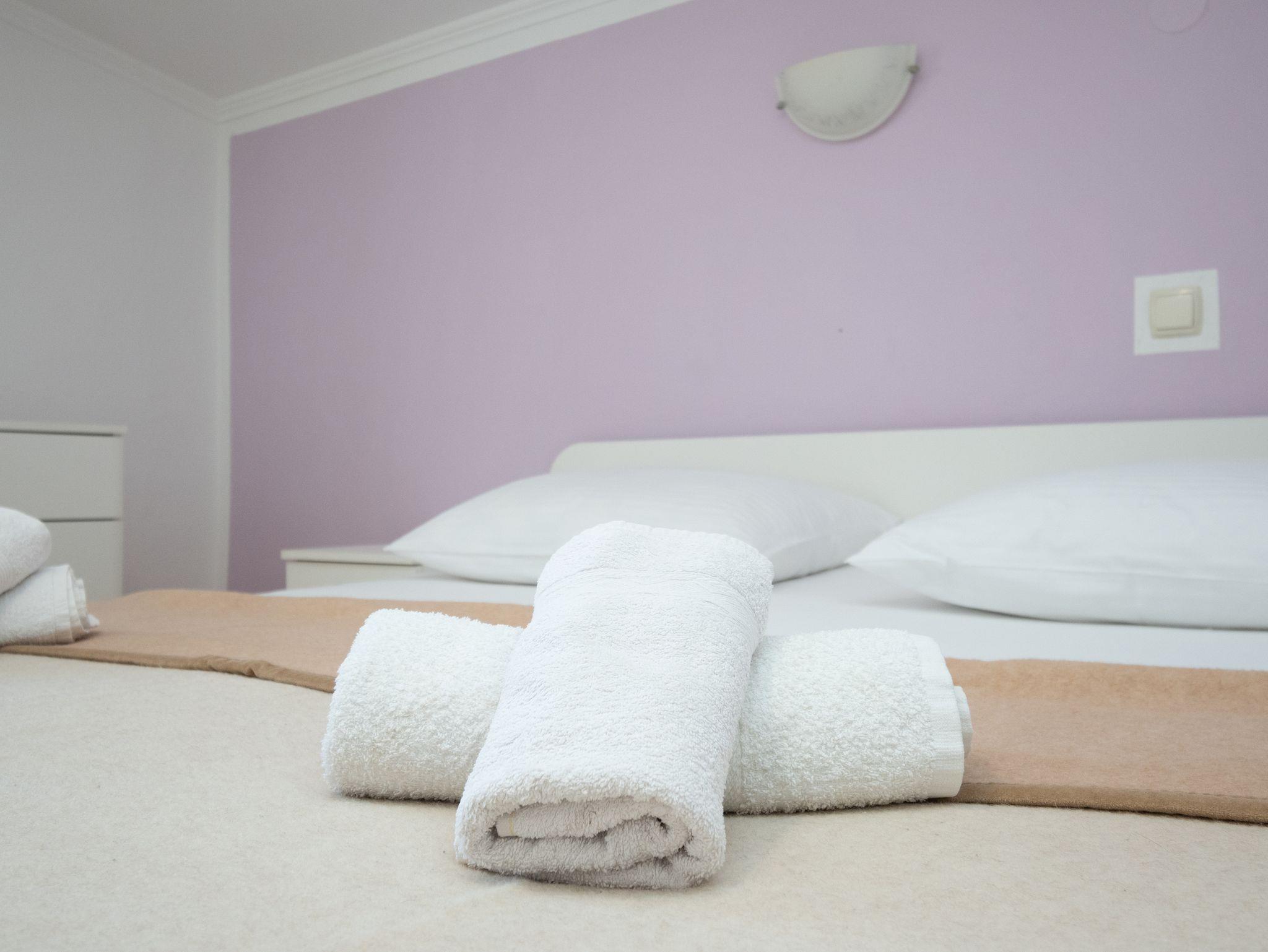 Ferienwohnung bietet Platz für 4 Gäste. Die Betten sind in Schlafzimmern, die es 2 gibt, innerhalb einer Gesamtfläche von 58m2, angeordnet. Die Gäste haben eine eigene Terrasse zur Verfügung, auf der sie in warmen Sommernächten genießen können. Das Apartment bietet Meerblick. IM PREIS INBEGRIFFEN: Kurtaxe, Endreinigung, Klimatisierung, Parkplatz, Internet. VERBINDLICHE ZUSÄTZLICHE KOSTEN: Aufzahlung für Kurzaufenthalte (prozentualer Zuschlag pro Nächtigungsanzahl: 30% - 1, 20% - 2, 10% - 3). Die Verfügbarkeit zusätzlicher Dienstleistungen in Ihrem reservierten Termin und die Preise derselben (falls nicht aufgeführt) müssen im Voraus überprüft werden. Zusätzliche Dienstleistungen die in der Zahlungsaufforderung nicht aufgeführt sind werden direkt beim Vermieter bezahlt, angenommen der Gast nutzt auch diese.