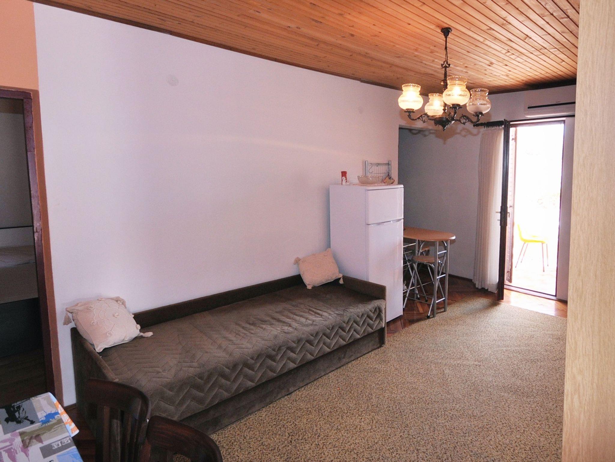 Ferienwohnung bietet Platz für 4 Gäste. Die Betten sind in Schlafzimmern, die es 1 gibt, und in Wohnzimmer, innerhalb einer Gesamtfläche von 44m2, angeordnet. Die Gäste haben eine eigene Terrasse zur Verfügung, auf der sie in warmen Sommernächten genießen können. Das Apartment bietet Meerblick. Es ist erlaubt, Speisen auf dem Gemeinschafts-Grill vorzubereiten. In der gebuchten Unterkunftseinheit zahlt man am Ort ein Depositum ( der Preis ist an der Internetseite angeführt ). IM PREIS INBEGRIFFEN: Kurtaxe, Endreinigung, Parkplatz, Internet, Kinderbett, Bügelbrett, Föhn. VERBINDLICHE ZUSÄTZLICHE KOSTEN: Kaution (100,00 € Einmalzahlung), Aufzahlung für Kurzaufenthalte (prozentualer Zuschlag pro Nächtigungsanzahl: 30% - 1, 20% - 2, 10% - 3). UNVERBINDLICHE ZUSÄTZLICHE KOSTEN: Klimatisierung (2,00 € pro Nacht), Bootsanlegeplatz (5,00 € pro Nacht). Die Verfügbarkeit zusätzlicher Dienstleistungen in Ihrem reservierten Termin und die Preise derselben (falls nicht aufgeführt) müssen im Voraus überprüft werden. Zusätzliche Dienstleistungen die in der Zahlungsaufforderung nicht aufgeführt sind werden direkt beim Vermieter bezahlt, angenommen der Gast nutzt auch diese.