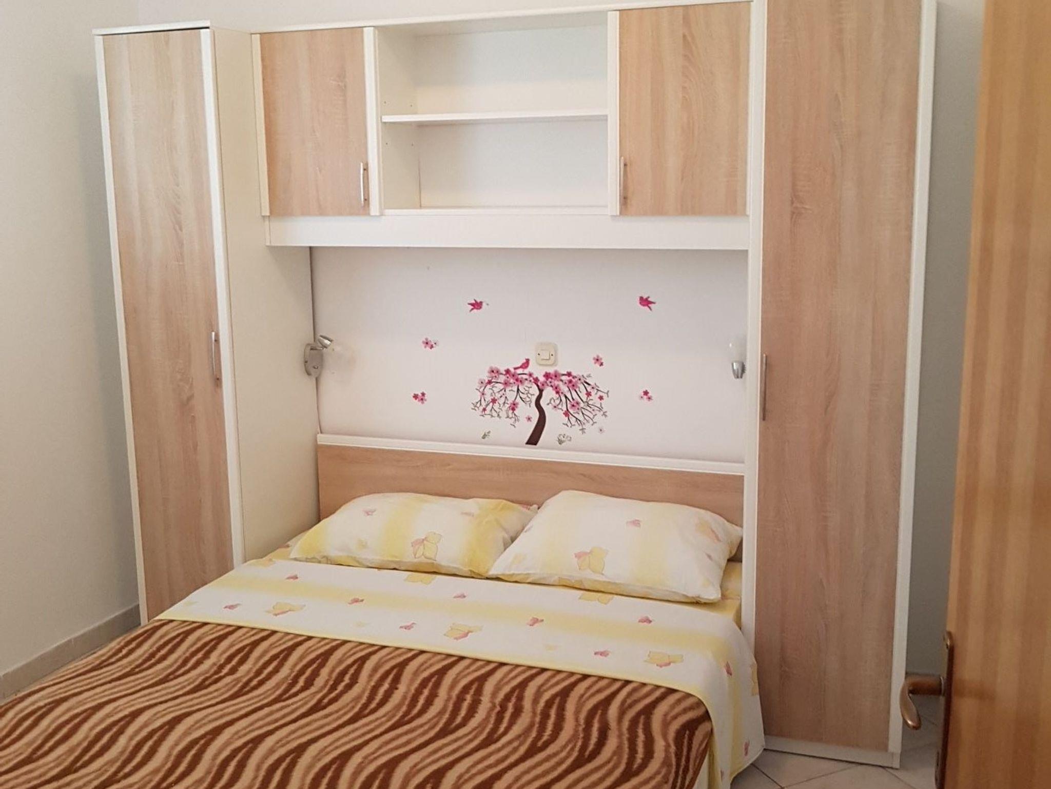Ferienwohnung bietet Platz für 4 Gäste. Die Betten sind in Schlafzimmern, die es 2 gibt, innerhalb einer Gesamtfläche von 56m2, angeordnet. Die Gäste haben eine eigene Terrasse zur Verfügung, auf der sie in warmen Sommernächten genießen können. Das Apartment bietet Meerblick. Es ist erlaubt, Speisen auf dem Gemeinschafts-Grill vorzubereiten. In der Unterkunftseinheit besteht die Möglichkeit des Mitbringens von Haustieren gegen Aufpreis. IM PREIS INBEGRIFFEN: Endreinigung, Klimatisierung, Parkplatz, Internet, Bootsanlegeplatz, Bügeleisen, Bügelbrett, Föhn, 2 Kinderbettchen (im Preis enthalten). VERBINDLICHE ZUSÄTZLICHE KOSTEN: Kurtaxe (Erwachsene 0,93 € - 1,60 € Nacht/Person, Kinderermäßigung 12 - 17 Jahre), Aufzahlung für Kurzaufenthalte (prozentualer Zuschlag pro Nächtigungsanzahl: 30% - 1, 20% - 2, 10% - 3). UNVERBINDLICHE ZUSÄTZLICHE KOSTEN: Wäschewaschen (5,00 € Waschen), Haustiere (5,00 € pro Nacht), Zusatzbett (5,00 € pro Nacht). Die Verfügbarkeit zusätzlicher Dienstleistungen in Ihrem reservierten Termin und die Preise derselben (falls nicht aufgeführt) müssen im Voraus überprüft werden. Zusätzliche Dienstleistungen die in der Zahlungsaufforderung nicht aufgeführt sind werden direkt beim Vermieter bezahlt, angenommen der Gast nutzt auch diese.