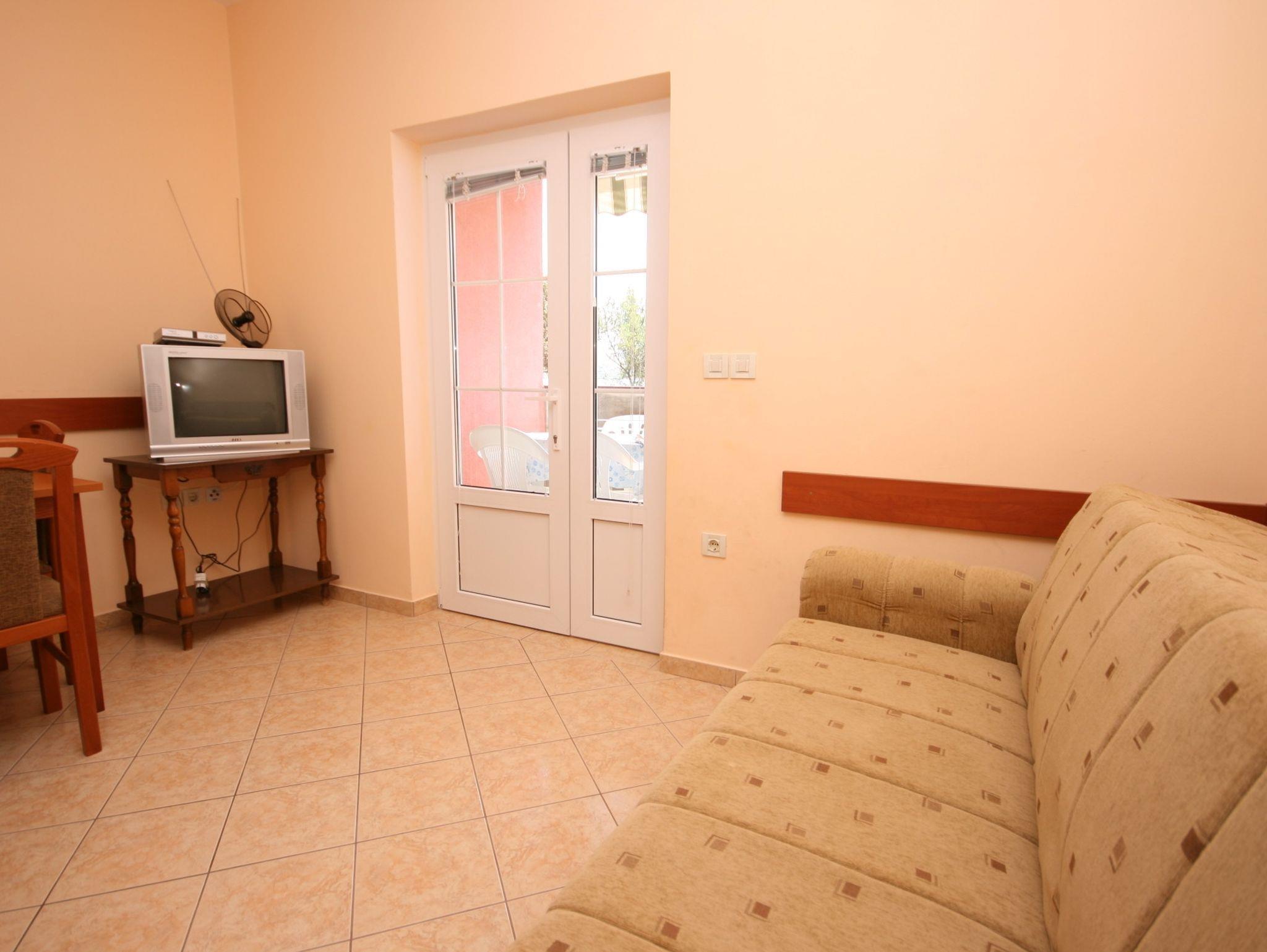 Ferienwohnung bietet Platz für 5 Gäste. Die Betten sind in Schlafzimmern, die es 1 gibt, und in Wohnzimmer, innerhalb einer Gesamtfläche von 34m2, angeordnet. Die Gäste haben eine eigene Terrasse zur Verfügung, auf der sie in warmen Sommernächten genießen können. Das Apartment bietet Meerblick. Es ist erlaubt, Speisen auf dem Gemeinschafts-Grill vorzubereiten. In der Unterkunftseinheit besteht die Möglichkeit des Mitbringens von Haustieren, und die Dienstleistung ist im Preis der Unterkunft enthalten. Durch die Terrasse der gebuchten Unterkunftseinheit gehen auch andere Gäste oder Vermieter. IM PREIS INBEGRIFFEN: Kurtaxe, Endreinigung, Parkplatz, Internet, Bootsanlegeplatz, Haustiere. VERBINDLICHE ZUSÄTZLICHE KOSTEN: Aufzahlung für Kurzaufenthalte (prozentualer Zuschlag pro Nächtigungsanzahl: 30% - 1, 20% - 2, 10% - 3). UNVERBINDLICHE ZUSÄTZLICHE KOSTEN: Klimatisierung (5,00 € pro Nacht). Die Verfügbarkeit zusätzlicher Dienstleistungen in Ihrem reservierten Termin und die Preise derselben (falls nicht aufgeführt) müssen im Voraus überprüft werden. Zusätzliche Dienstleistungen die in der Zahlungsaufforderung nicht aufgeführt sind werden direkt beim Vermieter bezahlt, angenommen der Gast nutzt auch diese. Ermäßigung auf den Grundpreis: Gratistag 14=13 (bei einem Aufenthalt von 14 Tagen oder mehr erhalten Sie einen Gratistag für den Aufenthalt bis 31.12.26).