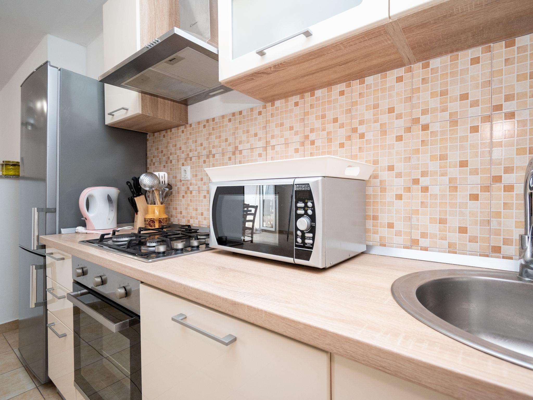 Ferienwohnung bietet Platz für 5 Gäste. Die Betten sind in Schlafzimmern, die es 2 gibt, innerhalb einer Gesamtfläche von 67m2, angeordnet. Die Gäste haben eine eigene Terrasse zur Verfügung, auf der sie in warmen Sommernächten genießen können. Das Apartment bietet Meerblick. Es ist erlaubt, Speisen auf dem Gemeinschafts-Grill vorzubereiten. Während ihres Aufenthalts können Gäste das gemeinsam zur Nutzung stehende Schwimmbad benutzen. In der Unterkunftseinheit besteht die Möglichkeit des Mitbringens von Haustieren, und die Dienstleistung ist im Preis der Unterkunft enthalten. In der gebuchten Unterkunftseinheit zahlt man am Ort ein Depositum ( der Preis ist an der Internetseite angeführt ). IM PREIS INBEGRIFFEN: Kurtaxe, Endreinigung, Klimatisierung, Pool, Parkplatz, Internet, Wäschewaschen, Haustiere, Fahrrad, Kinderbett, Bügeleisen, Bügelbrett, Föhn. VERBINDLICHE ZUSÄTZLICHE KOSTEN: Kaution (200,00 € Einmalzahlung), Aufzahlung für Kurzaufenthalte (prozentualer Zuschlag pro Nächtigungsanzahl: 30% - 1, 20% - 2, 10% - 3). Die Verfügbarkeit zusätzlicher Dienstleistungen in Ihrem reservierten Termin und die Preise derselben (falls nicht aufgeführt) müssen im Voraus überprüft werden. Zusätzliche Dienstleistungen die in der Zahlungsaufforderung nicht aufgeführt sind werden direkt beim Vermieter bezahlt, angenommen der Gast nutzt auch diese. Ermäßigung auf den Grundpreis: Gratistag 21=19 (bei einem Aufenthalt von 21 Tagen oder mehr erhalten Sie 2 Gratistage für den Aufenthalt bis 31.12.26).