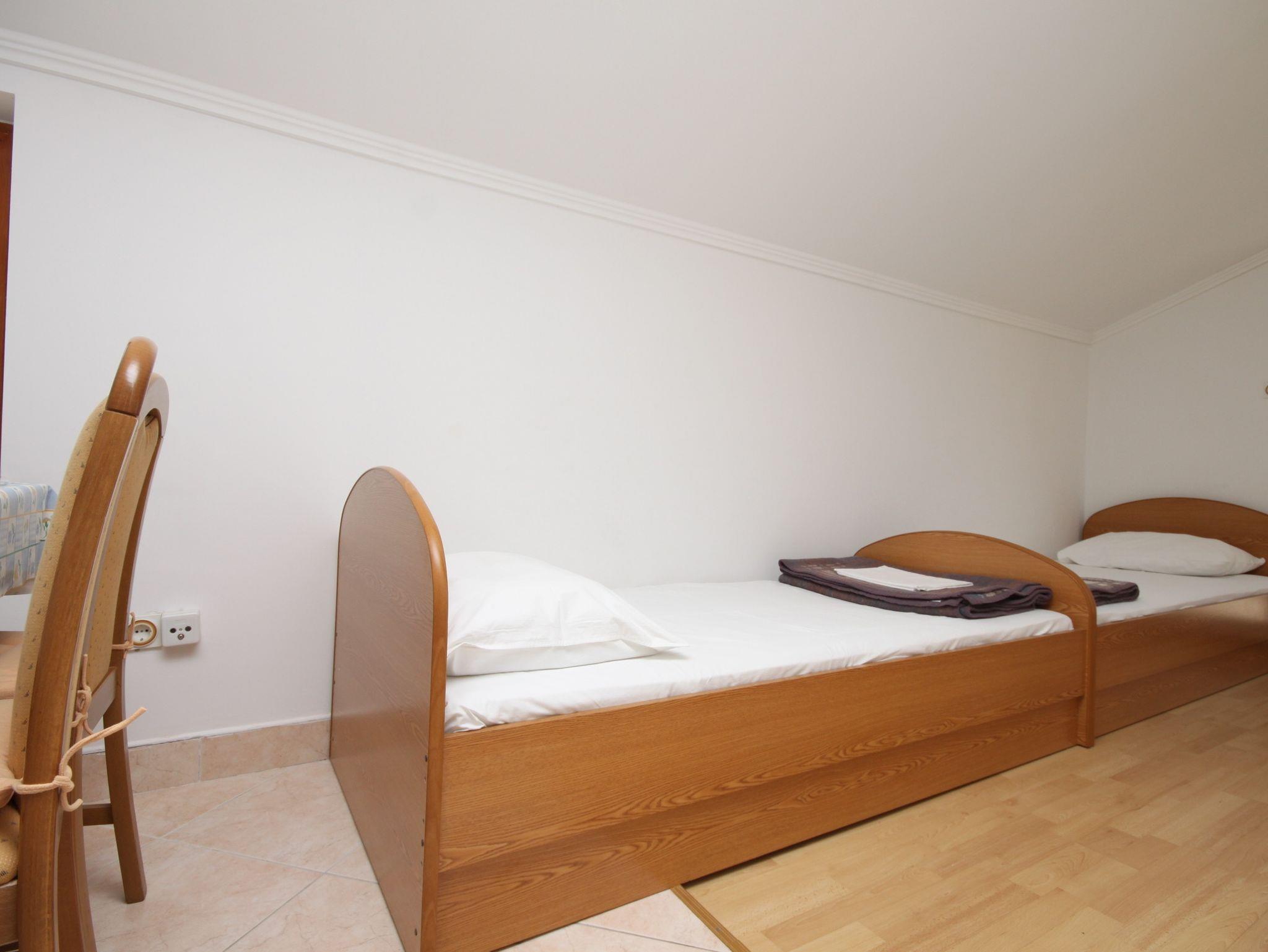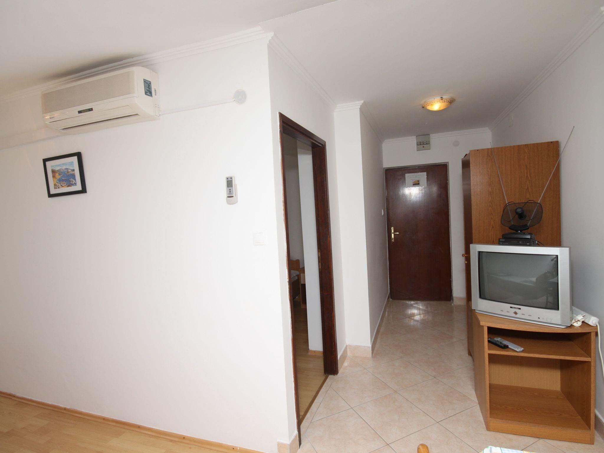 Ferienwohnung bietet Platz für 4 Gäste. Die Betten sind in Schlafzimmern, die es 1 gibt, und in Wohnzimmer, innerhalb einer Gesamtfläche von 38m2, angeordnet. Die Gäste haben eine eigene Terrasse zur Verfügung, auf der sie in warmen Sommernächten genießen können. Das Apartment bietet Meerblick. Es ist erlaubt, Speisen auf dem Gemeinschafts-Grill vorzubereiten. IM PREIS INBEGRIFFEN: Kurtaxe, Endreinigung, Klimatisierung, Parkplatz, Internet, Bootsanlegeplatz. VERBINDLICHE ZUSÄTZLICHE KOSTEN: Aufzahlung für Kurzaufenthalte (prozentualer Zuschlag pro Nächtigungsanzahl: 30% - 1, 20% - 2, 10% - 3). Die Verfügbarkeit zusätzlicher Dienstleistungen in Ihrem reservierten Termin und die Preise derselben (falls nicht aufgeführt) müssen im Voraus überprüft werden. Zusätzliche Dienstleistungen die in der Zahlungsaufforderung nicht aufgeführt sind werden direkt beim Vermieter bezahlt, angenommen der Gast nutzt auch diese. Ermäßigung auf den Grundpreis: Gratistag 14=13 (bei einem Aufenthalt von 14 Tagen oder mehr erhalten Sie einen Gratistag für den Aufenthalt bis 31.12.26).