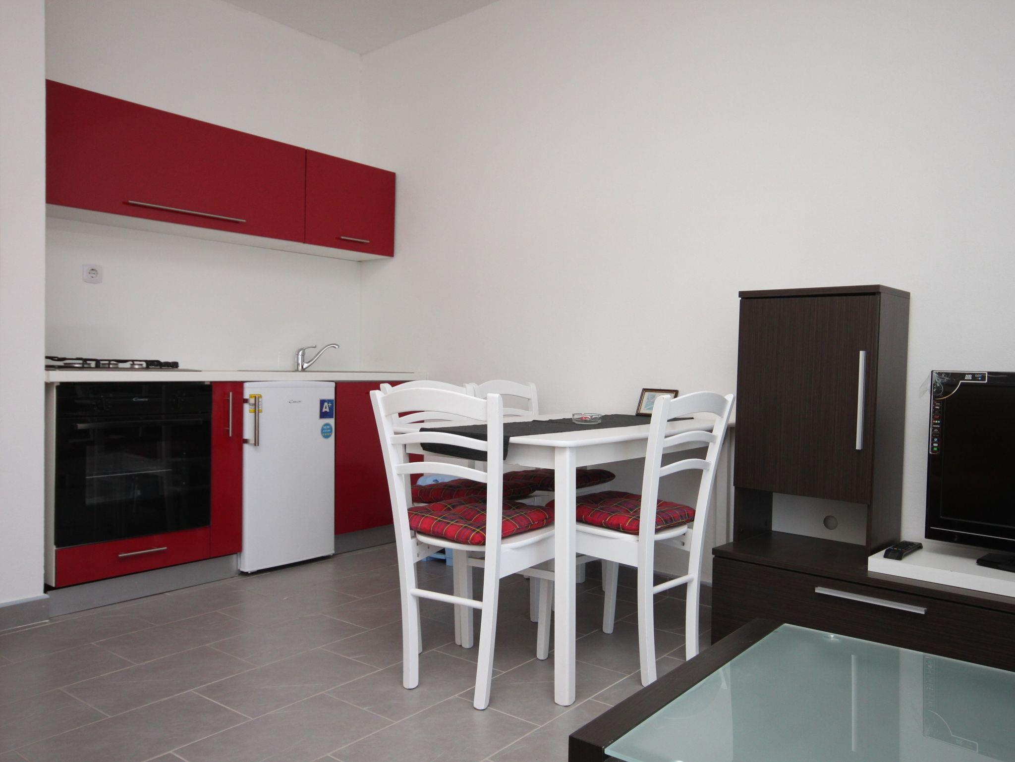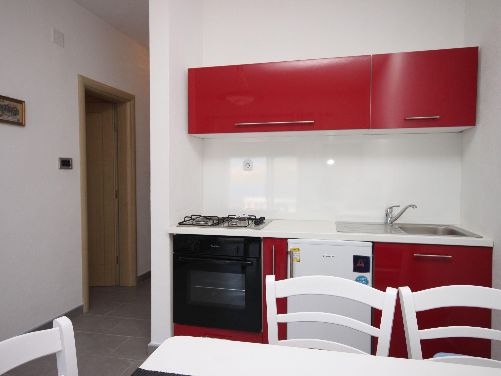 Ferienwohnung bietet Platz für 5 Gäste. Die Betten sind in Schlafzimmern, die es 2 gibt, und in Wohnzimmer, innerhalb einer Gesamtfläche von 41m2, angeordnet. Die Gäste haben eine eigene Terrasse zur Verfügung, auf der sie in warmen Sommernächten genießen können. Das Apartment bietet Meerblick. Es ist erlaubt, Speisen auf dem Gemeinschafts-Grill vorzubereiten. In der Unterkunftseinheit besteht die Möglichkeit des Mitbringens von Haustieren gegen Aufpreis. IM PREIS INBEGRIFFEN: Kurtaxe, Endreinigung, Klimatisierung, Parkplatz, Internet. VERBINDLICHE ZUSÄTZLICHE KOSTEN: Aufzahlung für Kurzaufenthalte (prozentualer Zuschlag pro Nächtigungsanzahl: 30% - 1, 20% - 2, 10% - 3). UNVERBINDLICHE ZUSÄTZLICHE KOSTEN: Wäschewaschen (10,00 € Waschen), Haustiere (5,00 € pro Nacht). Die Verfügbarkeit zusätzlicher Dienstleistungen in Ihrem reservierten Termin und die Preise derselben (falls nicht aufgeführt) müssen im Voraus überprüft werden. Zusätzliche Dienstleistungen die in der Zahlungsaufforderung nicht aufgeführt sind werden direkt beim Vermieter bezahlt, angenommen der Gast nutzt auch diese. Ermäßigung auf den Grundpreis: Gratistag 21=19 (bei einem Aufenthalt von 21 Tagen oder mehr erhalten Sie 2 Gratistage für den Aufenthalt bis 31.12.26).