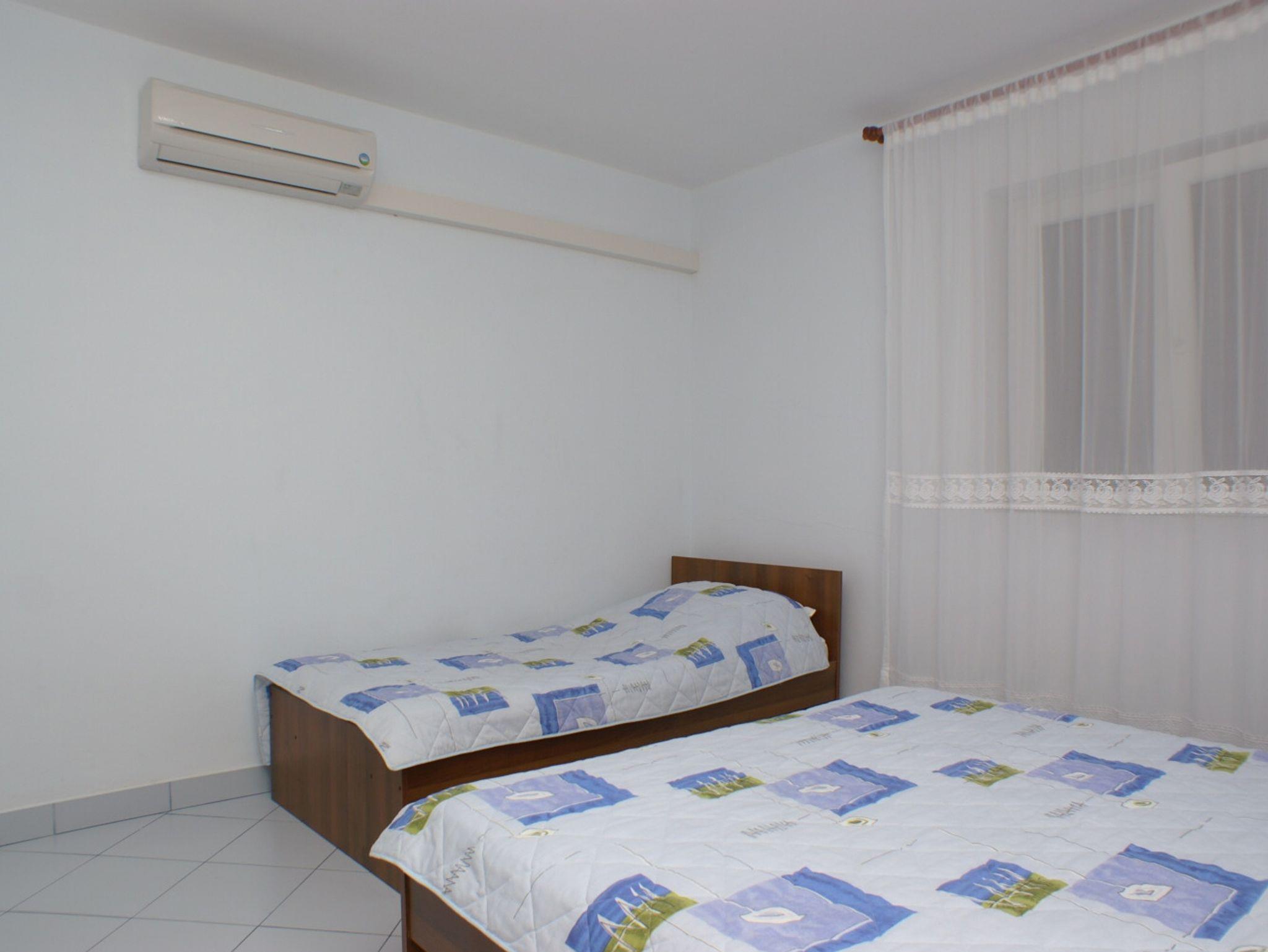 Ferienwohnung bietet Platz für 5 Gäste. Die Betten sind in Schlafzimmern, die es 1 gibt, und in Wohnzimmer, innerhalb einer Gesamtfläche von 44m2, angeordnet. Die Gäste haben eine eigene Terrasse zur Verfügung, auf der sie in warmen Sommernächten genießen können. Das Apartment bietet Meerblick. Es ist erlaubt, Speisen auf dem Gemeinschafts-Grill vorzubereiten. In der Unterkunftseinheit besteht die Möglichkeit des Mitbringens von Haustieren gegen Aufpreis. IM PREIS INBEGRIFFEN: Kurtaxe, Endreinigung, Parkplatz, Internet. VERBINDLICHE ZUSÄTZLICHE KOSTEN: Aufzahlung für Kurzaufenthalte (prozentualer Zuschlag pro Nächtigungsanzahl: 30% - 1, 20% - 2, 10% - 3). UNVERBINDLICHE ZUSÄTZLICHE KOSTEN: Klimatisierung (7,00 € pro Nacht), Bootsanlegeplatz (5,00 € pro Nacht), Haustiere (5,00 € pro Nacht), Zusatzbett (16,00 € pro Nacht). Die Verfügbarkeit zusätzlicher Dienstleistungen in Ihrem reservierten Termin und die Preise derselben (falls nicht aufgeführt) müssen im Voraus überprüft werden. Zusätzliche Dienstleistungen die in der Zahlungsaufforderung nicht aufgeführt sind werden direkt beim Vermieter bezahlt, angenommen der Gast nutzt auch diese.