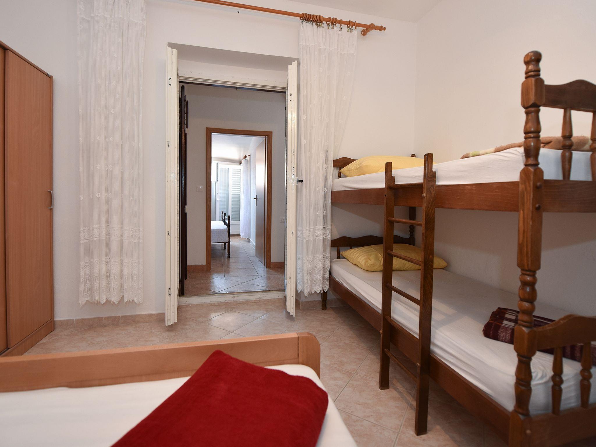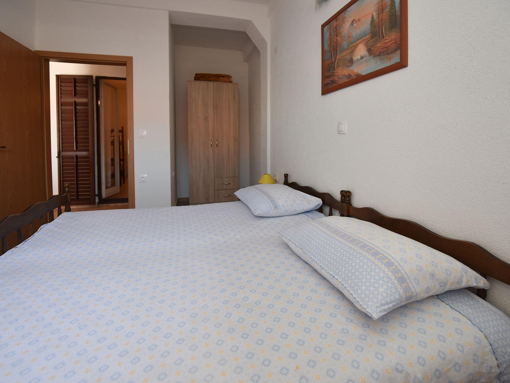 Ferienwohnung bietet Platz für 6 Gäste. Die Betten sind in Schlafzimmern, die es 2 gibt, innerhalb einer Gesamtfläche von 38m2, angeordnet. Das Apartment bietet Meerblick. Es ist erlaubt, Speisen auf dem Gemeinschafts-Grill vorzubereiten. Die reservierte Unterkunftseinheit verfügt über einen gemeinsame Terrasse. IM PREIS INBEGRIFFEN: Kurtaxe, Endreinigung, Parkplatz, Internet, Bootsanlegeplatz. VERBINDLICHE ZUSÄTZLICHE KOSTEN: Aufzahlung für Kurzaufenthalte (prozentualer Zuschlag pro Nächtigungsanzahl: 30% - 1, 20% - 2, 10% - 3). UNVERBINDLICHE ZUSÄTZLICHE KOSTEN: Klimatisierung (5,00 € pro Nacht). Die Verfügbarkeit zusätzlicher Dienstleistungen in Ihrem reservierten Termin und die Preise derselben (falls nicht aufgeführt) müssen im Voraus überprüft werden. Zusätzliche Dienstleistungen die in der Zahlungsaufforderung nicht aufgeführt sind werden direkt beim Vermieter bezahlt, angenommen der Gast nutzt auch diese. Ermäßigung auf den Grundpreis: Gratistag 14=13 (bei einem Aufenthalt von 14 Tagen oder mehr erhalten Sie einen Gratistag für den Aufenthalt bis 31.12.26).