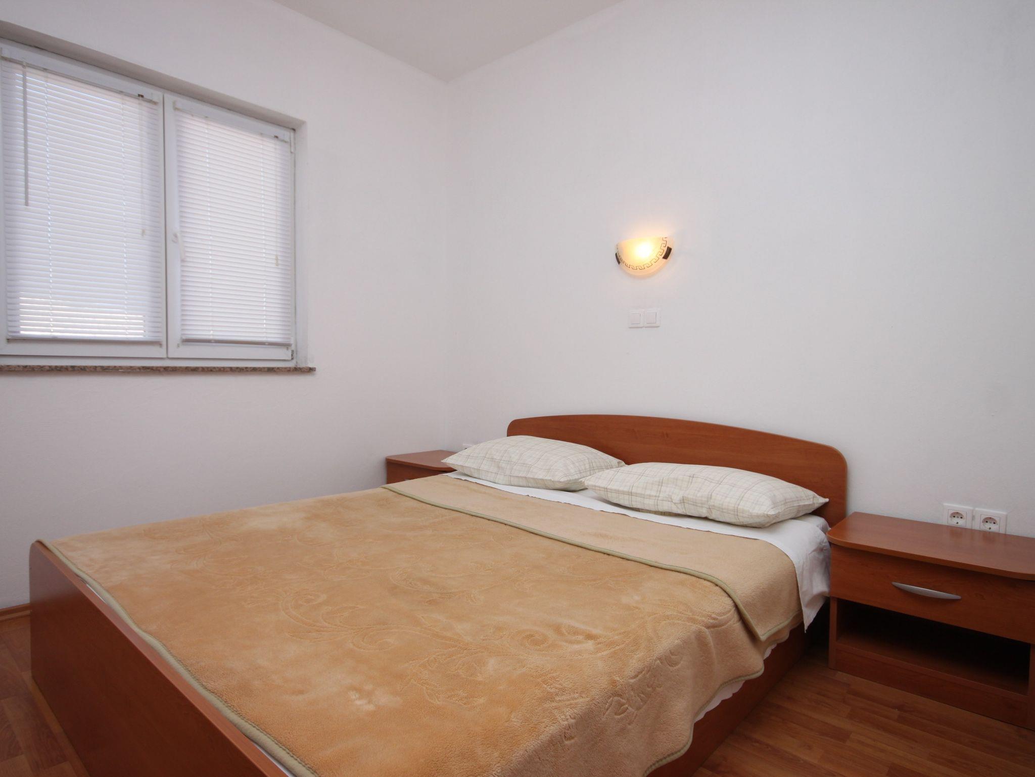 Ferienwohnung bietet Platz für 5 Gäste. Die Betten sind in Schlafzimmern, die es 2 gibt, und in Esszimmer, innerhalb einer Gesamtfläche von 57m2, angeordnet. Die Gäste haben eine eigene Terrasse zur Verfügung, auf der sie in warmen Sommernächten genießen können. Das Apartment bietet Meerblick. Es ist erlaubt, Speisen auf dem Gemeinschafts-Grill vorzubereiten. In der Unterkunftseinheit besteht die Möglichkeit des Mitbringens von Haustieren gegen Aufpreis. IM PREIS INBEGRIFFEN: Kurtaxe, Endreinigung, Parkplatz, Bootsanlegeplatz, Kinderbett, Bügeleisen, Bügelbrett. VERBINDLICHE ZUSÄTZLICHE KOSTEN: Aufzahlung für Kurzaufenthalte (prozentualer Zuschlag pro Nächtigungsanzahl: 30% - 1, 20% - 2, 10% - 3). UNVERBINDLICHE ZUSÄTZLICHE KOSTEN: Klimatisierung (5,00 € pro Nacht), Haustiere (5,00 € pro Nacht), Zusatzbett (10,00 € pro Nacht). Die Verfügbarkeit zusätzlicher Dienstleistungen in Ihrem reservierten Termin und die Preise derselben (falls nicht aufgeführt) müssen im Voraus überprüft werden. Zusätzliche Dienstleistungen die in der Zahlungsaufforderung nicht aufgeführt sind werden direkt beim Vermieter bezahlt, angenommen der Gast nutzt auch diese.