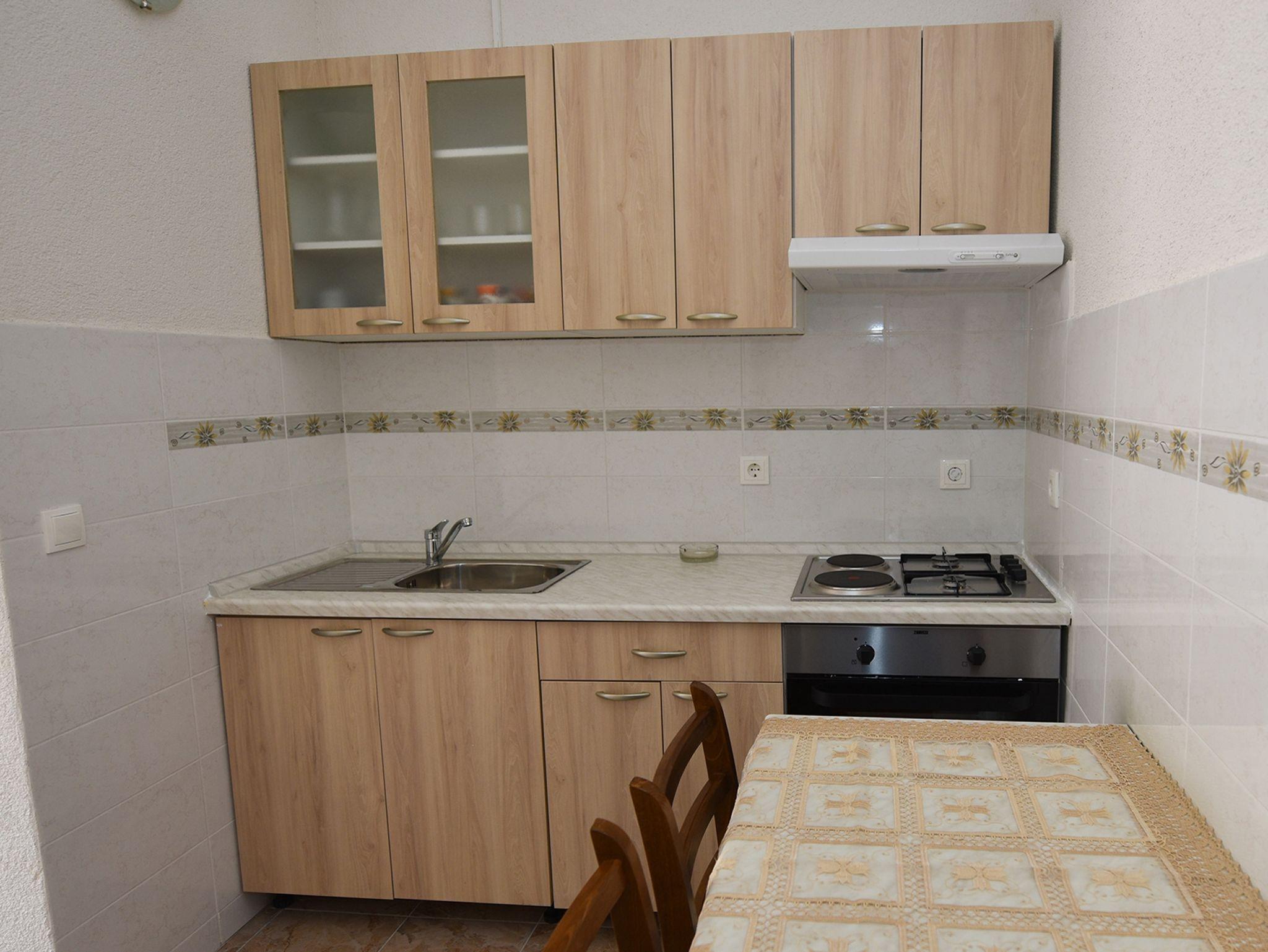 Ferienwohnung bietet Platz für 4 Gäste. Die Betten sind in Schlafzimmern, die es 1 gibt, innerhalb einer Gesamtfläche von 22m2, angeordnet. Die Gäste haben eine eigene Terrasse zur Verfügung, auf der sie in warmen Sommernächten genießen können. Das Apartment bietet Meerblick. Es ist erlaubt, Speisen auf dem Gemeinschafts-Grill vorzubereiten. IM PREIS INBEGRIFFEN: Kurtaxe, Endreinigung, Parkplatz, Internet, Bootsanlegeplatz. VERBINDLICHE ZUSÄTZLICHE KOSTEN: Aufzahlung für Kurzaufenthalte (prozentualer Zuschlag pro Nächtigungsanzahl: 30% - 1, 20% - 2, 10% - 3). UNVERBINDLICHE ZUSÄTZLICHE KOSTEN: Klimatisierung (5,00 € pro Nacht). Die Verfügbarkeit zusätzlicher Dienstleistungen in Ihrem reservierten Termin und die Preise derselben (falls nicht aufgeführt) müssen im Voraus überprüft werden. Zusätzliche Dienstleistungen die in der Zahlungsaufforderung nicht aufgeführt sind werden direkt beim Vermieter bezahlt, angenommen der Gast nutzt auch diese. Ermäßigung auf den Grundpreis: Gratistag 14=13 (bei einem Aufenthalt von 14 Tagen oder mehr erhalten Sie einen Gratistag für den Aufenthalt bis 31.12.26).