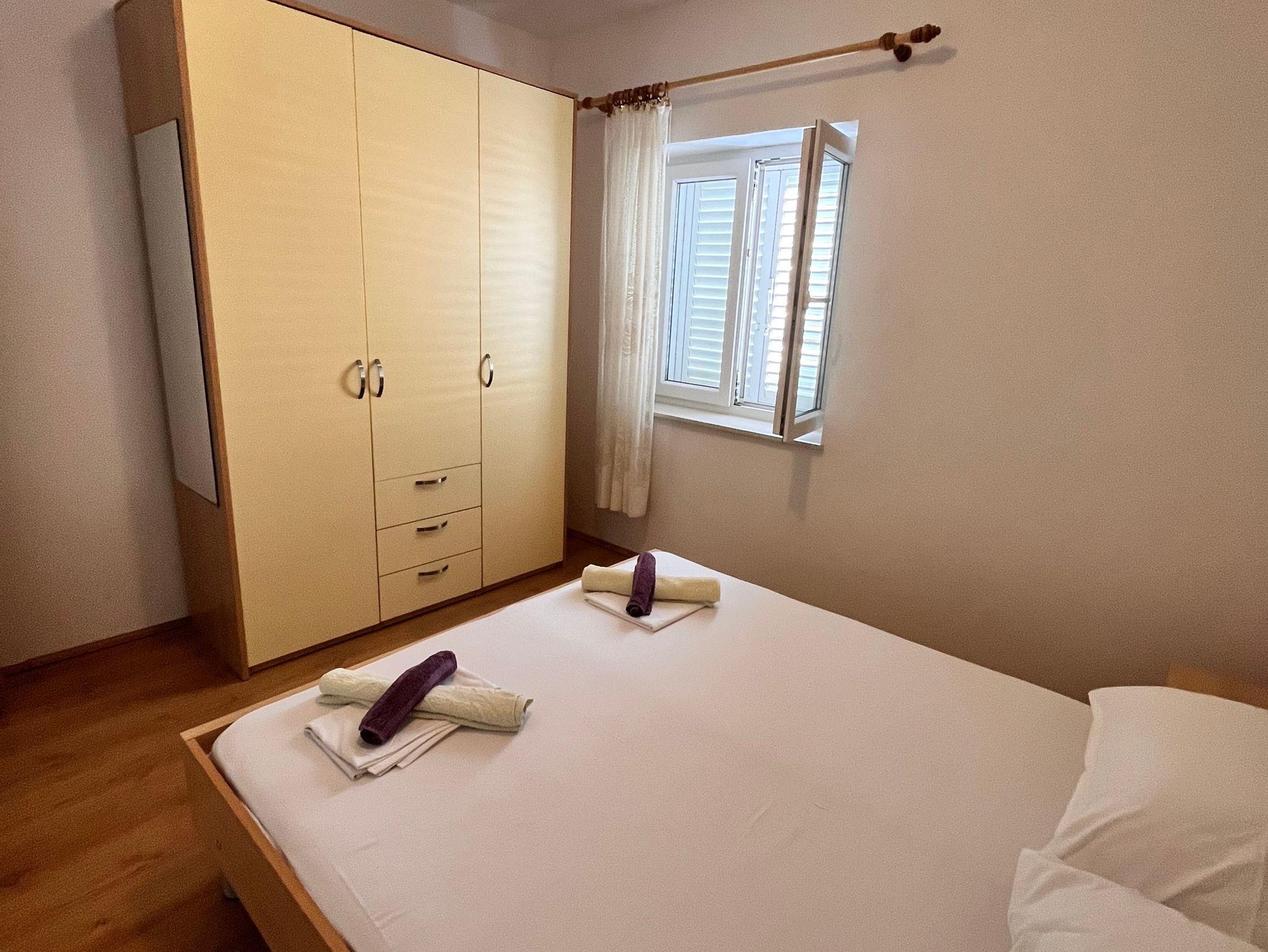 Ferienwohnung bietet Platz für 4 Gäste. Die Betten sind in Schlafzimmern, die es 1 gibt, und in Esszimmer, innerhalb einer Gesamtfläche von 36m2, angeordnet. Die Gäste haben eine eigene Terrasse zur Verfügung, auf der sie in warmen Sommernächten genießen können. Das Apartment bietet Meerblick. IM PREIS INBEGRIFFEN: Kurtaxe, Endreinigung, Klimatisierung, Parkplatz, Internet, Bootsanlegeplatz. Die Verfügbarkeit zusätzlicher Dienstleistungen in Ihrem reservierten Termin und die Preise derselben (falls nicht aufgeführt) müssen im Voraus überprüft werden. Zusätzliche Dienstleistungen die in der Zahlungsaufforderung nicht aufgeführt sind werden direkt beim Vermieter bezahlt, angenommen der Gast nutzt auch diese.