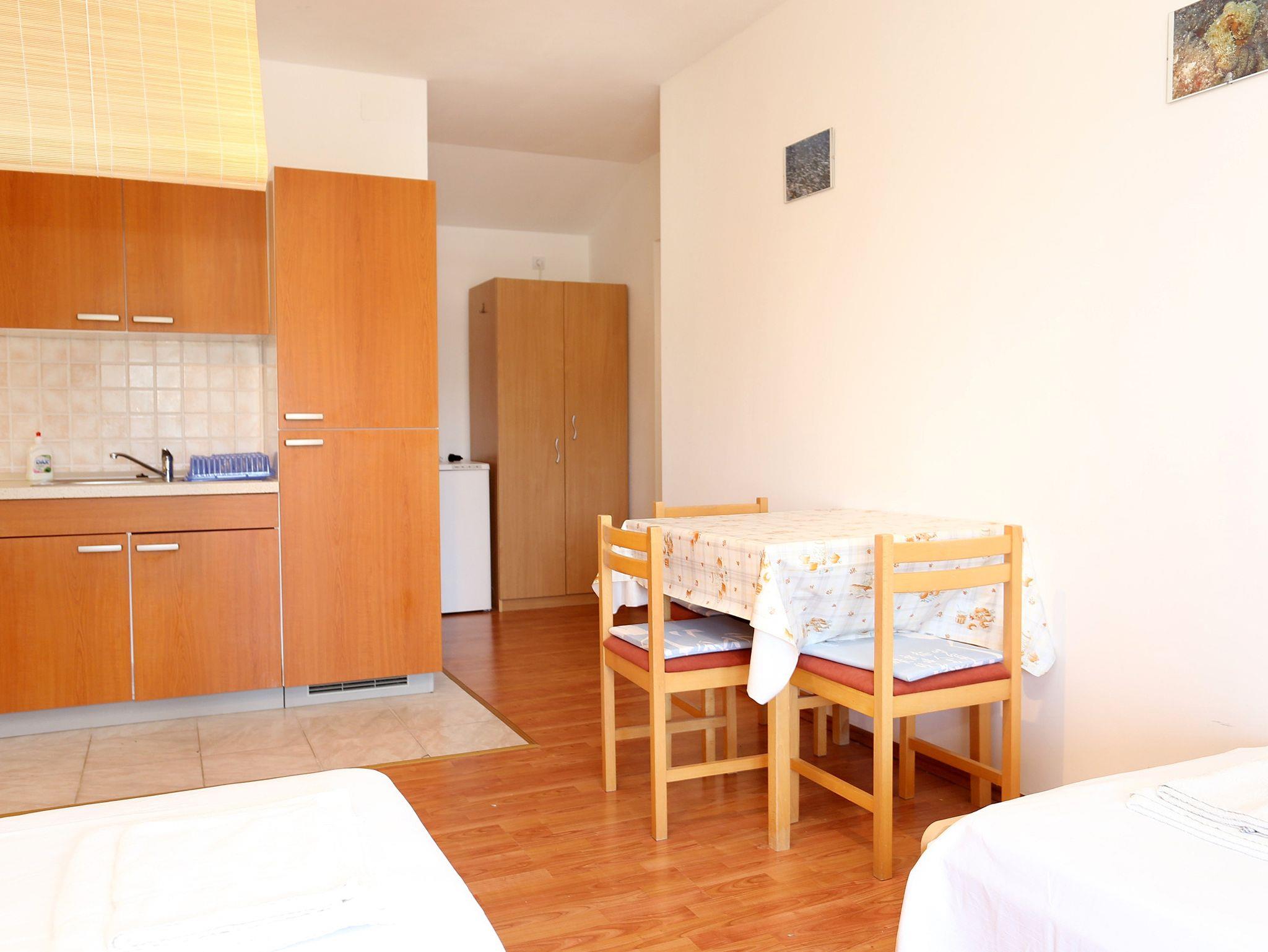 Studio bietet Platz für 3 Gäste. Die Betten sind in Schlafzimmern, die es 1 gibt, innerhalb einer Gesamtfläche von 29m2, angeordnet. Die Gäste haben eine eigene Terrasse zur Verfügung, auf der sie in warmen Sommernächten genießen können. Das Studio-Apartment bietet Meerblick. Es ist erlaubt, Speisen auf dem Gemeinschafts-Grill vorzubereiten. IM PREIS INBEGRIFFEN: Kurtaxe, Endreinigung, Klimatisierung, Parkplatz, Internet, Bügeleisen, Bügelbrett, Föhn. VERBINDLICHE ZUSÄTZLICHE KOSTEN: Aufzahlung für Kurzaufenthalte (prozentualer Zuschlag pro Nächtigungsanzahl: 30% - 1, 20% - 2, 10% - 3). Die Verfügbarkeit zusätzlicher Dienstleistungen in Ihrem reservierten Termin und die Preise derselben (falls nicht aufgeführt) müssen im Voraus überprüft werden. Zusätzliche Dienstleistungen die in der Zahlungsaufforderung nicht aufgeführt sind werden direkt beim Vermieter bezahlt, angenommen der Gast nutzt auch diese.