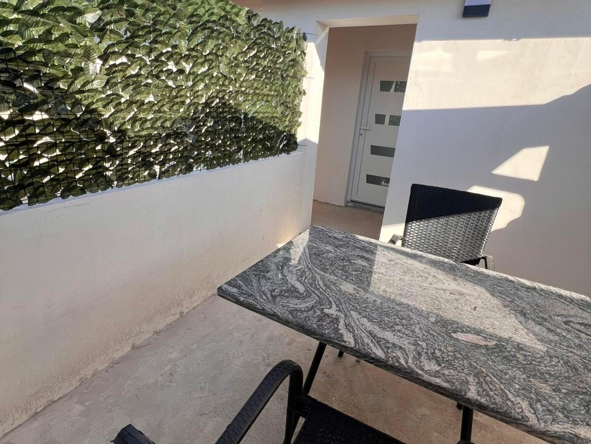 Studio bietet Platz für 2 Gäste. Die Betten sind in Schlafzimmern, die es 1 gibt, innerhalb einer Gesamtfläche von 16m2, angeordnet. Die Gäste haben eine eigene Terrasse zur Verfügung, auf der sie in warmen Sommernächten genießen können. Es ist erlaubt, Speisen auf dem Gemeinschafts-Grill vorzubereiten. Räume der gebuchten Unterkunftseinheit werden nicht in eine Ganze verbunden. IM PREIS INBEGRIFFEN: Kurtaxe, Endreinigung, Klimatisierung, Parkplatz, Internet, Wäschewaschen. VERBINDLICHE ZUSÄTZLICHE KOSTEN: Aufzahlung für Kurzaufenthalte (prozentualer Zuschlag pro Nächtigungsanzahl: 30% - 1, 20% - 2, 10% - 3). Die Verfügbarkeit zusätzlicher Dienstleistungen in Ihrem reservierten Termin und die Preise derselben (falls nicht aufgeführt) müssen im Voraus überprüft werden. Zusätzliche Dienstleistungen die in der Zahlungsaufforderung nicht aufgeführt sind werden direkt beim Vermieter bezahlt, angenommen der Gast nutzt auch diese.