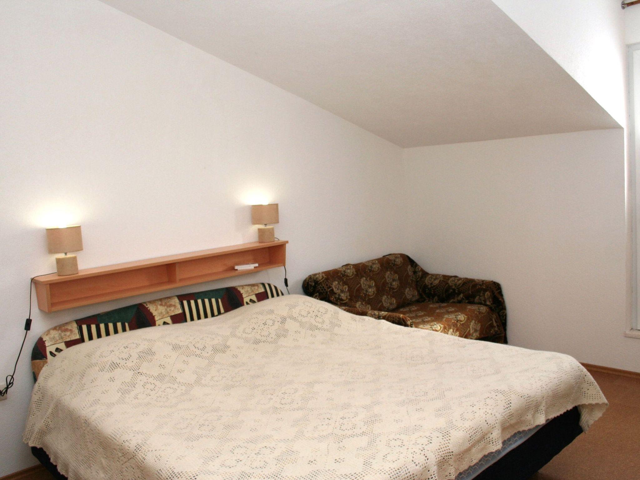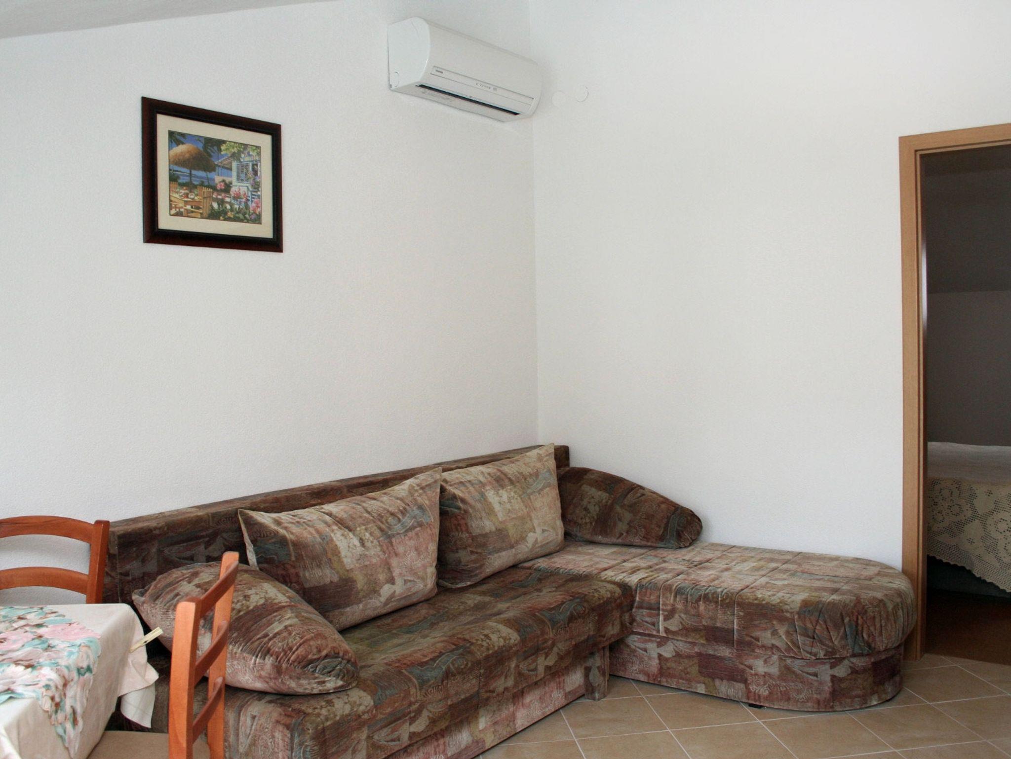 Ferienwohnung bietet Platz für 4 Gäste. Die Betten sind in Schlafzimmern, die es 1 gibt, und in Wohnzimmer, innerhalb einer Gesamtfläche von 32m2, angeordnet. Die Gäste haben einen eigenen Balkon zur Verfügung, auf der sie in warmen Sommernächten genießen können. Das Apartment bietet Meerblick. Es ist erlaubt, Speisen auf dem Gemeinschafts-Grill vorzubereiten. IM PREIS INBEGRIFFEN: Kurtaxe, Endreinigung, Klimatisierung, Parkplatz, Internet, Kinderbett, Föhn, tragbarer Grill. VERBINDLICHE ZUSÄTZLICHE KOSTEN: Aufzahlung für Kurzaufenthalte (prozentualer Zuschlag pro Nächtigungsanzahl: 30% - 1, 20% - 2, 10% - 3). UNVERBINDLICHE ZUSÄTZLICHE KOSTEN: Wäschewaschen (5,00 € Waschen), Boot (50,00 € pro Nacht), Fahrrad (20,00 € täglich (pro Stück)). Die Verfügbarkeit zusätzlicher Dienstleistungen in Ihrem reservierten Termin und die Preise derselben (falls nicht aufgeführt) müssen im Voraus überprüft werden. Zusätzliche Dienstleistungen die in der Zahlungsaufforderung nicht aufgeführt sind werden direkt beim Vermieter bezahlt, angenommen der Gast nutzt auch diese.