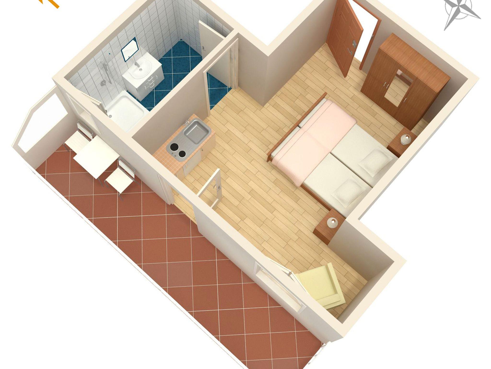 Studio bietet Platz für 2 Gäste. Die Betten sind in Schlafzimmern, die es 1 gibt, innerhalb einer Gesamtfläche von 22m2, angeordnet. Die Gäste haben einen eigenen Balkon zur Verfügung, auf der sie in warmen Sommernächten genießen können. Das Studio-Apartment bietet Meerblick. Es ist erlaubt, Speisen auf dem Gemeinschafts-Grill vorzubereiten. In der Unterkunftseinheit besteht die Möglichkeit des Mitbringens von Haustieren gegen Aufpreis. IM PREIS INBEGRIFFEN: Kurtaxe, Endreinigung, Klimatisierung, Parkplatz, Internet, Kinderbett, Bügeleisen, Bügelbrett, Föhn, tragbarer Grill. VERBINDLICHE ZUSÄTZLICHE KOSTEN: Aufzahlung für Kurzaufenthalte (prozentualer Zuschlag pro Nächtigungsanzahl: 30% - 1, 20% - 2, 10% - 3). UNVERBINDLICHE ZUSÄTZLICHE KOSTEN: Wäschewaschen (5,00 € Waschen), Bootsanlegeplatz (3,00 € pro Nacht), Haustiere (10,00 € pro Nacht), 1 Bett für Kinder (6,00 € Person/Tag). Die Verfügbarkeit zusätzlicher Dienstleistungen in Ihrem reservierten Termin und die Preise derselben (falls nicht aufgeführt) müssen im Voraus überprüft werden. Zusätzliche Dienstleistungen die in der Zahlungsaufforderung nicht aufgeführt sind werden direkt beim Vermieter bezahlt, angenommen der Gast nutzt auch diese.