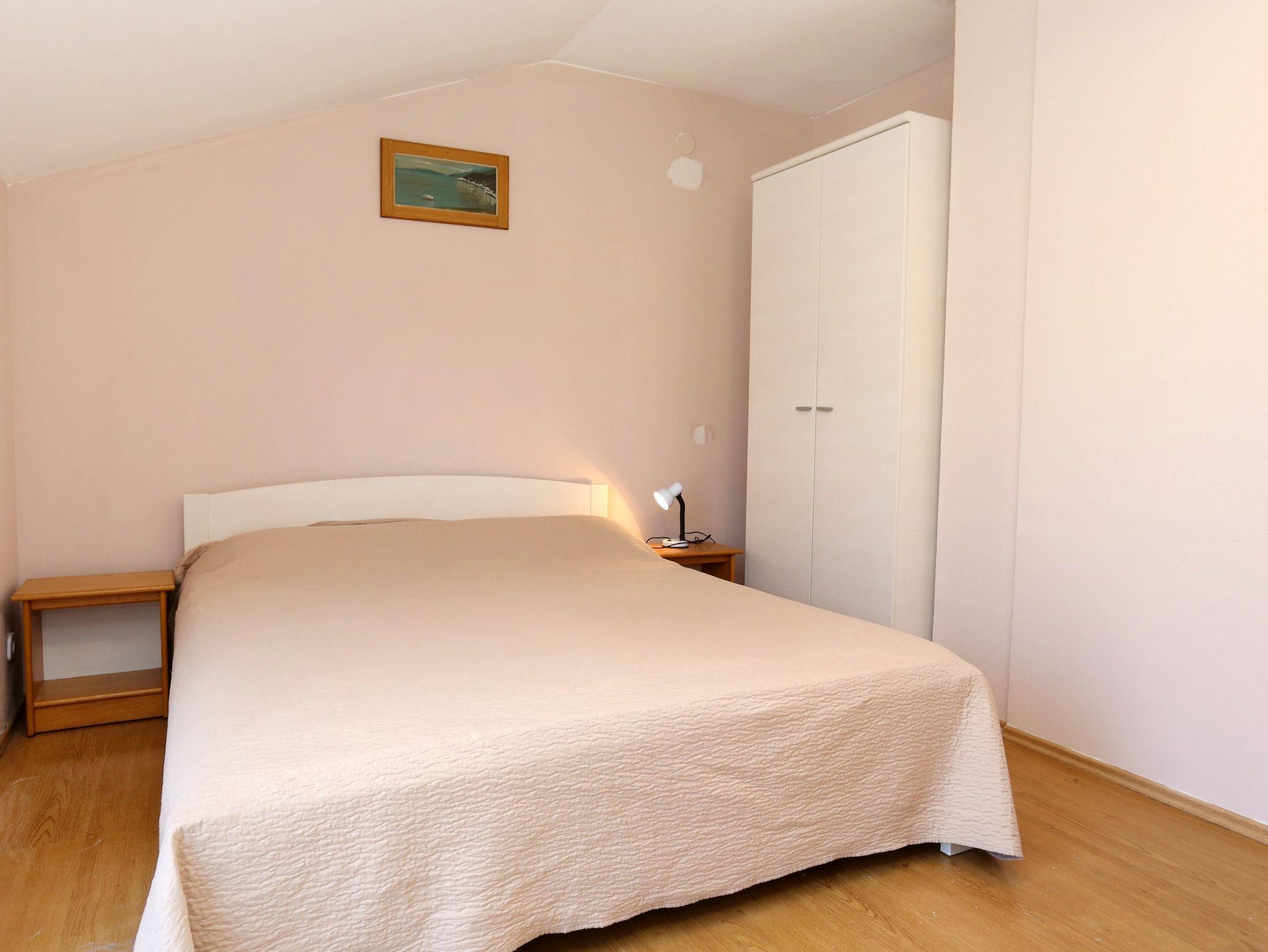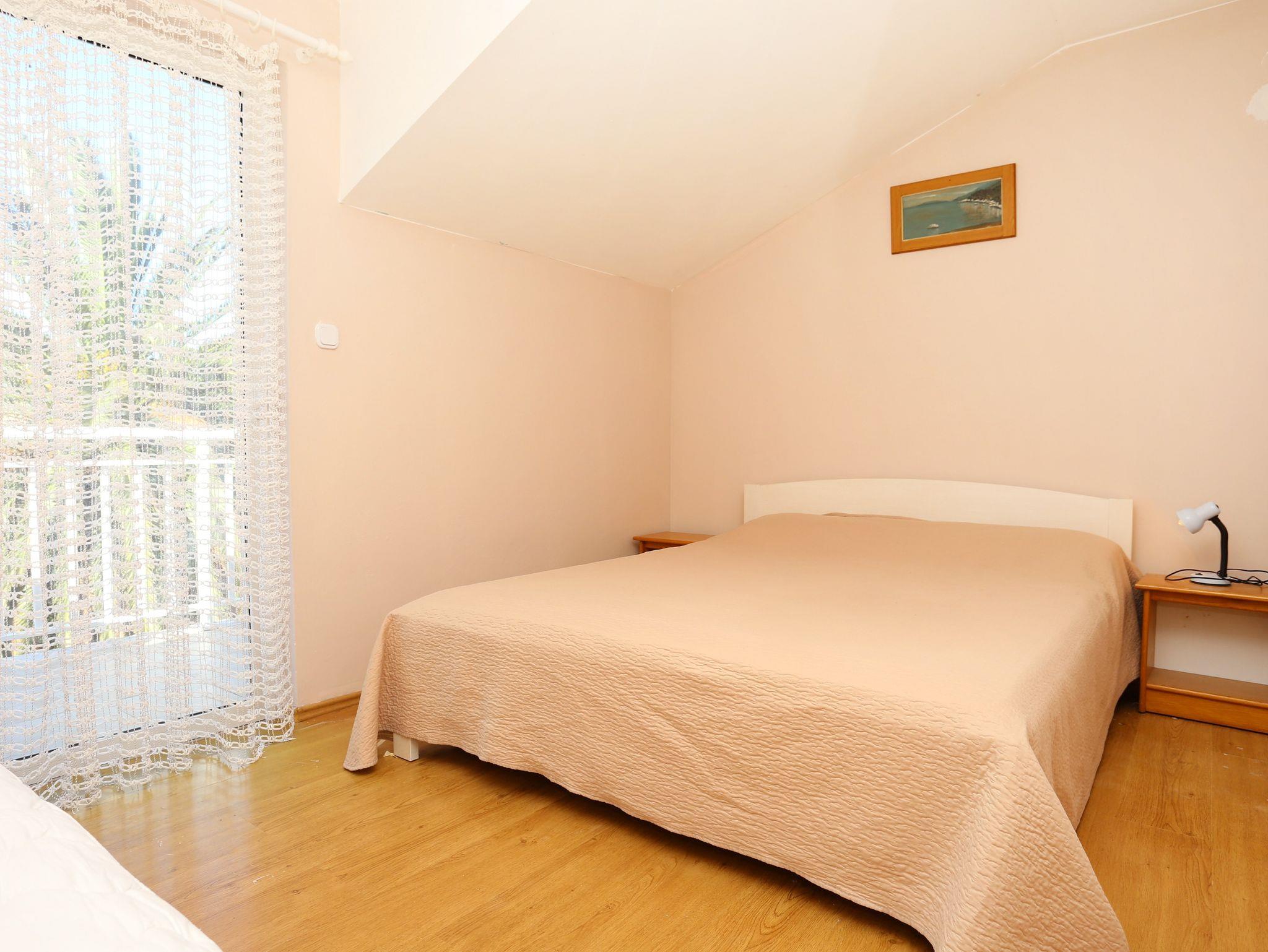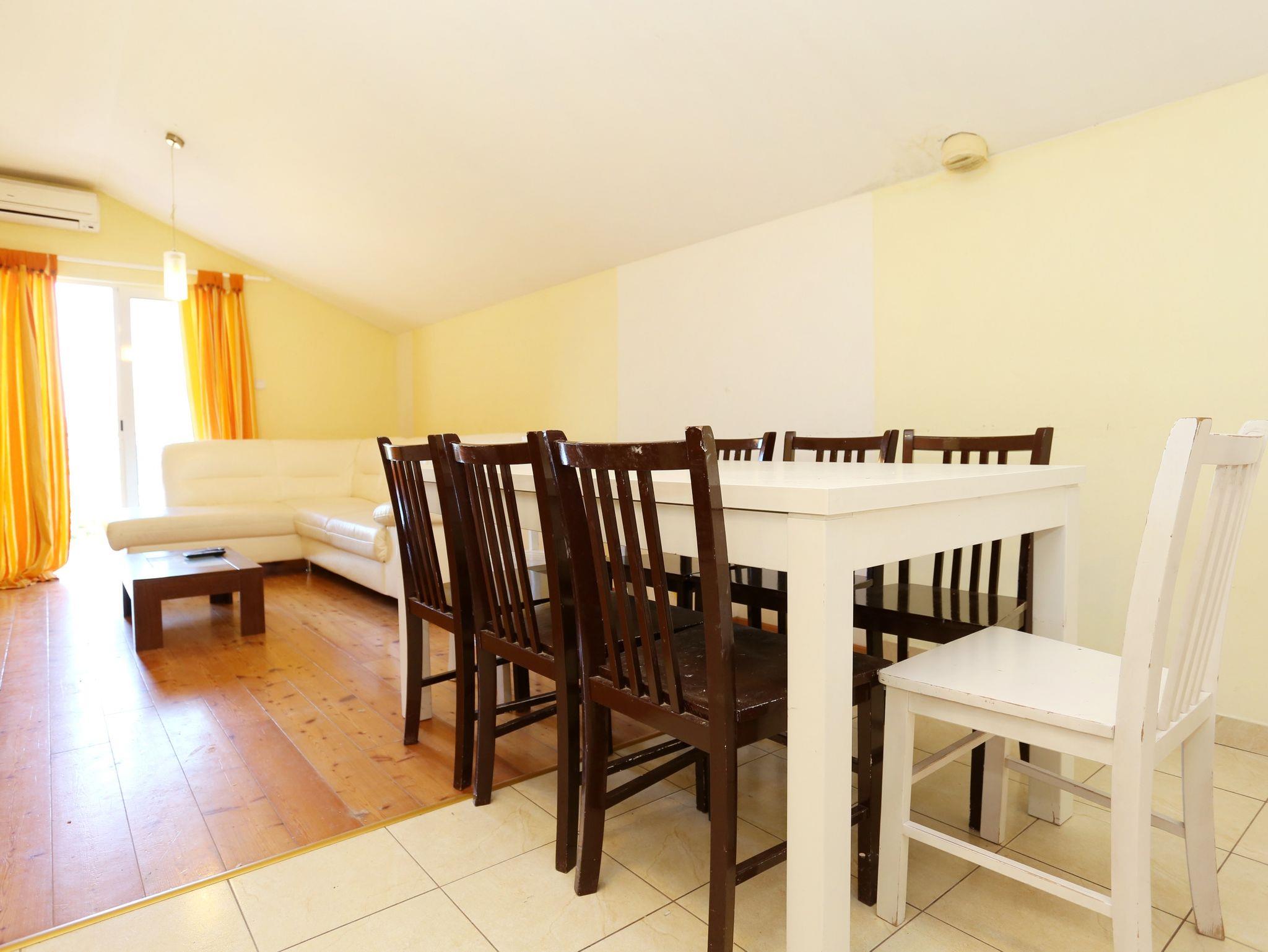 Ferienwohnung bietet Platz für 4 Gäste. Die Betten sind in Schlafzimmern, die es 1 gibt, und in Wohnzimmer, innerhalb einer Gesamtfläche von 45m2, angeordnet. Die Gäste haben eine eigene Terrasse zur Verfügung, auf der sie in warmen Sommernächten genießen können. Das Apartment bietet Meerblick. Es ist erlaubt, Speisen auf dem Gemeinschafts-Grill vorzubereiten. In der Unterkunftseinheit besteht die Möglichkeit des Mitbringens von Haustieren gegen Aufpreis. IM PREIS INBEGRIFFEN: Kurtaxe, Endreinigung, Klimatisierung, Parkplatz, Internet, Kinderbett, Bügeleisen, Bügelbrett, Föhn, tragbarer Grill. VERBINDLICHE ZUSÄTZLICHE KOSTEN: Aufzahlung für Kurzaufenthalte (prozentualer Zuschlag pro Nächtigungsanzahl: 30% - 1, 20% - 2, 10% - 3). UNVERBINDLICHE ZUSÄTZLICHE KOSTEN: Wäschewaschen (5,00 € Waschen), Bootsanlegeplatz (3,00 € pro Nacht), Haustiere (10,00 € pro Nacht). Die Verfügbarkeit zusätzlicher Dienstleistungen in Ihrem reservierten Termin und die Preise derselben (falls nicht aufgeführt) müssen im Voraus überprüft werden. Zusätzliche Dienstleistungen die in der Zahlungsaufforderung nicht aufgeführt sind werden direkt beim Vermieter bezahlt, angenommen der Gast nutzt auch diese.