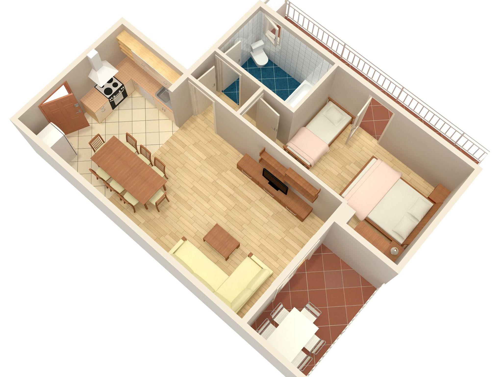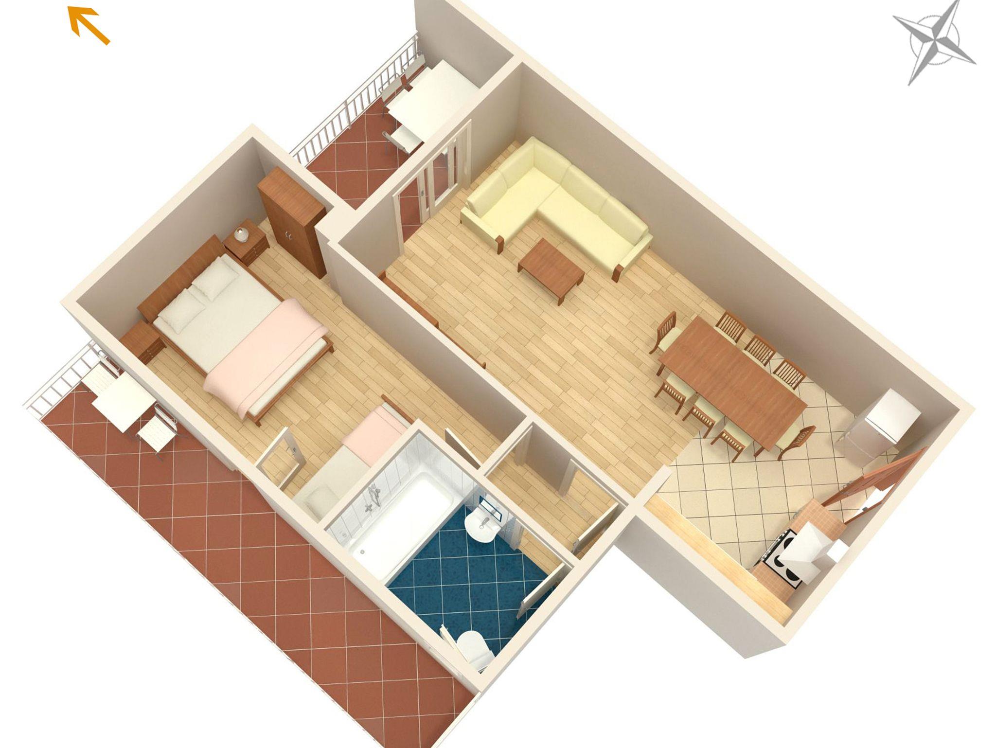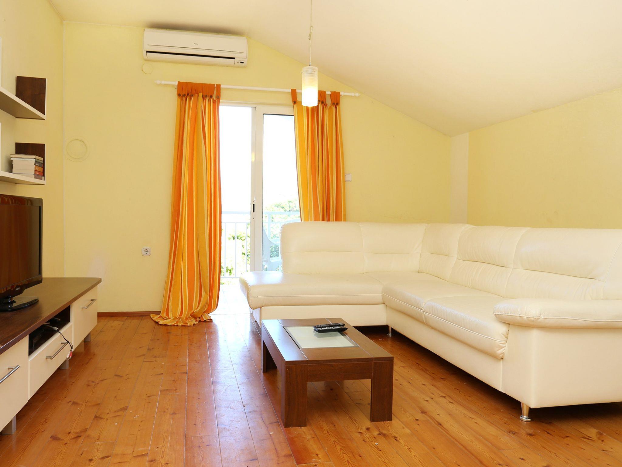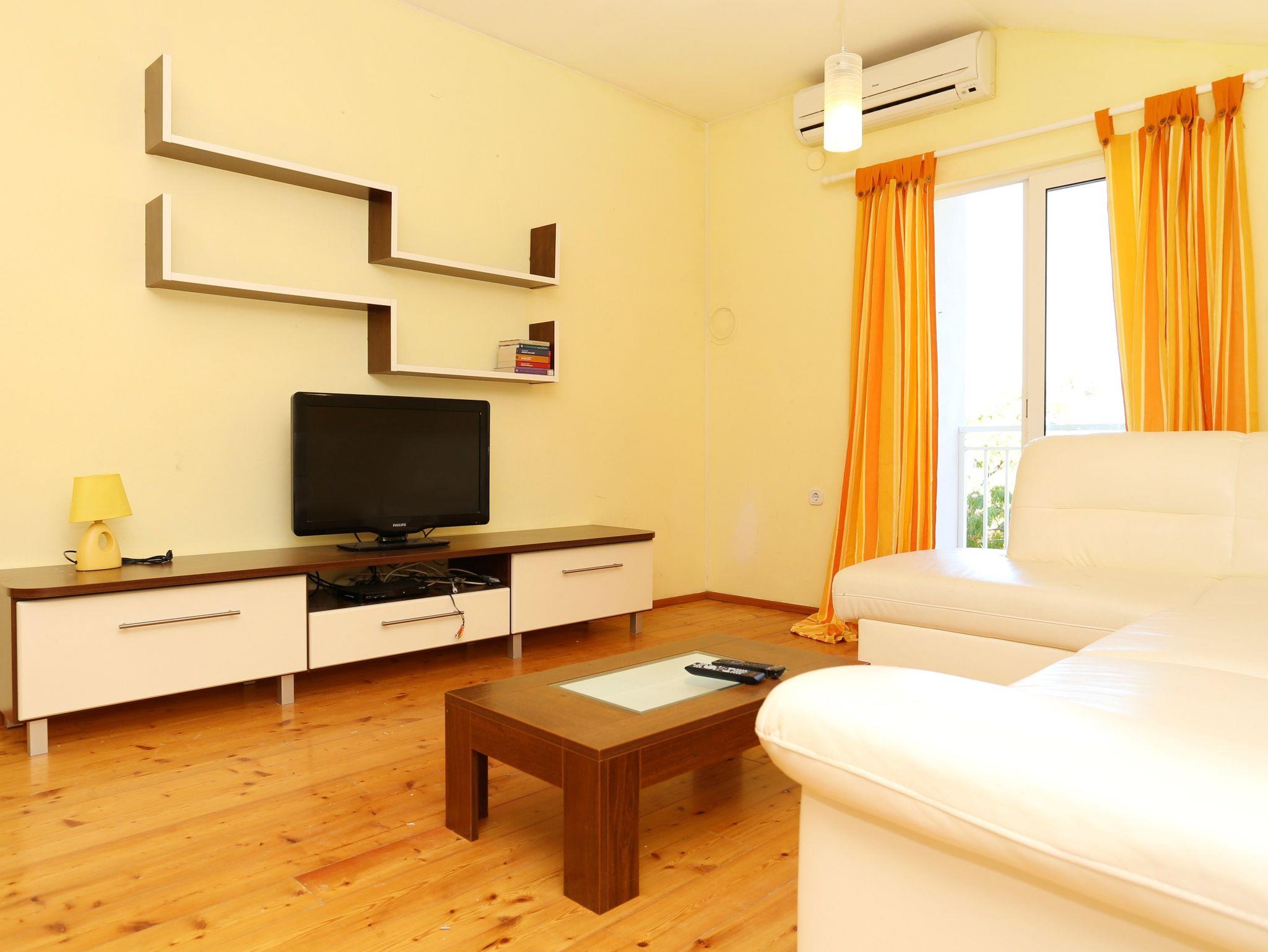Ferienwohnung bietet Platz für 4 Gäste. Die Betten sind in Schlafzimmern, die es 1 gibt, und in Wohnzimmer, innerhalb einer Gesamtfläche von 45m2, angeordnet. Die Gäste haben eine eigene Terrasse zur Verfügung, auf der sie in warmen Sommernächten genießen können. Das Apartment bietet Meerblick. Es ist erlaubt, Speisen auf dem Gemeinschafts-Grill vorzubereiten. In der Unterkunftseinheit besteht die Möglichkeit des Mitbringens von Haustieren gegen Aufpreis. IM PREIS INBEGRIFFEN: Kurtaxe, Endreinigung, Klimatisierung, Parkplatz, Internet, Kinderbett, Bügeleisen, Bügelbrett, Föhn, tragbarer Grill. VERBINDLICHE ZUSÄTZLICHE KOSTEN: Aufzahlung für Kurzaufenthalte (prozentualer Zuschlag pro Nächtigungsanzahl: 30% - 1, 20% - 2, 10% - 3). UNVERBINDLICHE ZUSÄTZLICHE KOSTEN: Wäschewaschen (5,00 € Waschen), Bootsanlegeplatz (3,00 € pro Nacht), Haustiere (10,00 € pro Nacht). Die Verfügbarkeit zusätzlicher Dienstleistungen in Ihrem reservierten Termin und die Preise derselben (falls nicht aufgeführt) müssen im Voraus überprüft werden. Zusätzliche Dienstleistungen die in der Zahlungsaufforderung nicht aufgeführt sind werden direkt beim Vermieter bezahlt, angenommen der Gast nutzt auch diese.