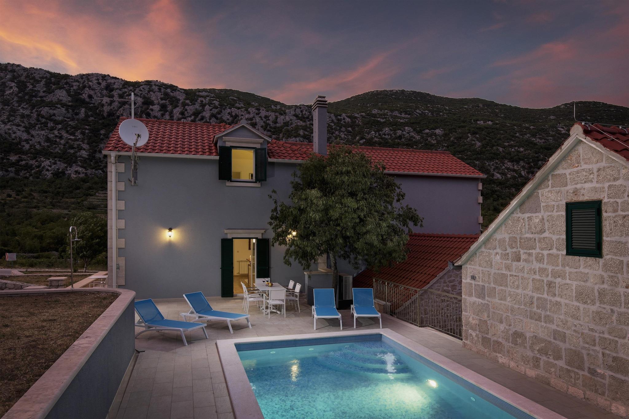 Dette feriehus ligger ugeneret omgivet af bjerge og grønne områder. Det er bare med vejen, dog uden generende støj på grund af lav trafik. På dette område er vi sikre på, at du vil have din egen fred. Indkvarteringen har en privat udendørs swimmingpool, orienteret mod syd med masser af sollys i løbet af dagen. På den anden side kan du slappe af på terrassen omkring poolen liggestole i skyggen af parasoller.