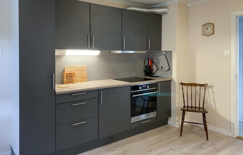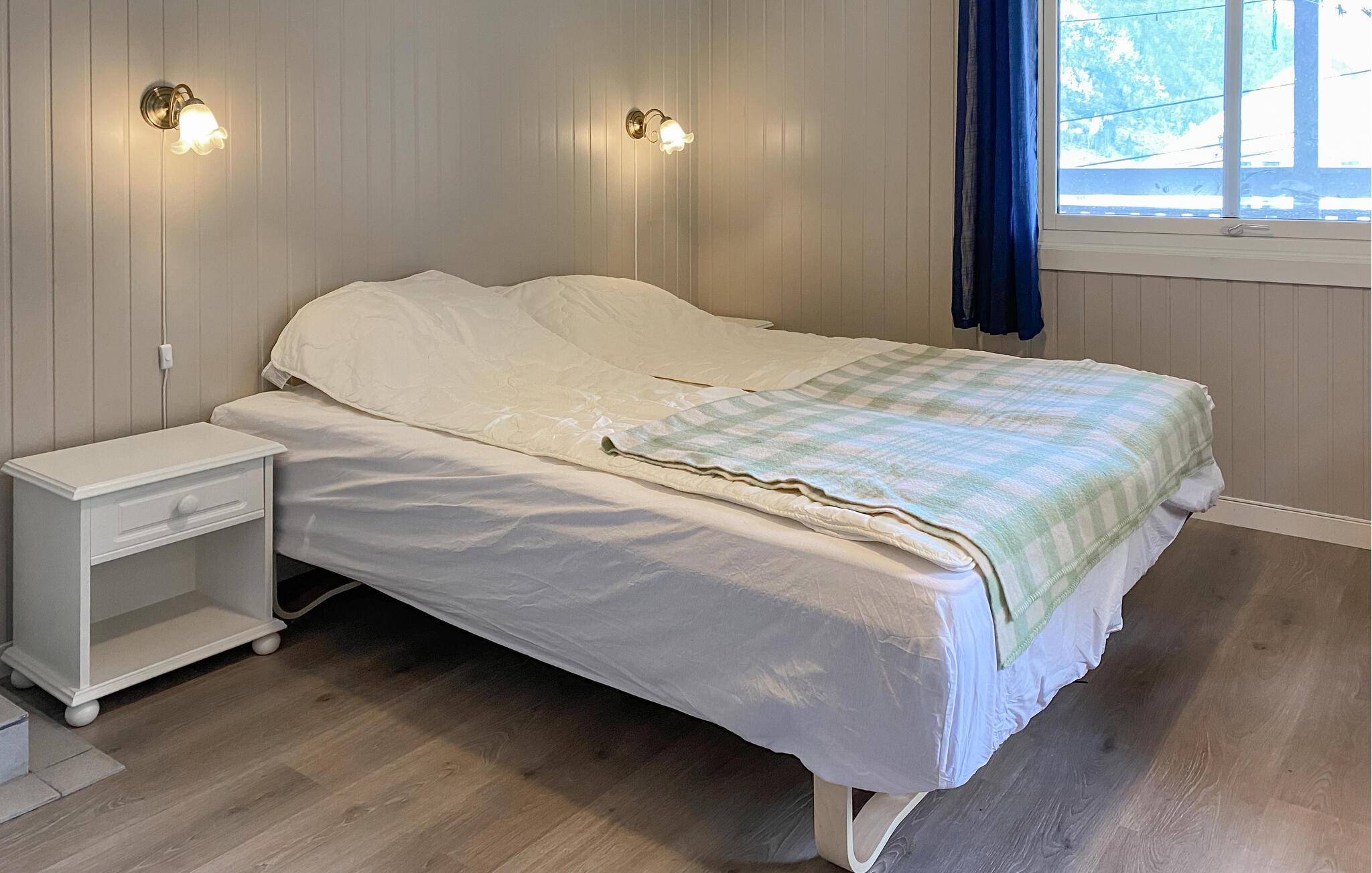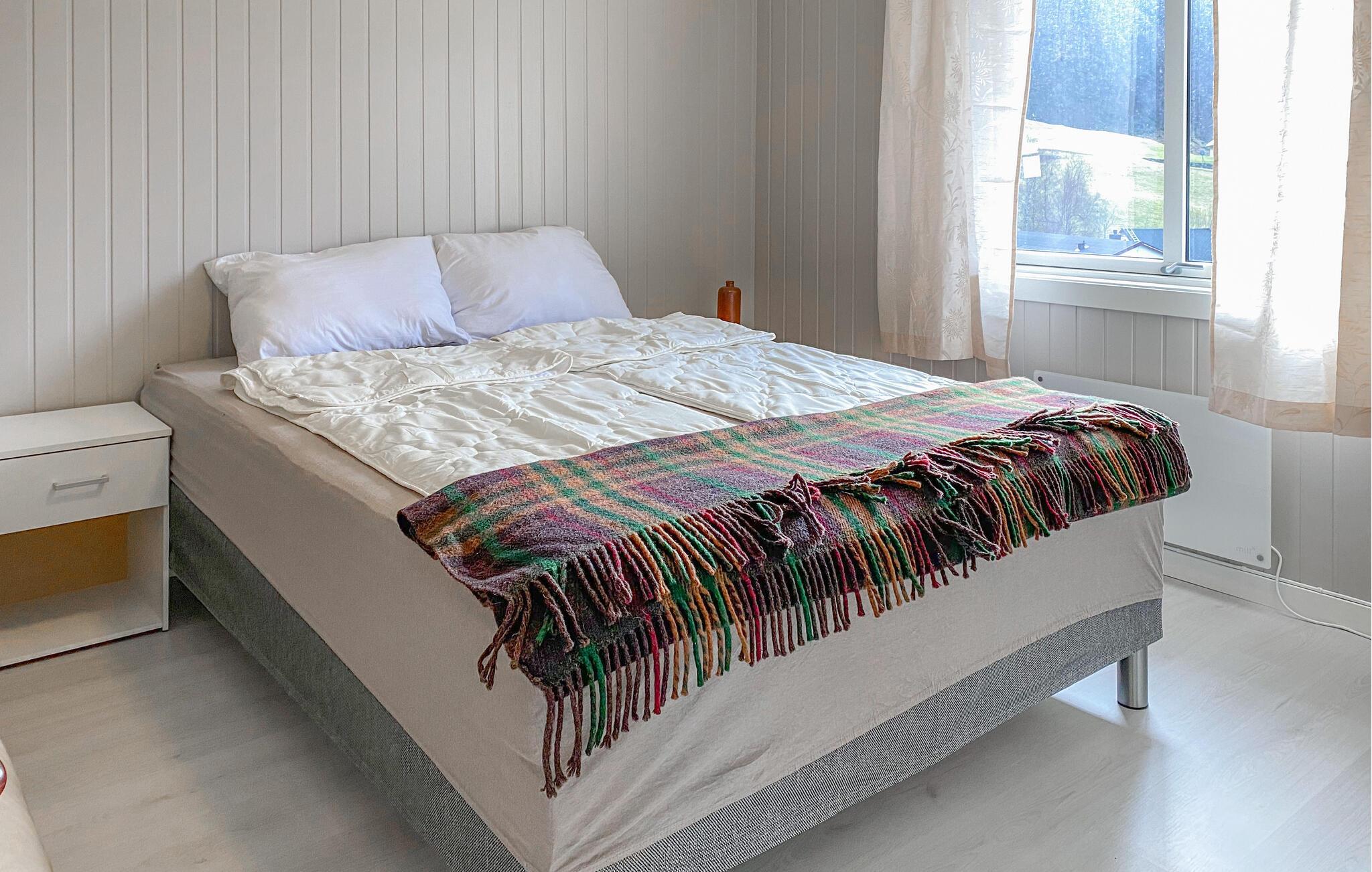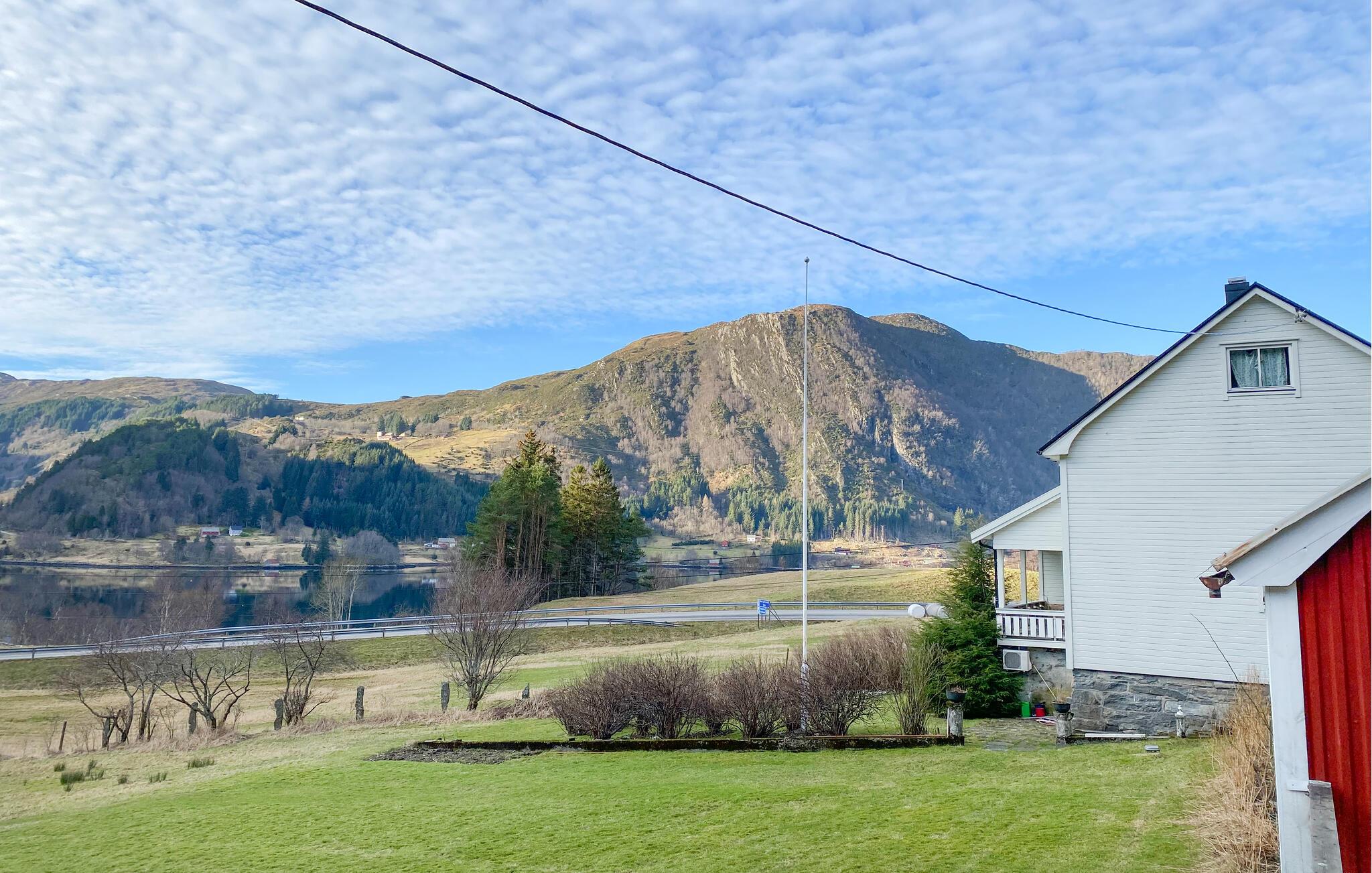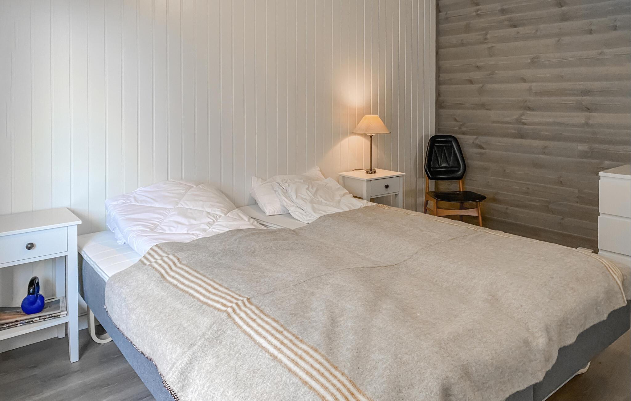 Dette hyggelige feriehus har udsigt over den maleriske fjord og byder velkommen midt i et imponerende landskab. Tilbered jeres yndlingsretter sammen med familien i det moderne køkken og nyd dem ved det indbydende spisebord. Slap af i den hyggelige stue med et brætspil eller læn jer tilbage med en bog i en af ??de komfortable lænestole.
