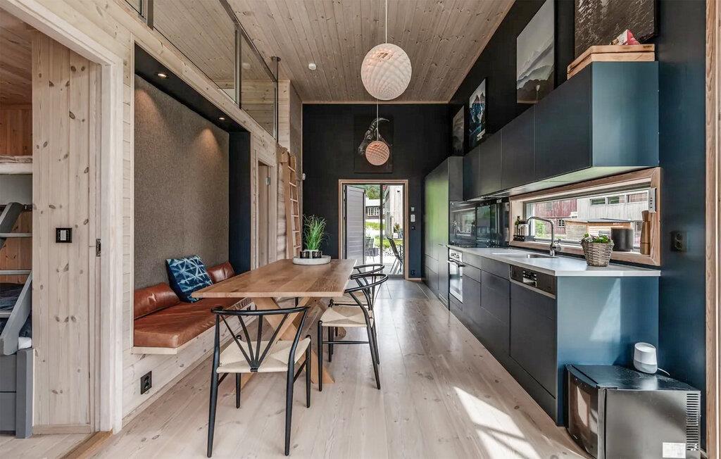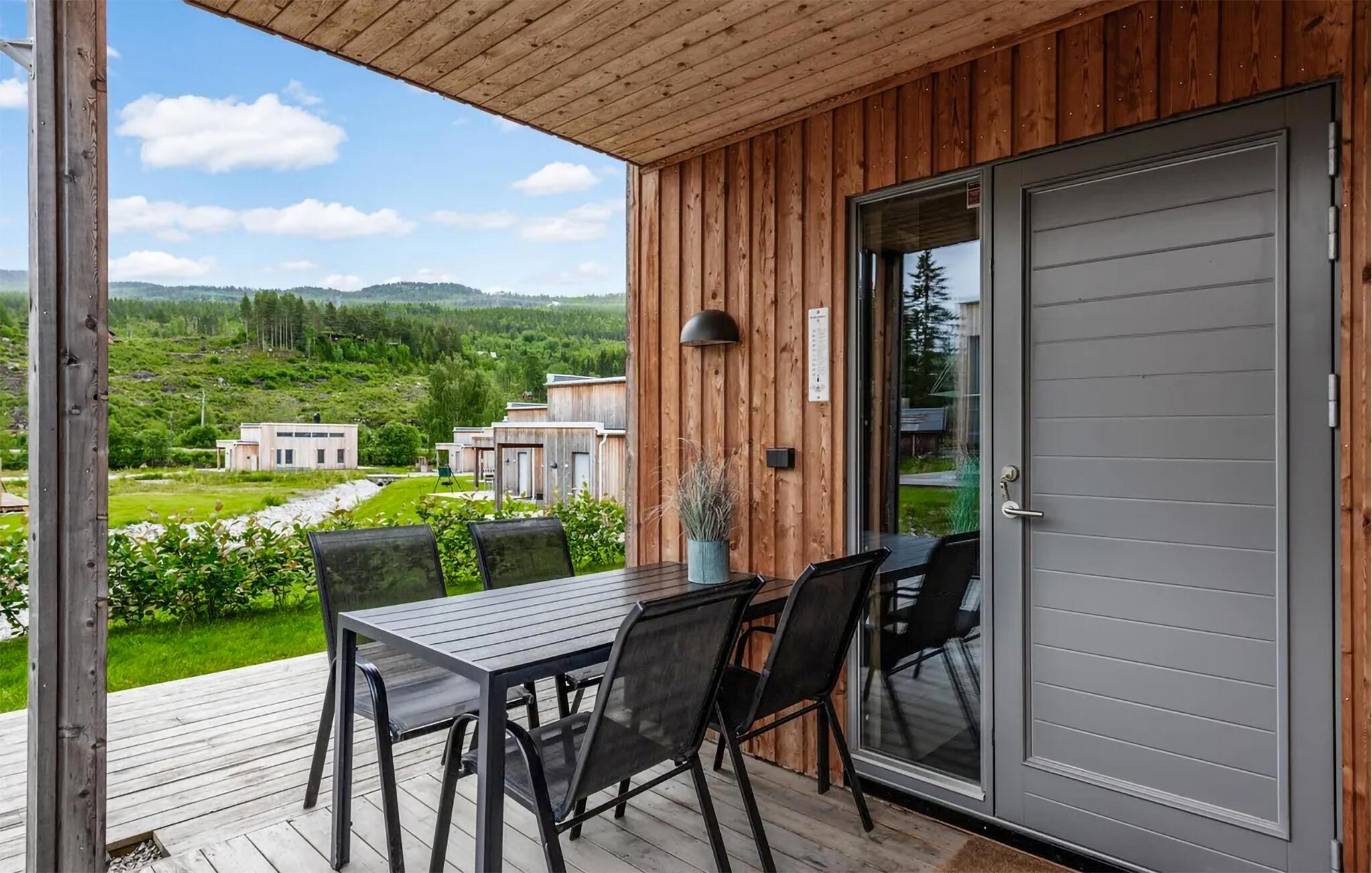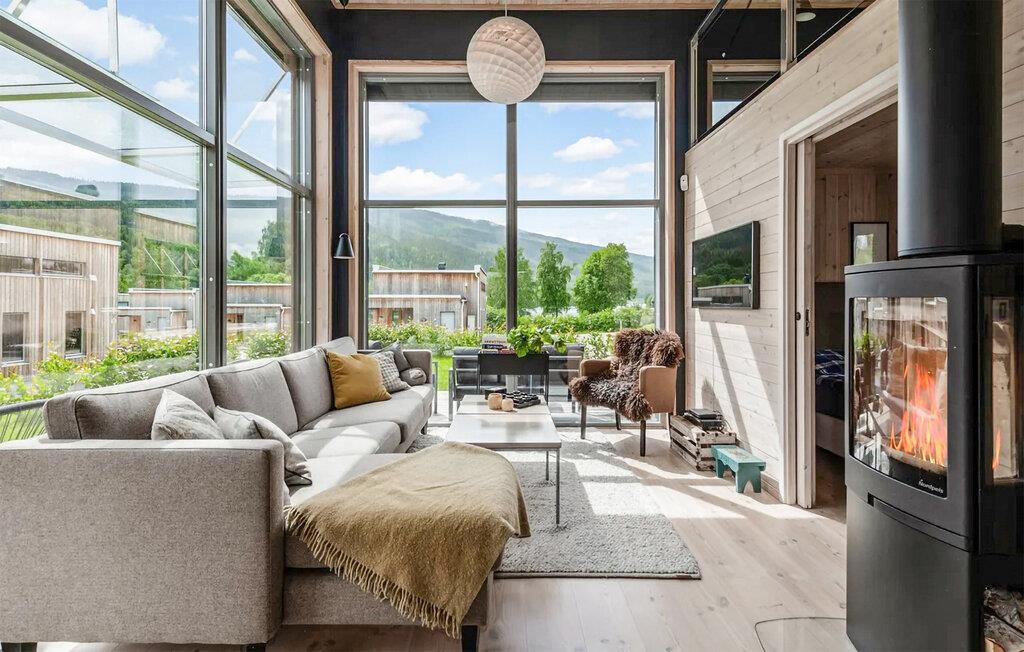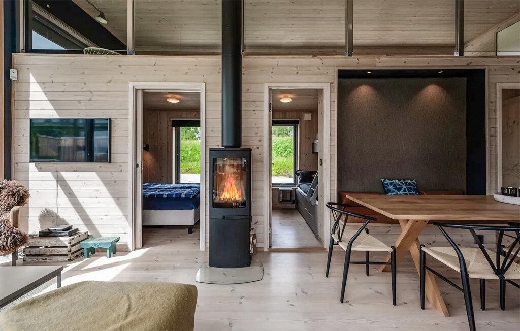 Dette hus med sine store glasfacader lægger op til en afslappende pause fra hverdagen. Genoplad batterierne, mens I nyder panoramaudsigten over landskabet, og fordyb jer fuldt ud i feriestemningen. Læn jer tilbage og slap af, lyt til en interessant podcast eller de seneste hits. På kølige dage kan I tænde pejsen for endnu mere hyggelig varme. Det moderne køkken lægger op til at tilberede lækre måltider sammen.