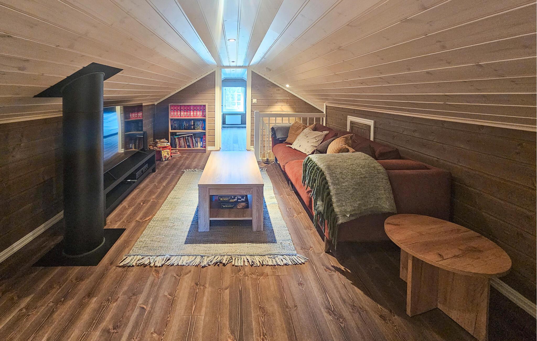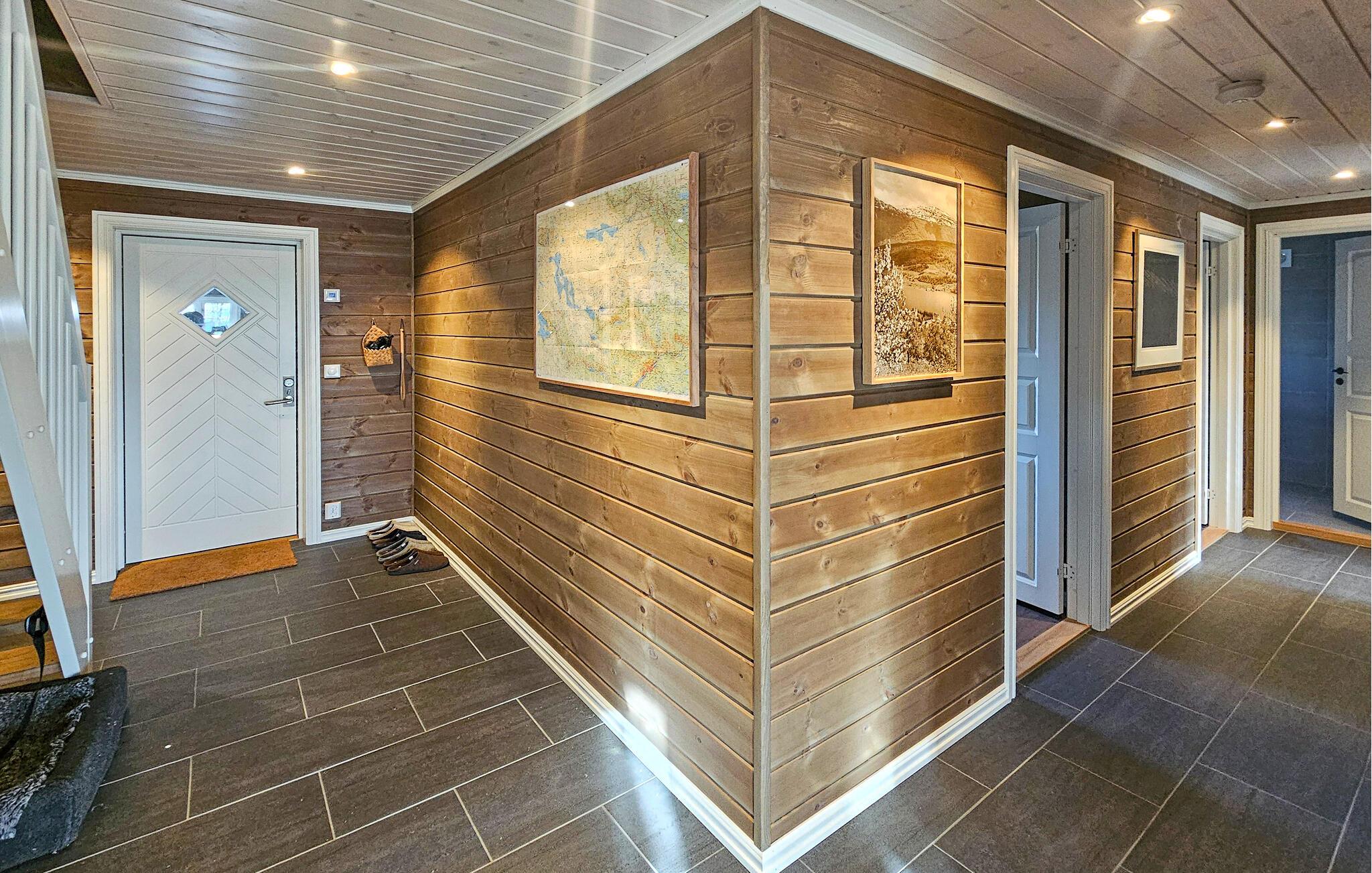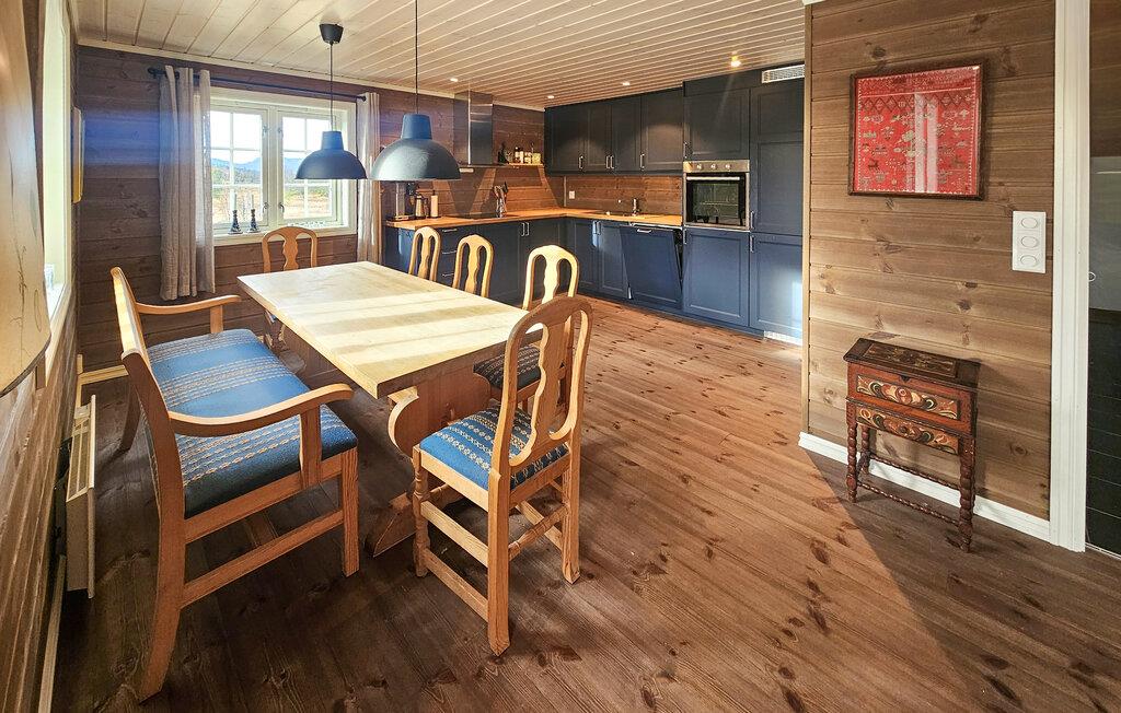 Oplev hyggelige dage i dette hyggelige feriehus i en idyllisk beliggenhed. Det hyggelige interiør i dette smukke feriehus, der kombinerer moderne komfort med rustik charme, byder på masser af plads til venner eller en stor familie. Glæd jer til hyggelige madlavningsaftener og lange måltider ved det indbydende spisebord, afhold harmoniske spilleaftener, stream en film, som alle nyder, eller lyt til den bløde knitren fra pejsen i rolige læsetimer. På jeres åbne terrasse kan I nyde den maleriske udsigt med en krydret te efter en forfriskende dukkert i den klare sø. Regionen byder på fantastiske vandremuligheder for unge og gamle hele året rundt. Besøg Ål Bygdamuseum og forkæl jer selv med regionale specialiteter på en af de charmerende caféer eller restauranter. Geilo lokker med spændende raftingoplevelser om sommeren og adskillige skisportssteder om vinteren. Kun få skridt fra huset kan I tage på en tur gennem den rolige natur på de præparerede langrendsløjper.