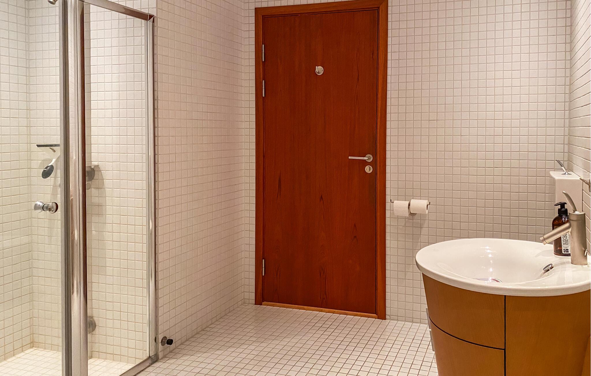 Badeværelse (nr. 1) - WC. Varmt og koldt vand. Bruser og badekar