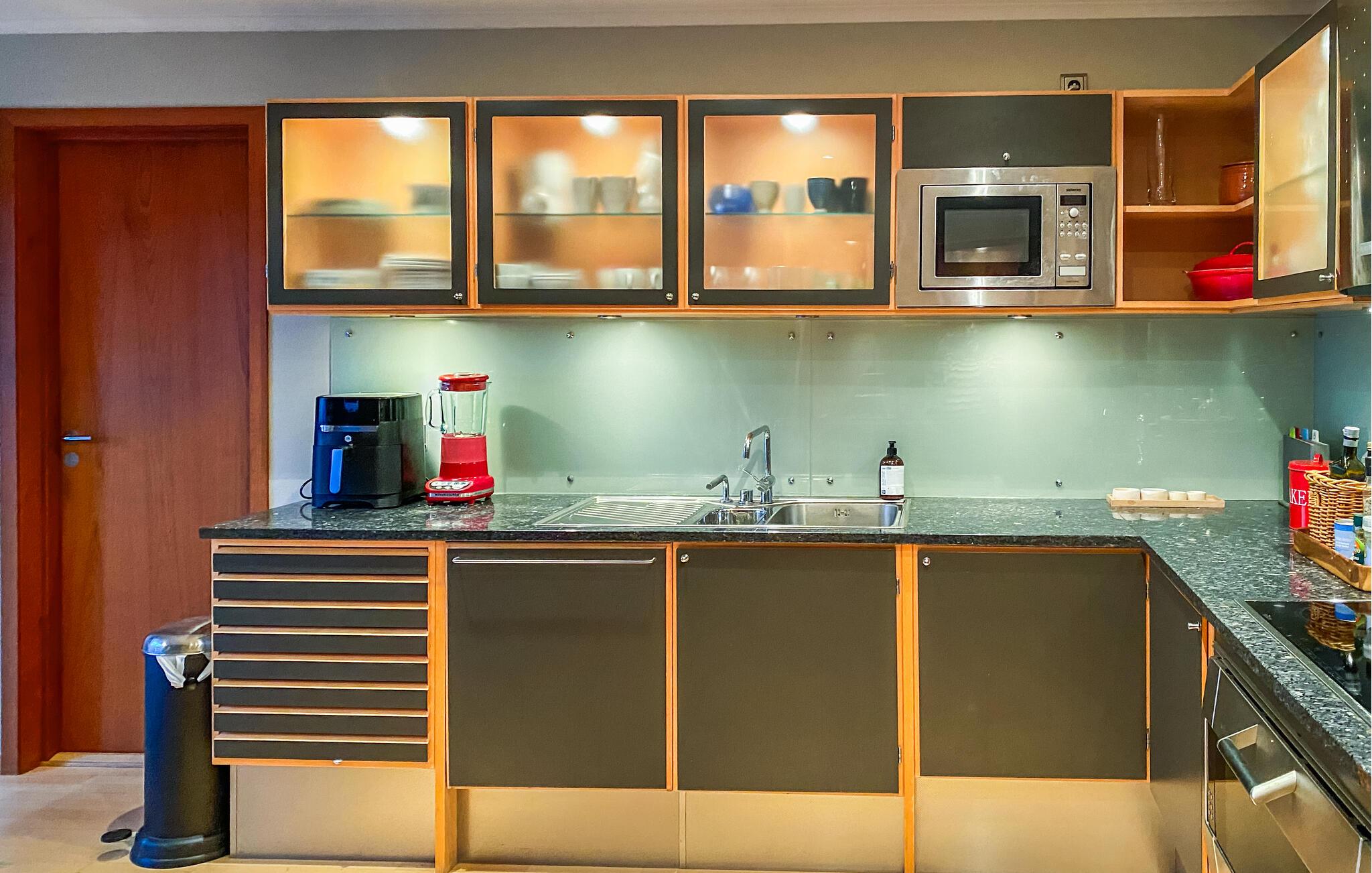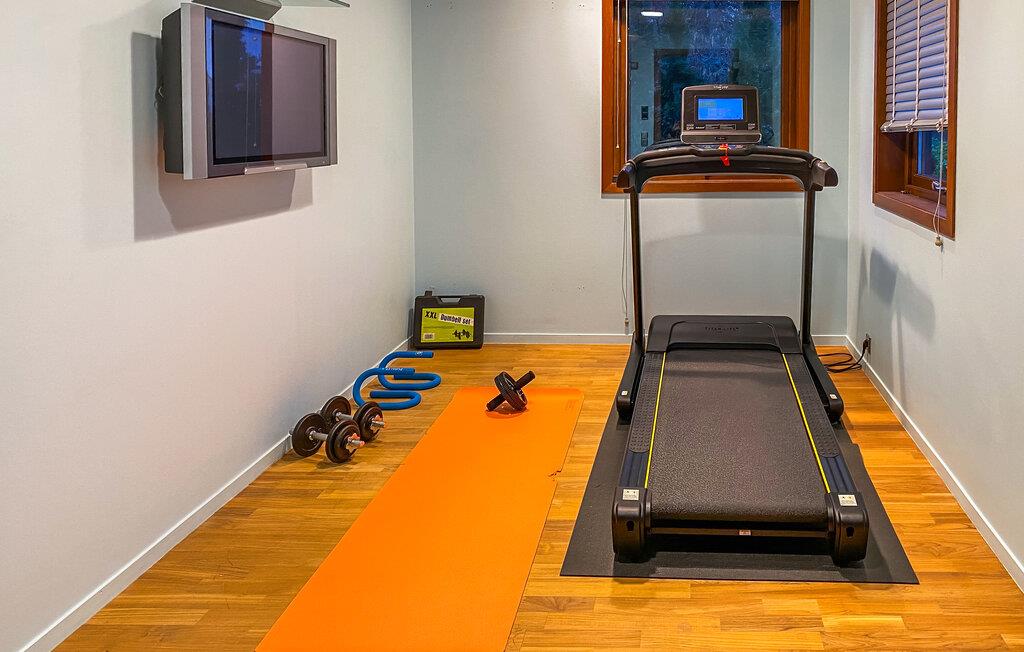 Hvis formen skal holdes ved lige, er der et løbebånd til rådighed til netop det formål, og på de smukke sommerdage kan I tage maden med ud på terrassen, hvor I kan nyde solen og de spektakulære omgivelser.