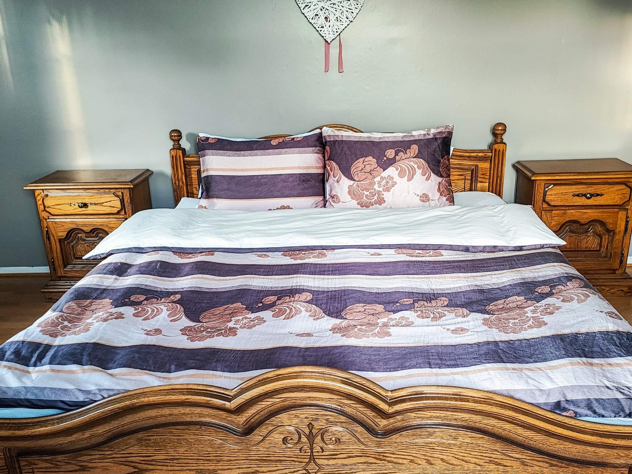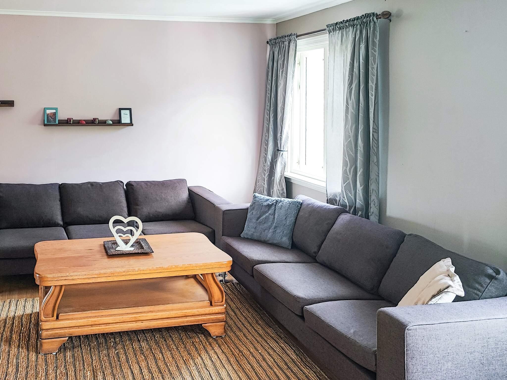 Leiligheten har store soverom, rikelig med skapplass og en solrik uteplass på baksiden – perfekt for familier og fiskeentusiaster som ønsker et komfortabelt opphold i naturskjønne omgivelser.