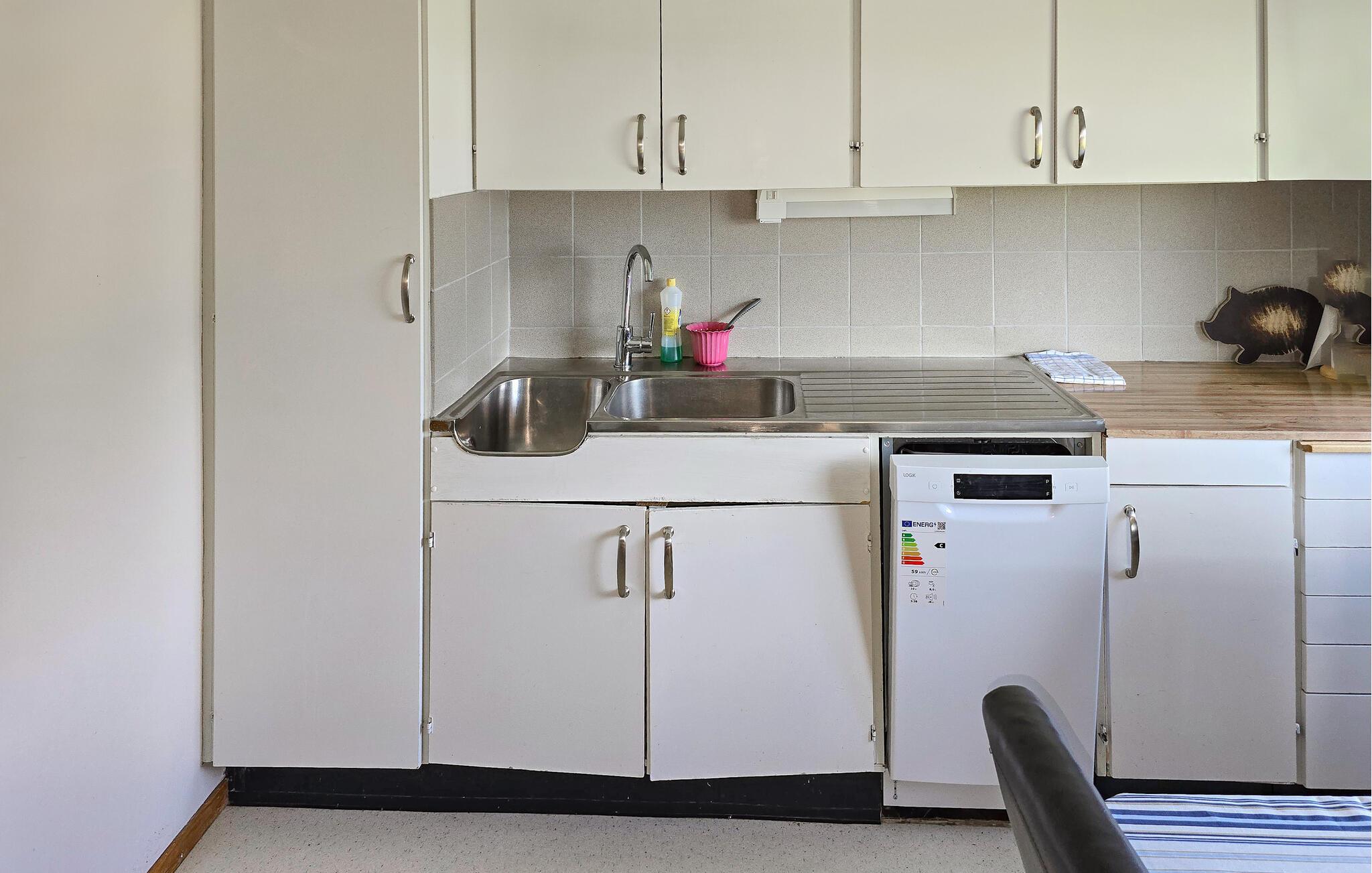 Huset, der ligger på en ø, byder jer velkommen med en varm og indbydende atmosfære, hvor kombinationen af masser af brænde, komfortable sofaer og en pejs skaber en hyggelig atmosfære. Her kan I slappe af og lægge hverdagen bag jer – hvad enten det er med en kop te, at lytte til jeres yndlingspodcast eller at lave friske måltider sammen.