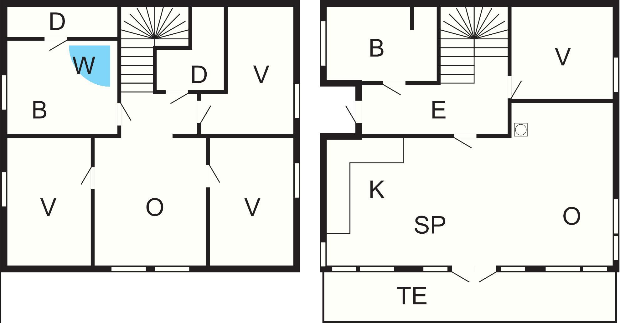 4 Soveværelser: (1DS)+(1DS)+(1S+1DO)+(1S+2K), barneseng