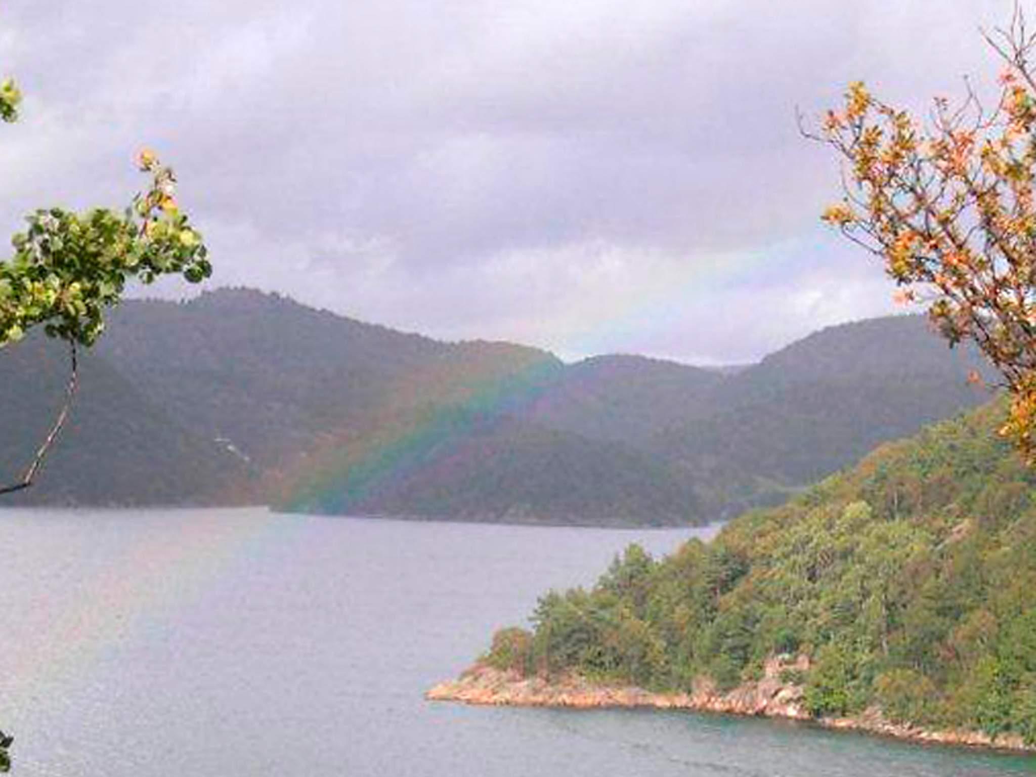 Hytten ligger i åsen temmelig usjenert med flott tsikt fra stuen og hele verandaen. Hytten var ferdigstillet i 2009 og har meget bra kvalitet. Båter og motorer kan leies dersom de er ledig. Førstemann som bestiller, får dem. Det er også en liten strand nede ved vannet til fri benyttelse.