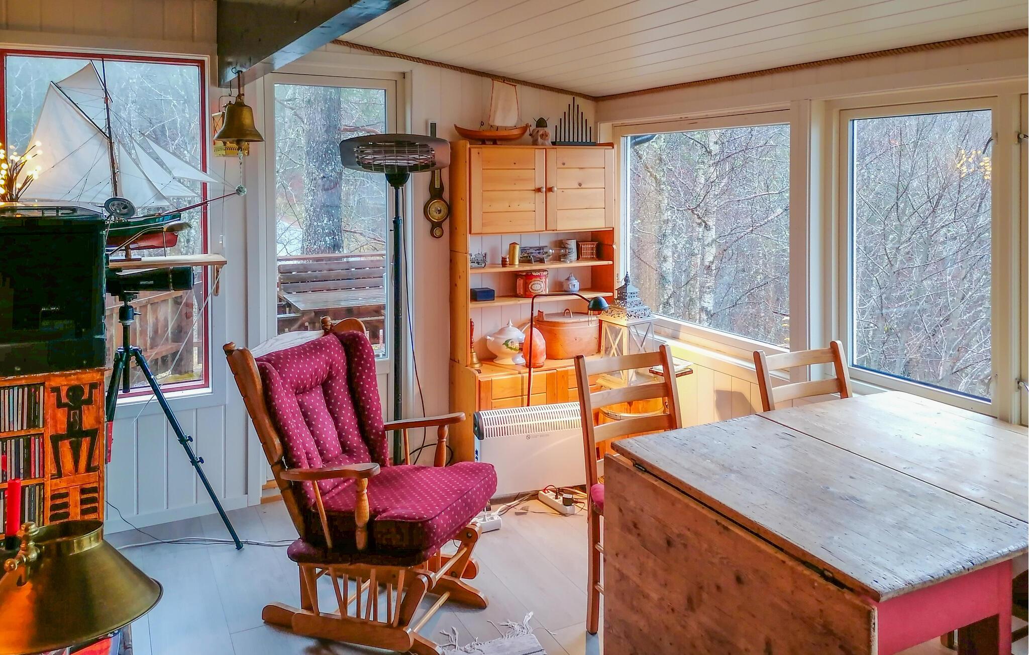 Nyd en afslappende ferie i dette hyggelige feriehus med en fantastisk beliggenhed. Denne komfortable hytte tilbyder en betagende udsigt over fjorden og inviterer jer til en naturfyldt ferie i rolige og idylliske omgivelser. Glæd jer til harmoniske måltider, sjove spilleaftener og gode samtaler i en varm og indbydende atmosfære. Lyt til knitren fra den norske brændeovn, mens I hygger jer sammen med en god bog eller streamer en spændende film efter en lang dag i den friske luft. Hils dagen med en duftende kaffe udenfor og lad den fredelige atmosfære skylle over jer. Prøv lykken med fiskeri, genopliv jeres sanser med en svømmetur i fjorden, og oplev romantiske solnedgange. Oplev det rige dyreliv, herunder elge, hjorte og rådyr, mens I nyder en picnic. Lej en båd, slap af på molen, eller udforsk de mange vidunderlige vandrestier. Besøg Klippfisch Museum i den smukke kystby Kristiansund og prøv regionale specialiteter i hyggelige restauranter.