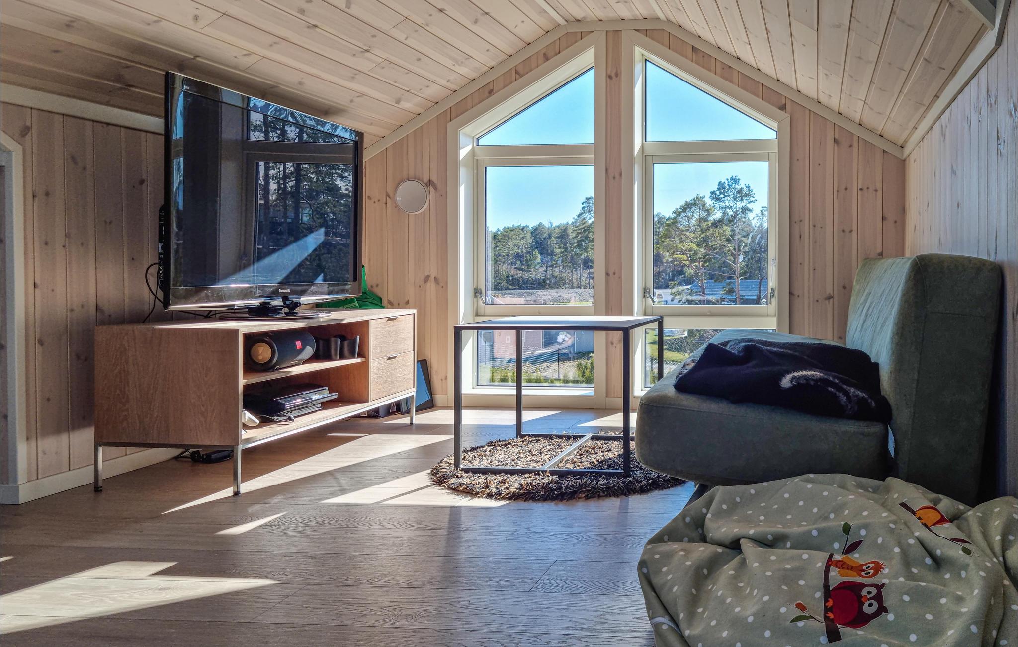 Tag familien med til denne dejlige nye bolig i et feriehusområde på stor solrig grund. I vil straks føle jer hjemme i de smagfulde og komfortable værelser. Glæd jer til pejsen, som udstråler behagelig varme på kølige aftener. Sid sammen i godt selskab og hold en filmaften, mens I lytter til flammernes knitren.