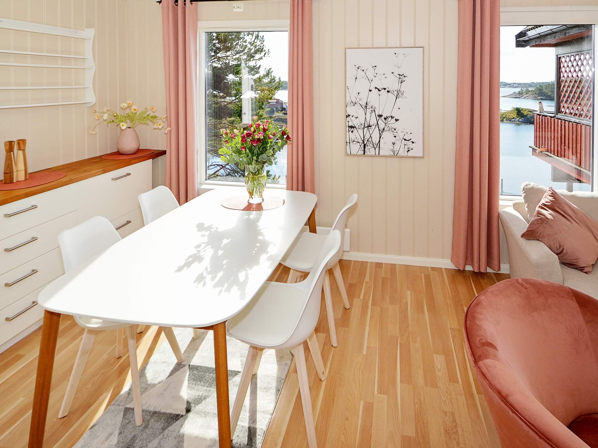 Ferieleiligheten er smakfullt innredet i lyse trivelige farger og har alt som trengs for en flott ferie på Sørlandet. Huset er todelt, og eier bor i den andre delen av huset. Når du kommer inn, møtes du av utsikten til havet ut fra stuevinduet. Det er kjøkken og stue i et, soverom i andre etasje. Kort vei til badeplasser i ferskvann og saltvann. Den flotte ferieleiligheten har sol fra morgen til kveld. Her har dere god plass og nærhet til skog og sjø.
